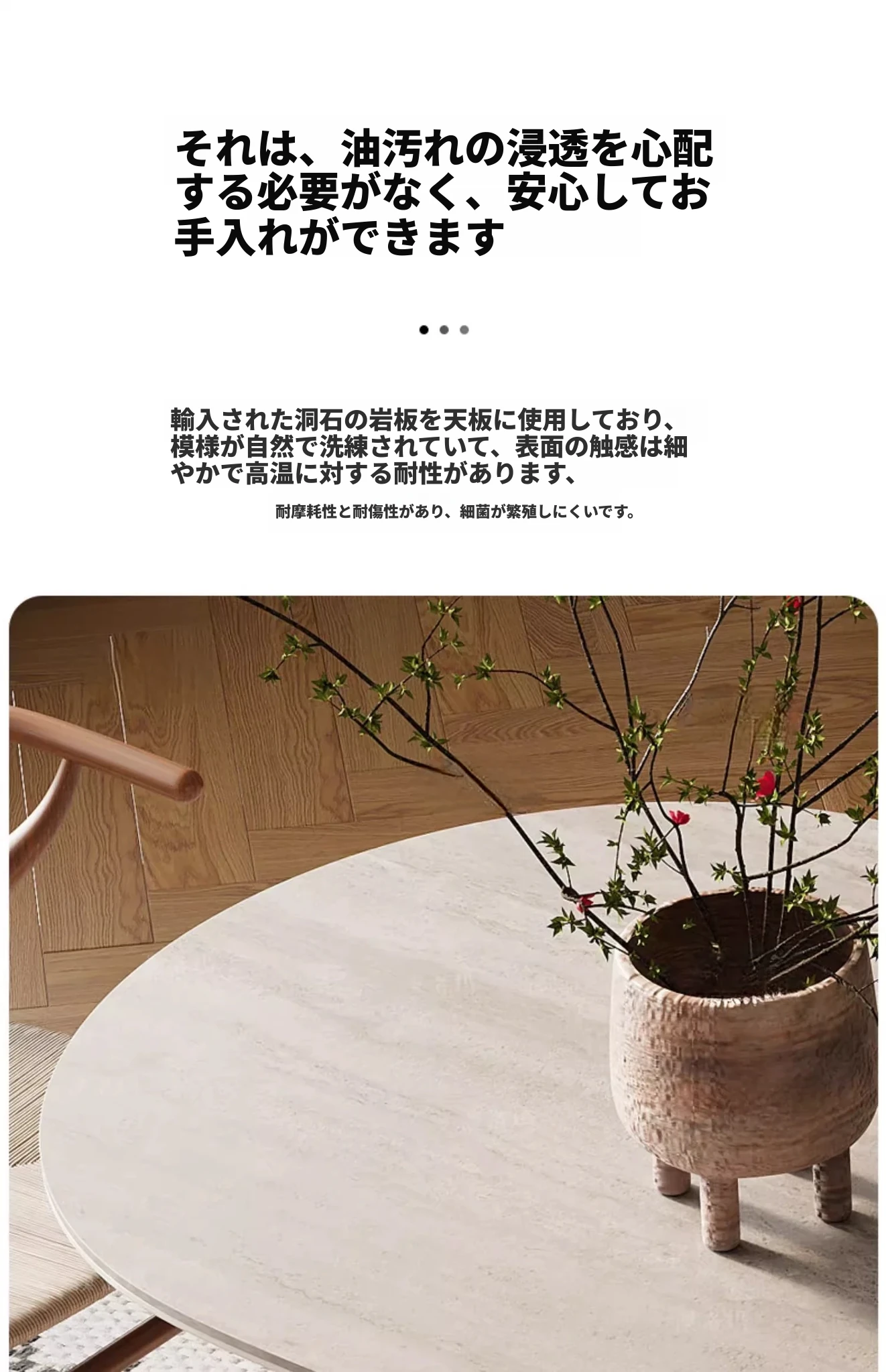 洞石岩板ダイニングテーブル【1.8x0.9メートル】
