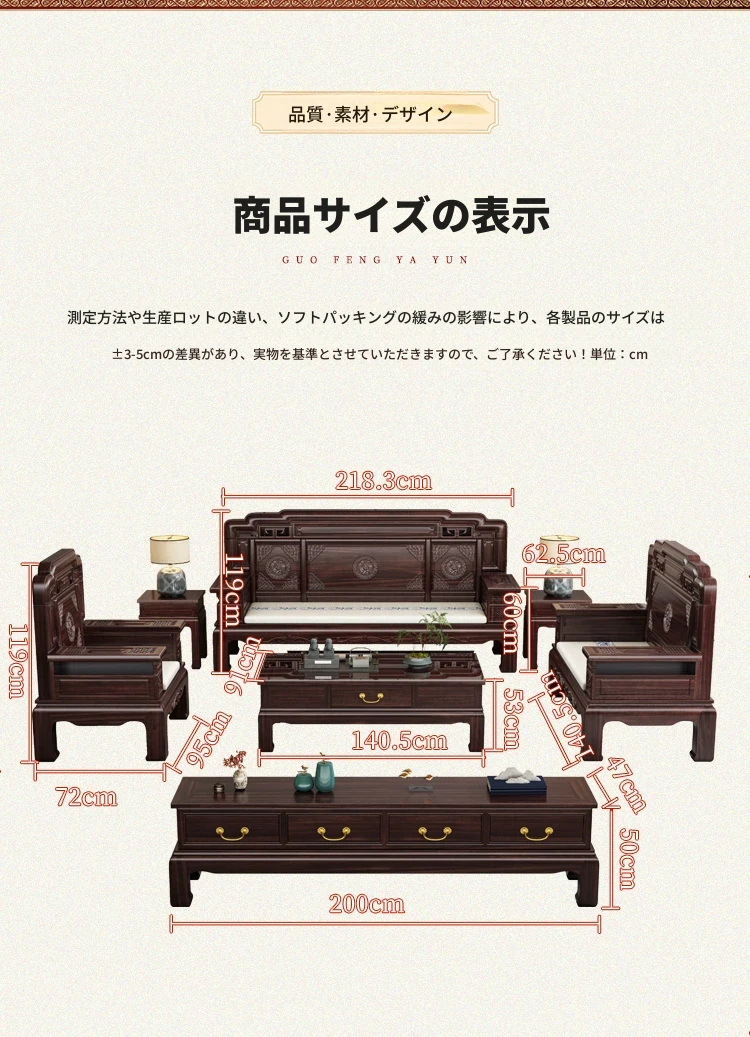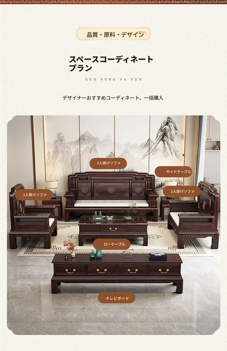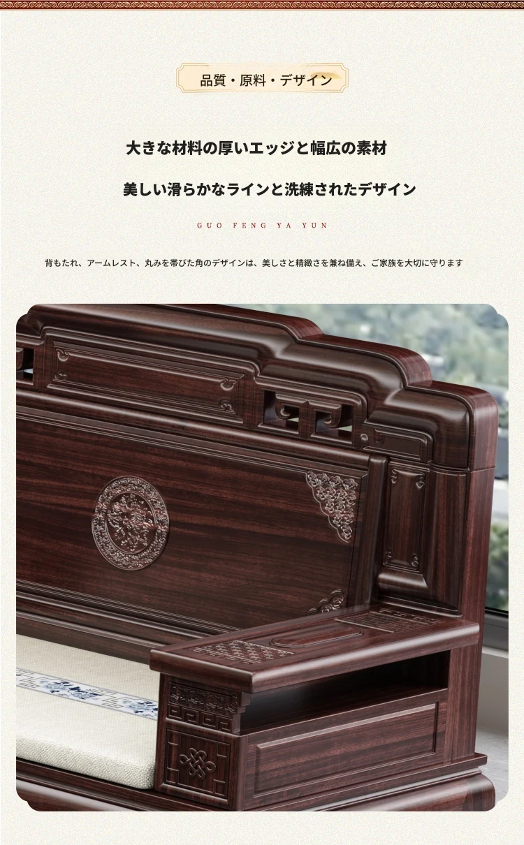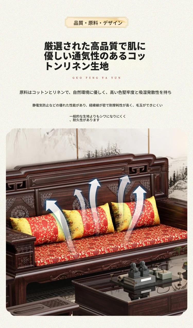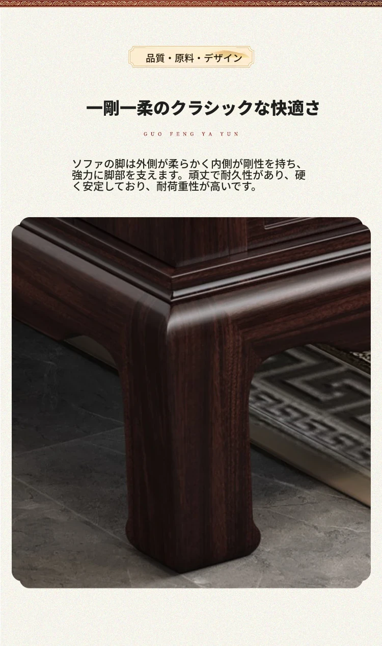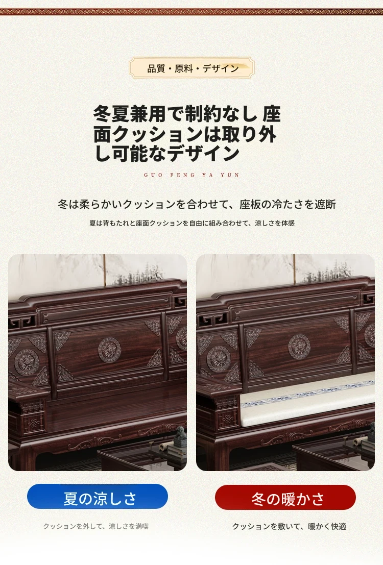 新中式スタイルの酸枝木無垢材ソファセット - 古典的な彫刻が施されたシンプルで洗練されたデザイン!冬と夏の両方で快適に使える赤木製リビング家具。高級感あふれる空間を演出し、心地よいひとときを提供します。
