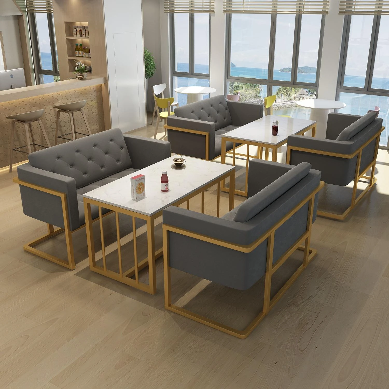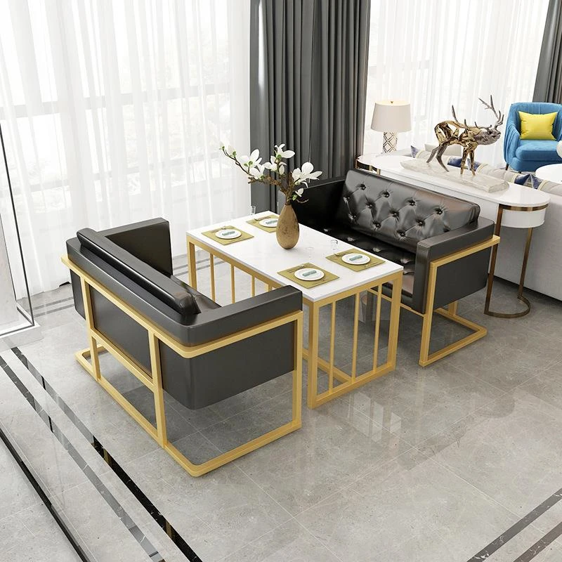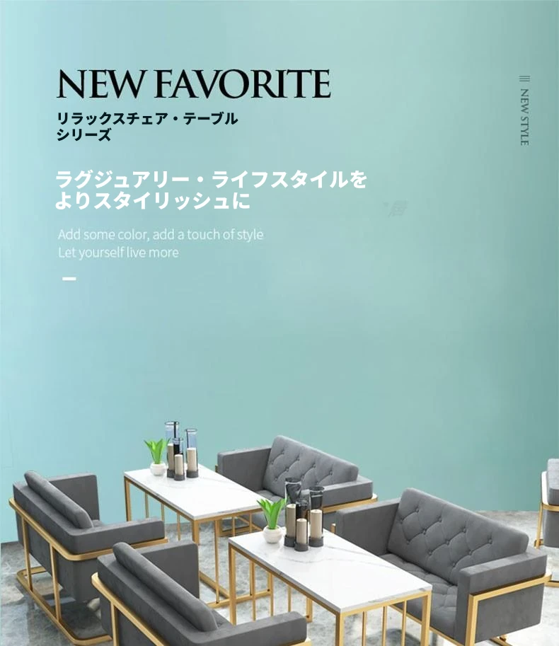 カフェスタイルのソファセット!おしゃれなカフェやティーショップ、ショールーム、バーに最適な2人掛けソファとテーブルのコンビネーション。お客様との会話を楽しむ、心地よい空間を演出します。