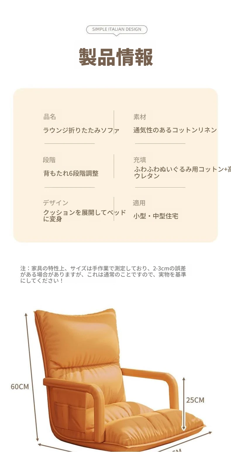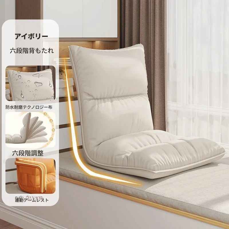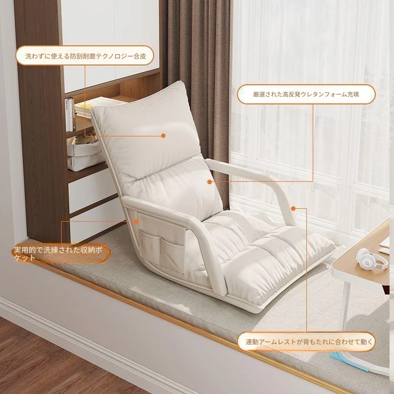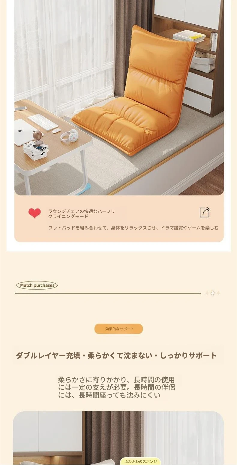 楽々リクライニングソファー - 折りたたみ式・窓際用クッション・ベッドサポートチェア・畳座布団・学生寮やカーペットに最適な地面用マット。快適なリラックスタイムをあなたに!