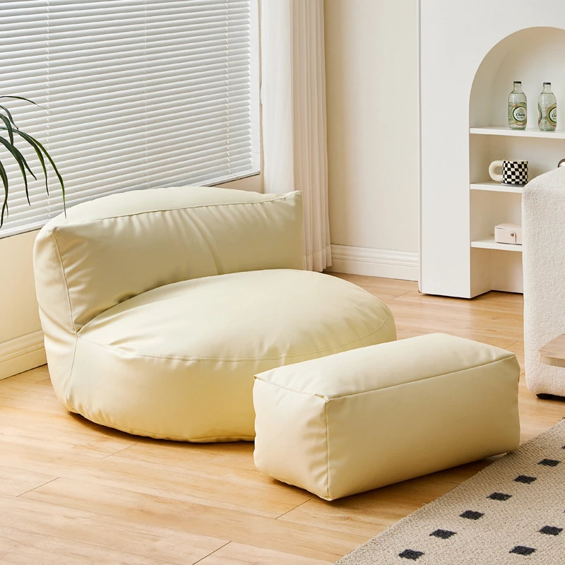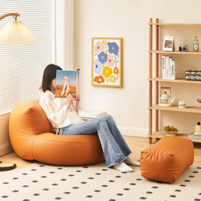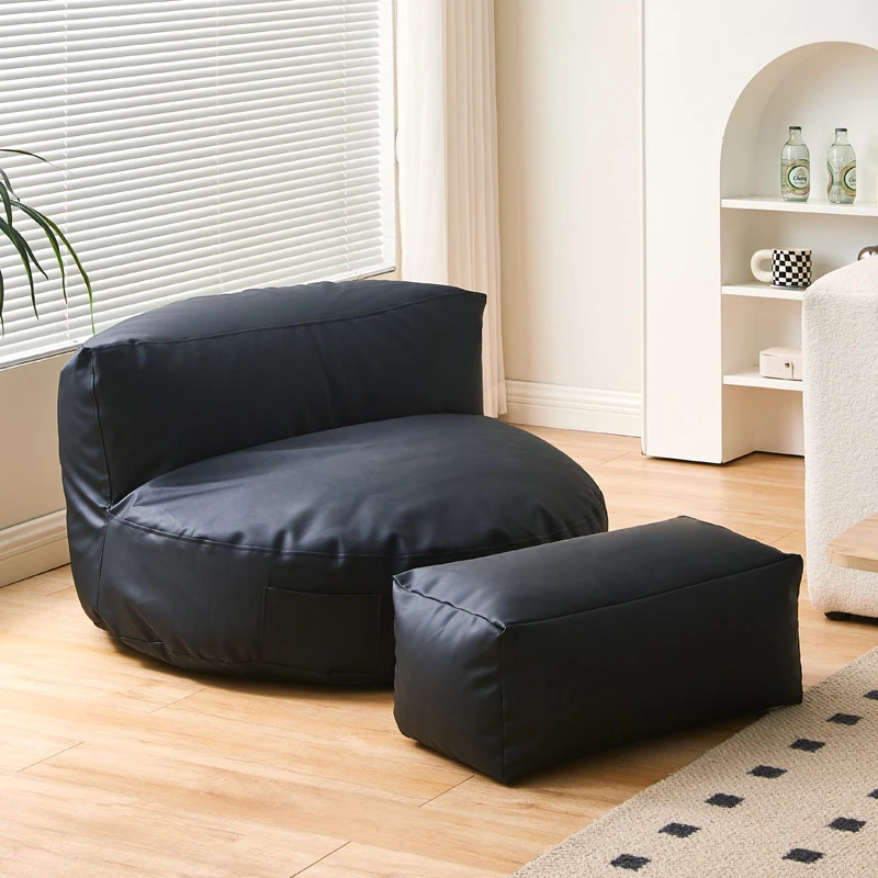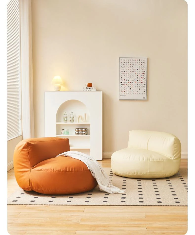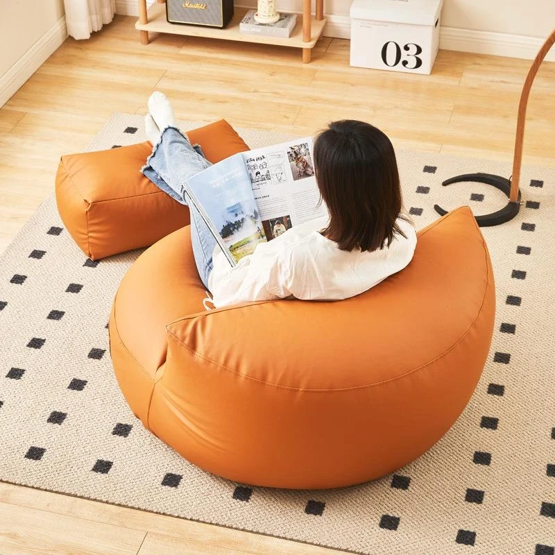 リラックスソファ!寝転んでくつろげる快適なカウチチェア。半月型デザインで、バルコニーやタタミにぴったり。小さなスペースでも使える豆袋タイプ!あなたのリラックスタイムを贅沢に演出します。
