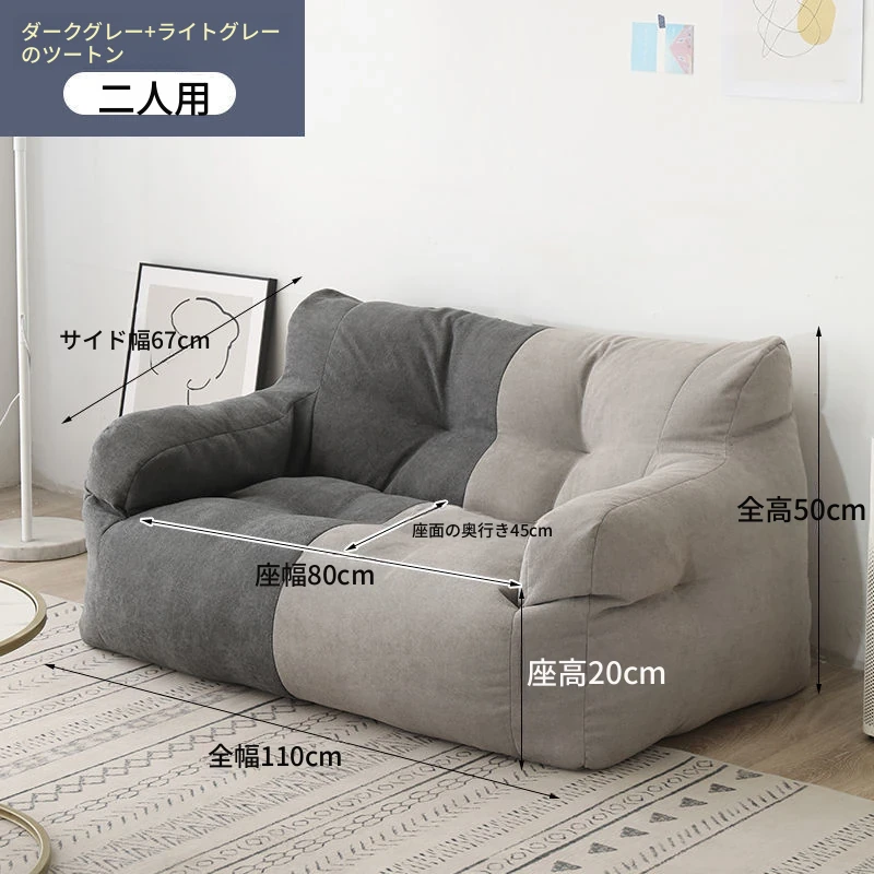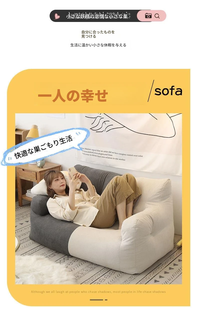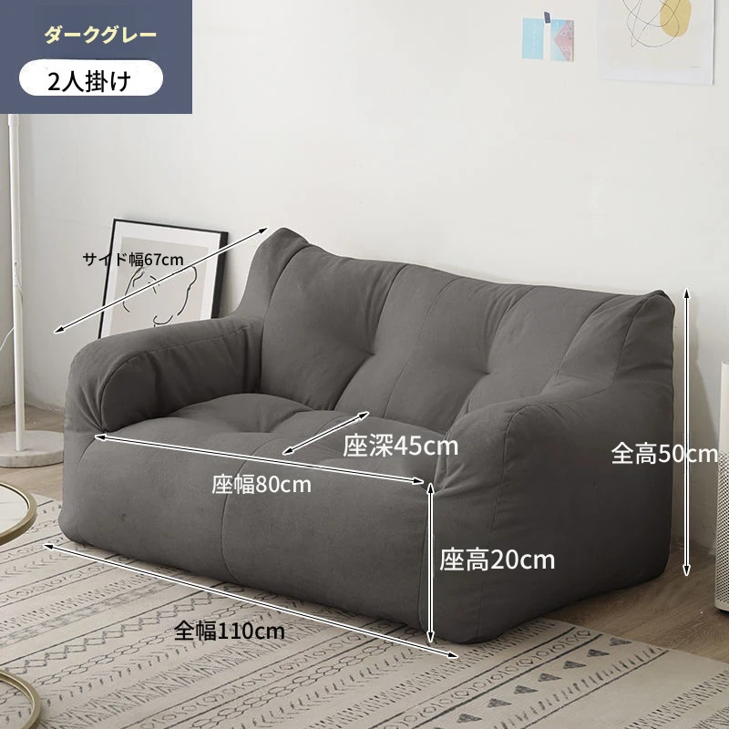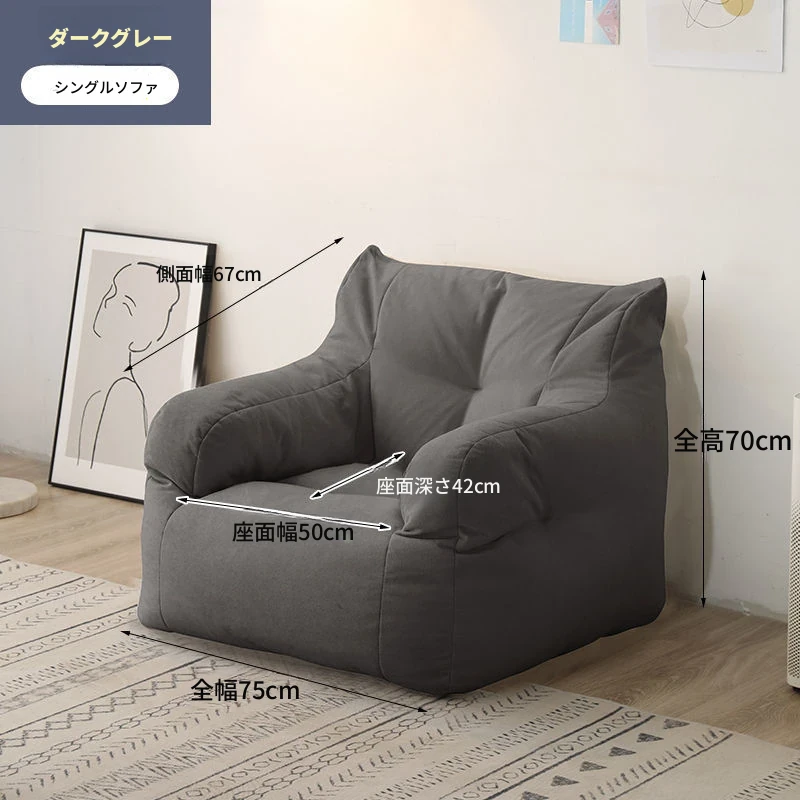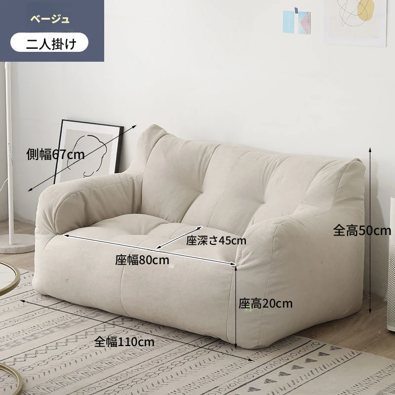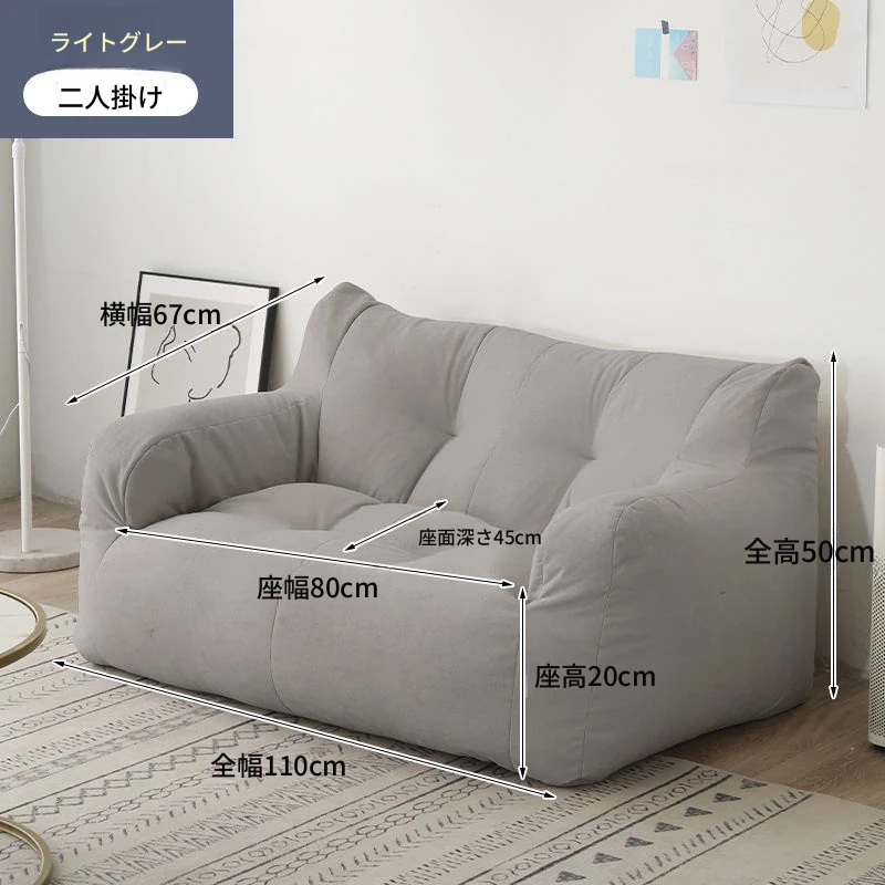 リラックスできるソファ!狭いお部屋にぴったりな寝転びソファ。寝ることもできるので、タタミやバルコニーでのリラックスタイムに最適な豆袋ソファです。