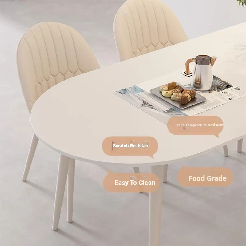Elegant Cream-Style Oval Dining Table Set for Small Spaces - Modern Minimalist Design with Sleek Dining Chairs, Perfect for Home Use!