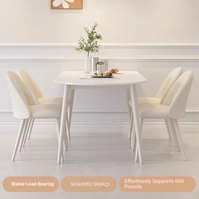 [Cream Wind] New arrival Pure White Rock Plate Dining Table and Chair, Factory Monopoly, Peninsula Rock Plate Single Table 51.18inx27.56in +4 Lightning Chairs