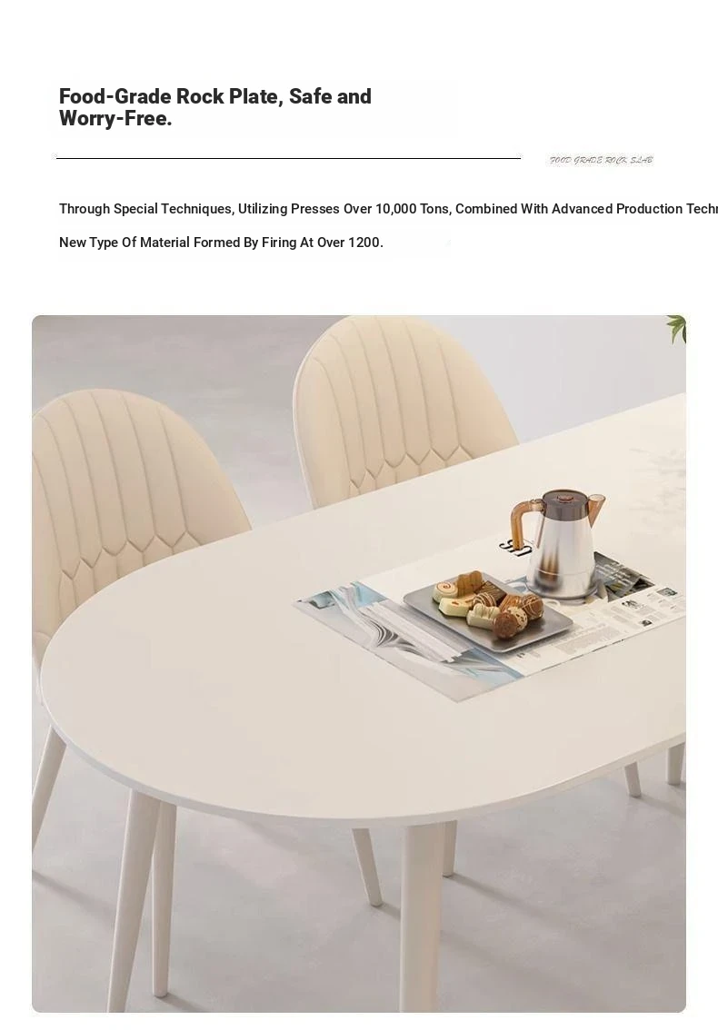 [Cream Wind] New arrival Pure White Rock Plate Dining Table and Chair, Factory Monopoly, Peninsula Rock Plate Single Table 70.87inx35.43in +4 Lightning Chairs