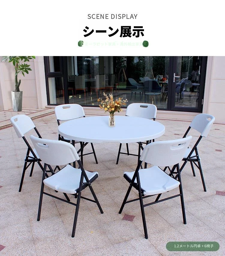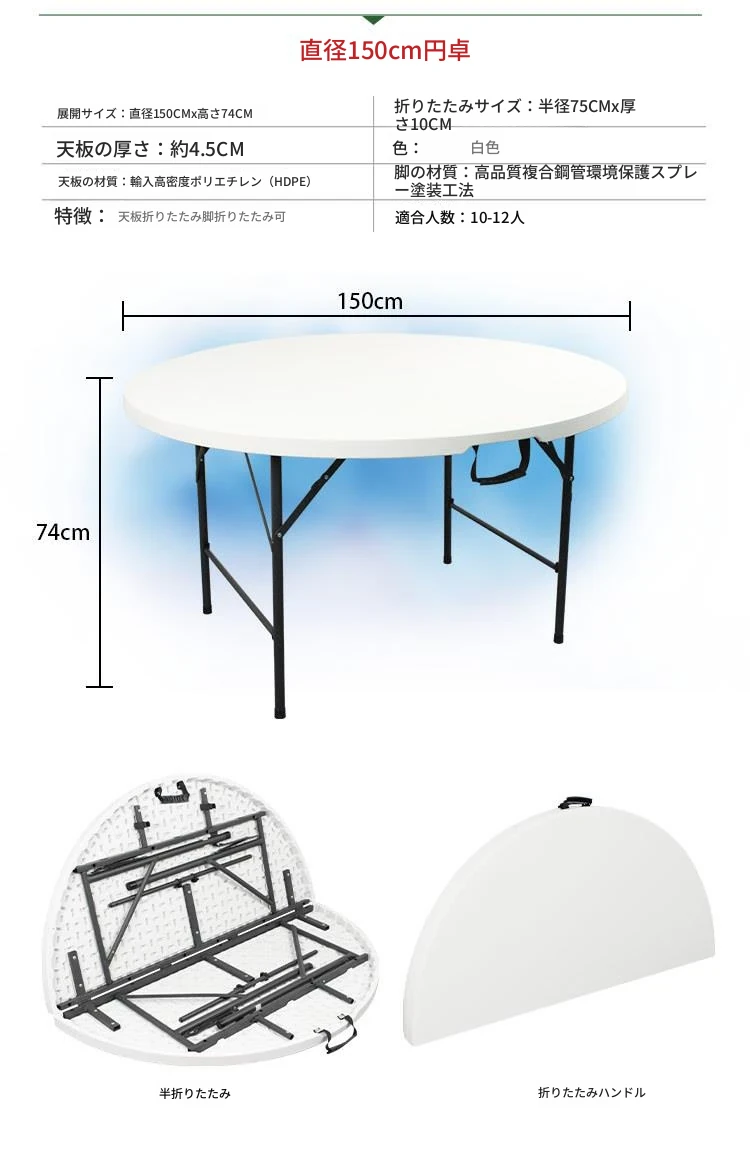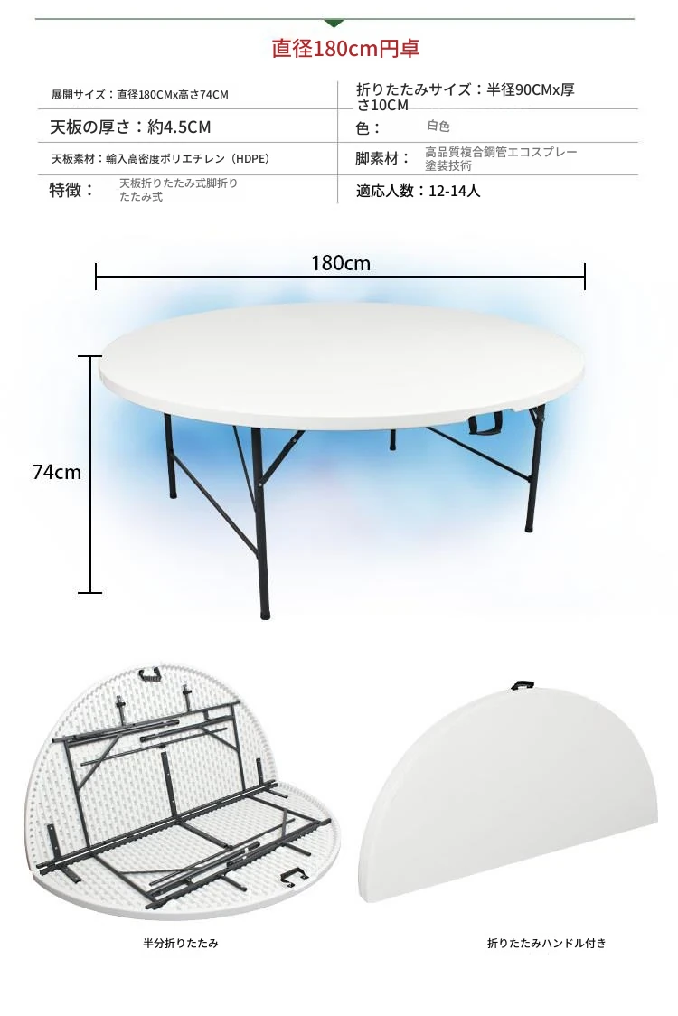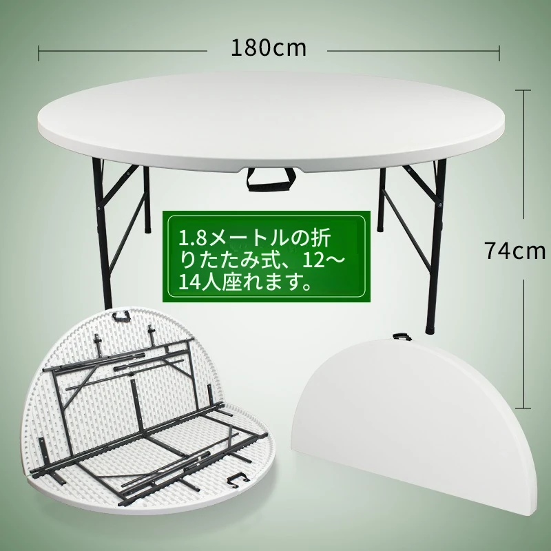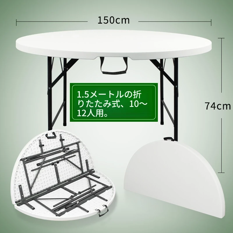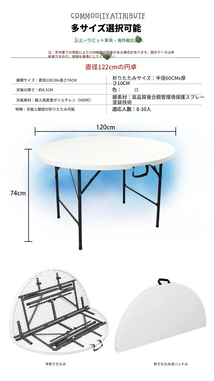 折りたたみ式円形ダイニングテーブル - 家庭用大サイズ、10人用の円卓で、小さなスペースにも最適!シンプルでスタイリッシュ、食事を楽しくするデザインです。