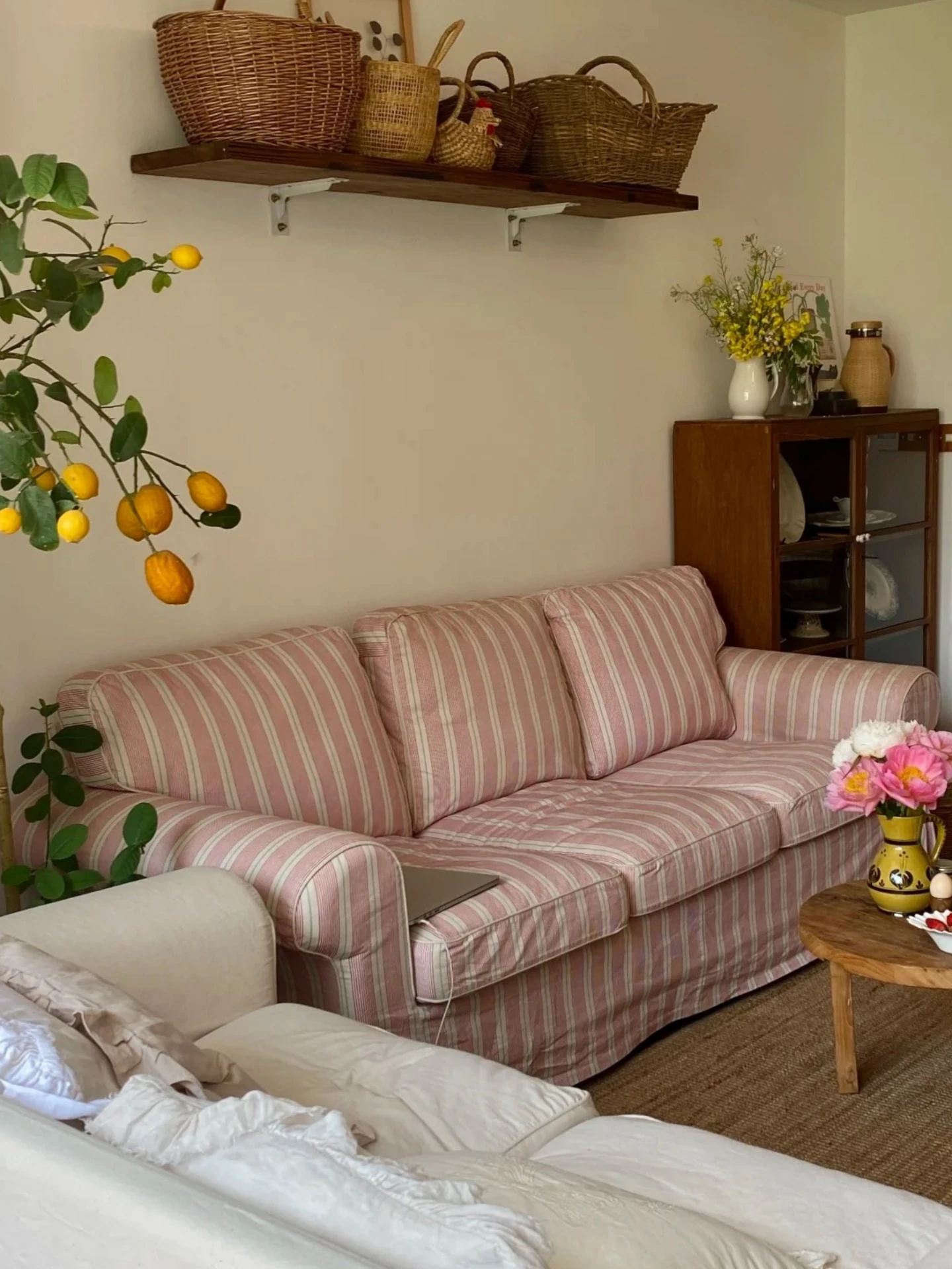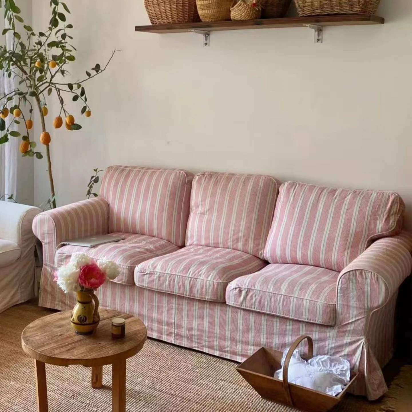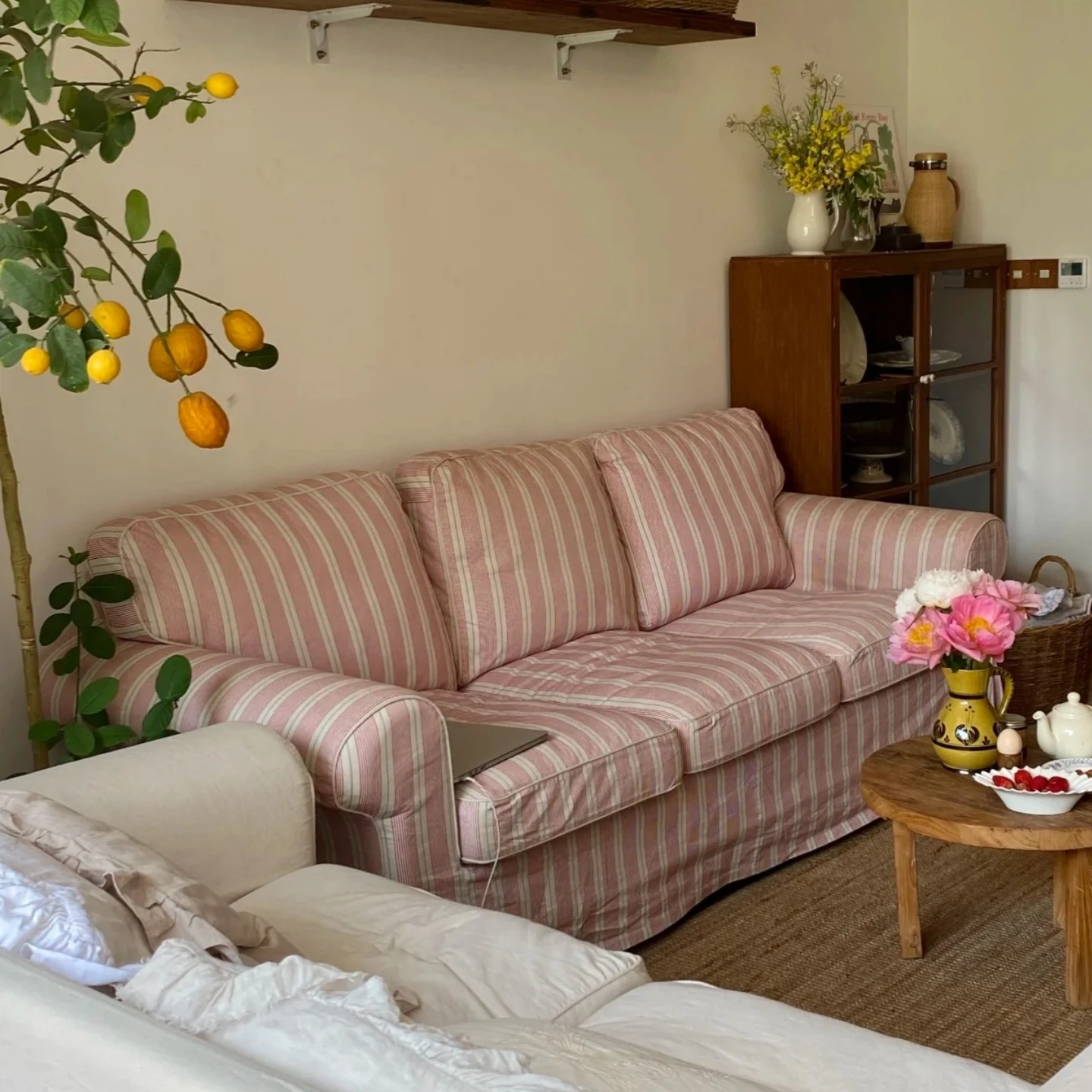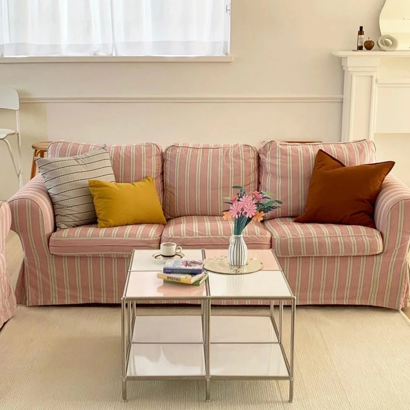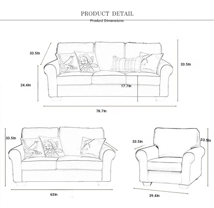 French Vintage Fabric Sofa for Small Living Rooms - Stylish Country Design for Designer Hotels and Cozy Bedrooms - Available in Single, Double, and Three-Seater Options