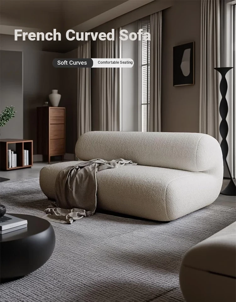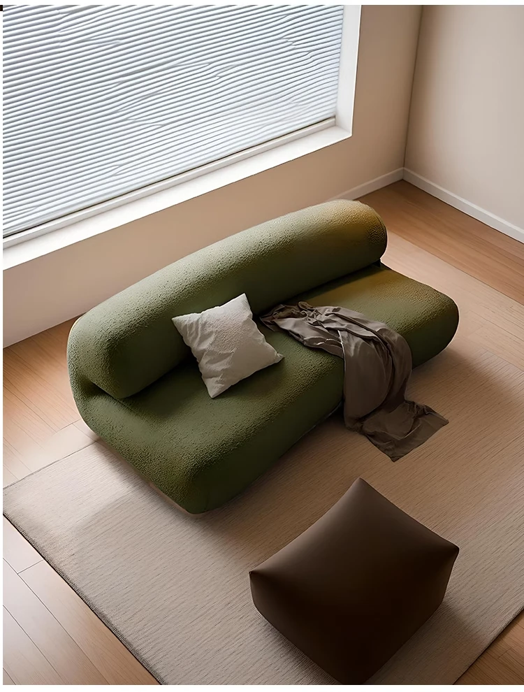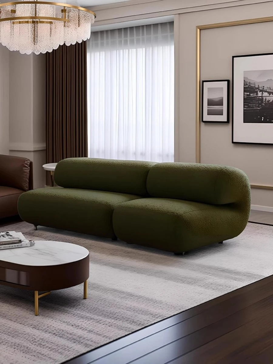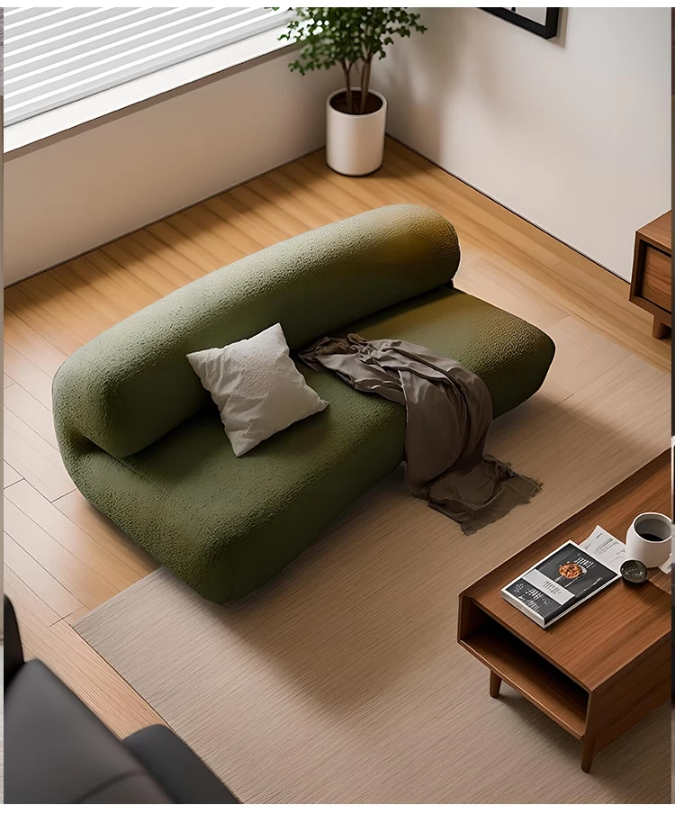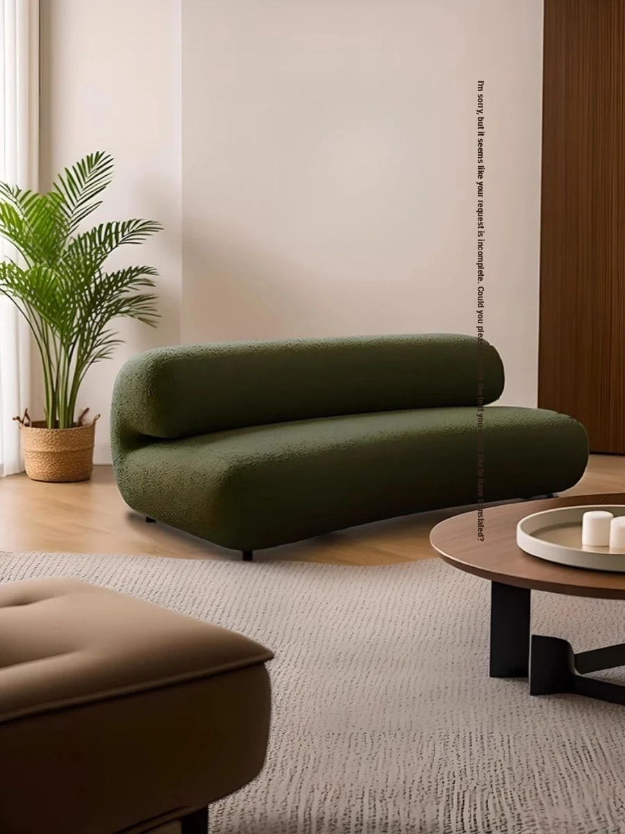 French Vintage Style Fabric Sofa - Wabi-Sabi Design for Small Spaces, Ideal for Airbnb, Apartments, and Hotels - Cozy Lambswool Straight Sofa