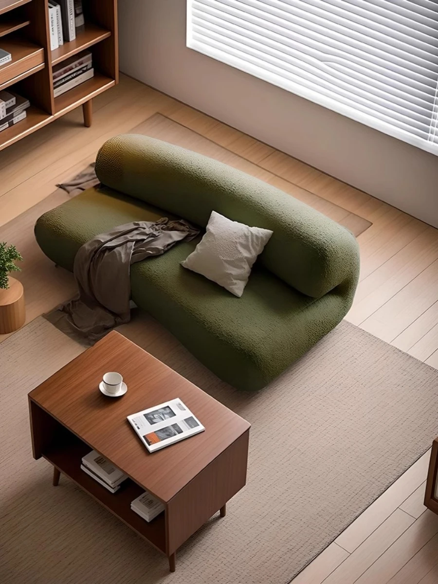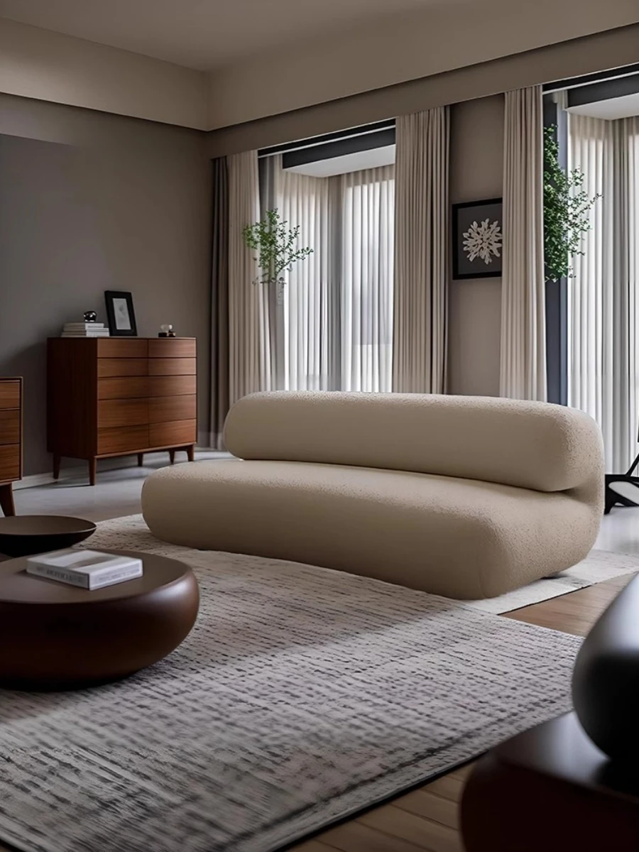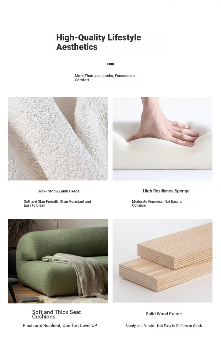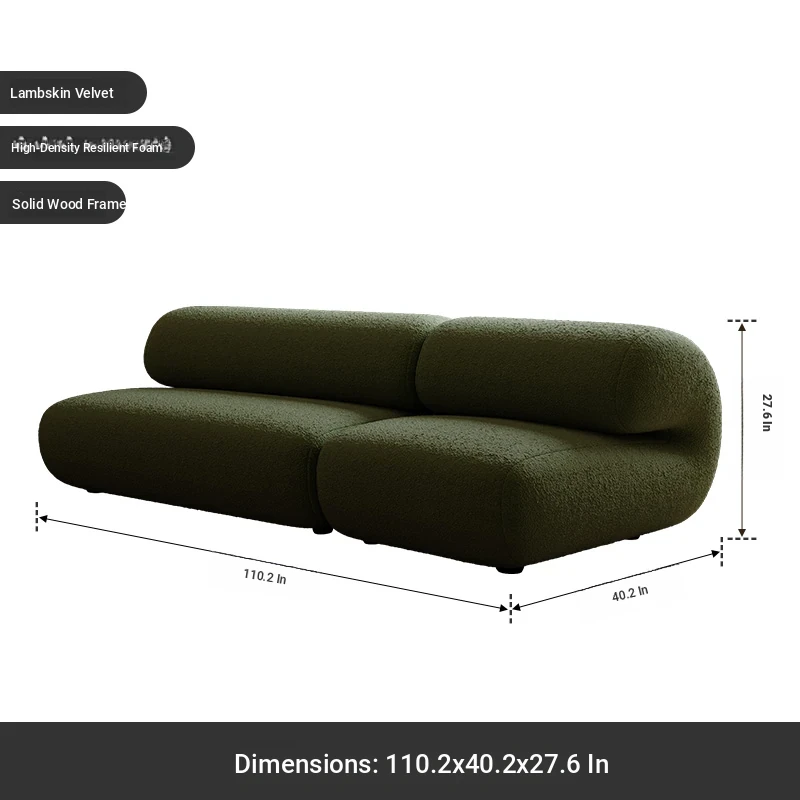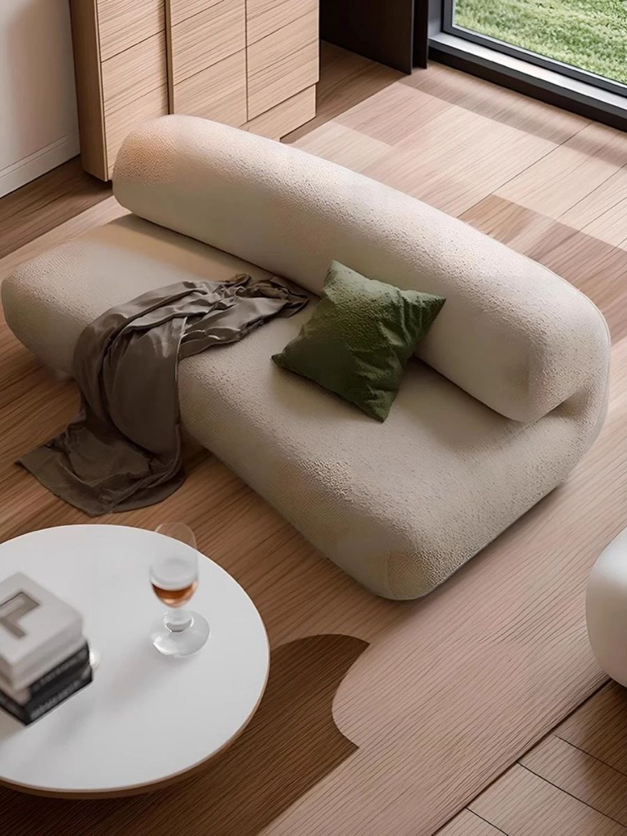 French Vintage Style Fabric Sofa - Wabi-Sabi Design for Small Spaces, Ideal for Airbnb, Apartments, and Hotels - Cozy Lambswool Straight Sofa