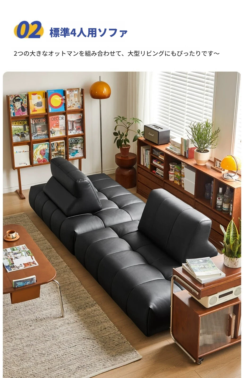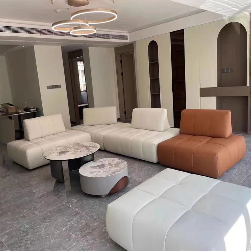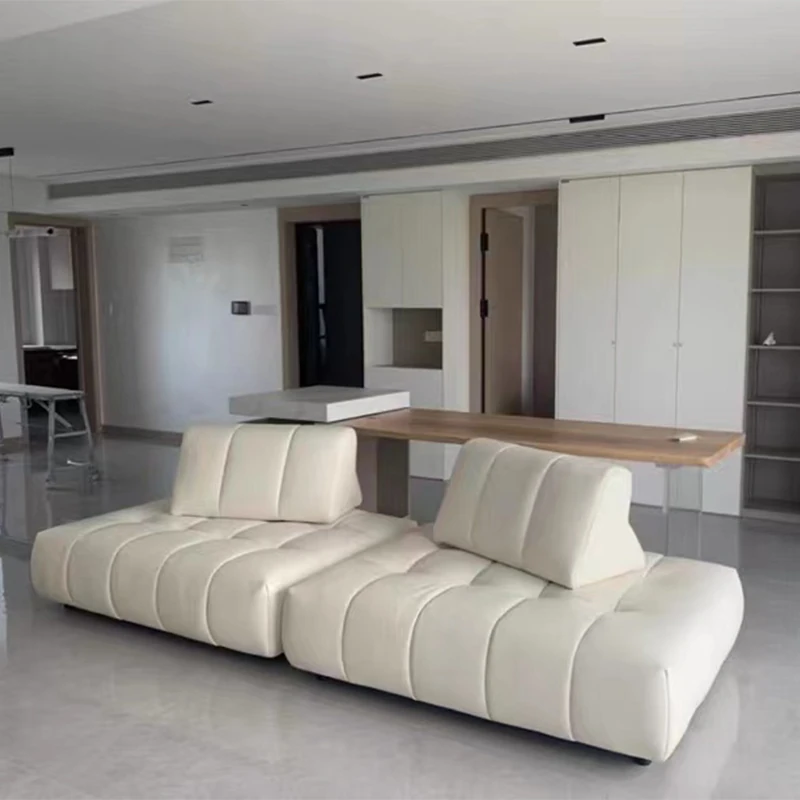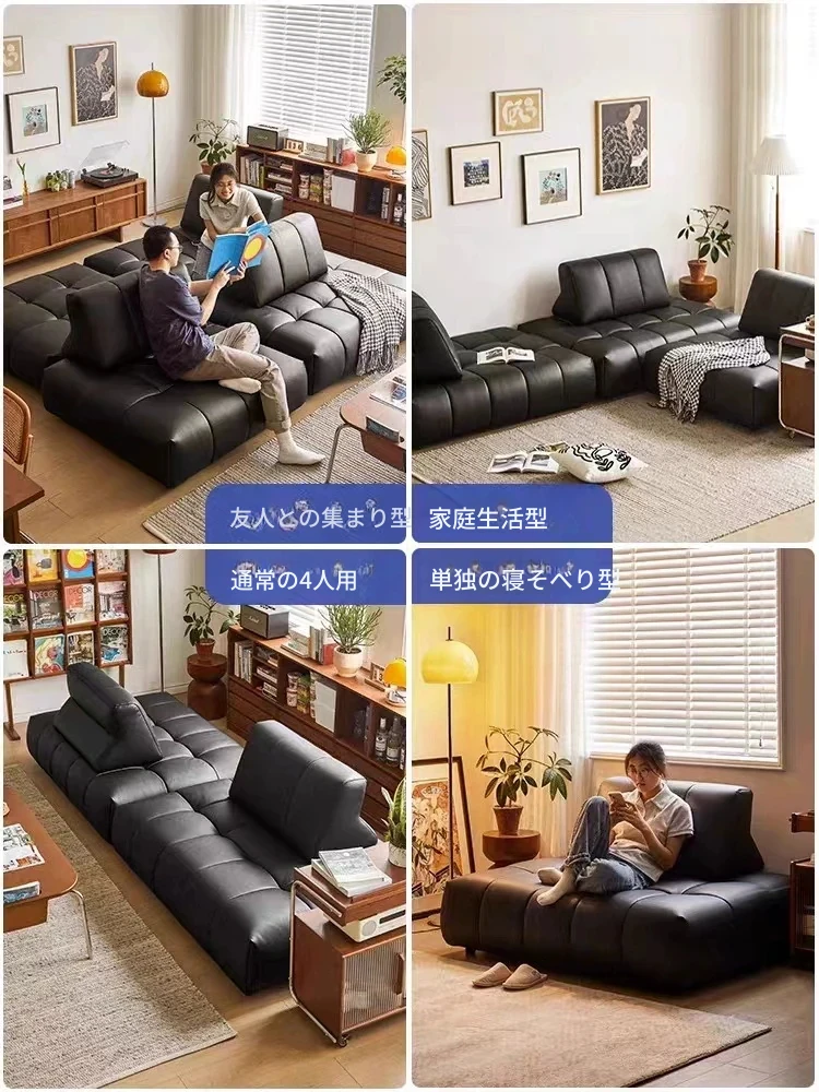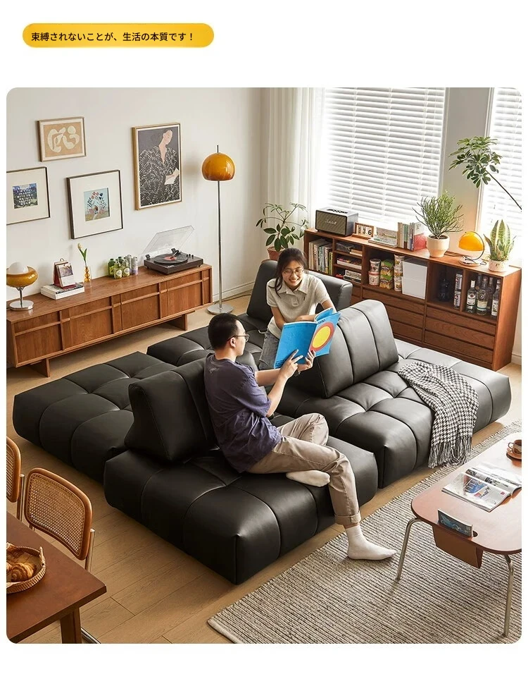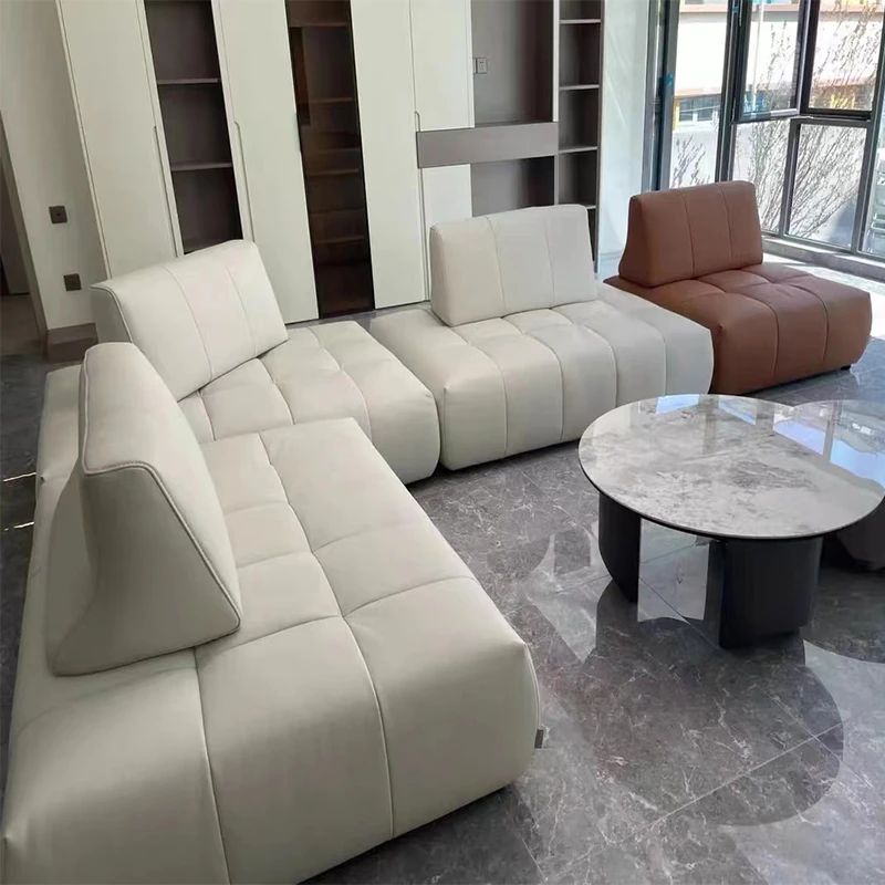 ドイツ製ウィシャー豆腐ブロックモジュラーコンビネーションソファ - クリーム風味の本革使用、小型住宅にぴったりなアーティスティックな空間を演出するスクエアソファ!