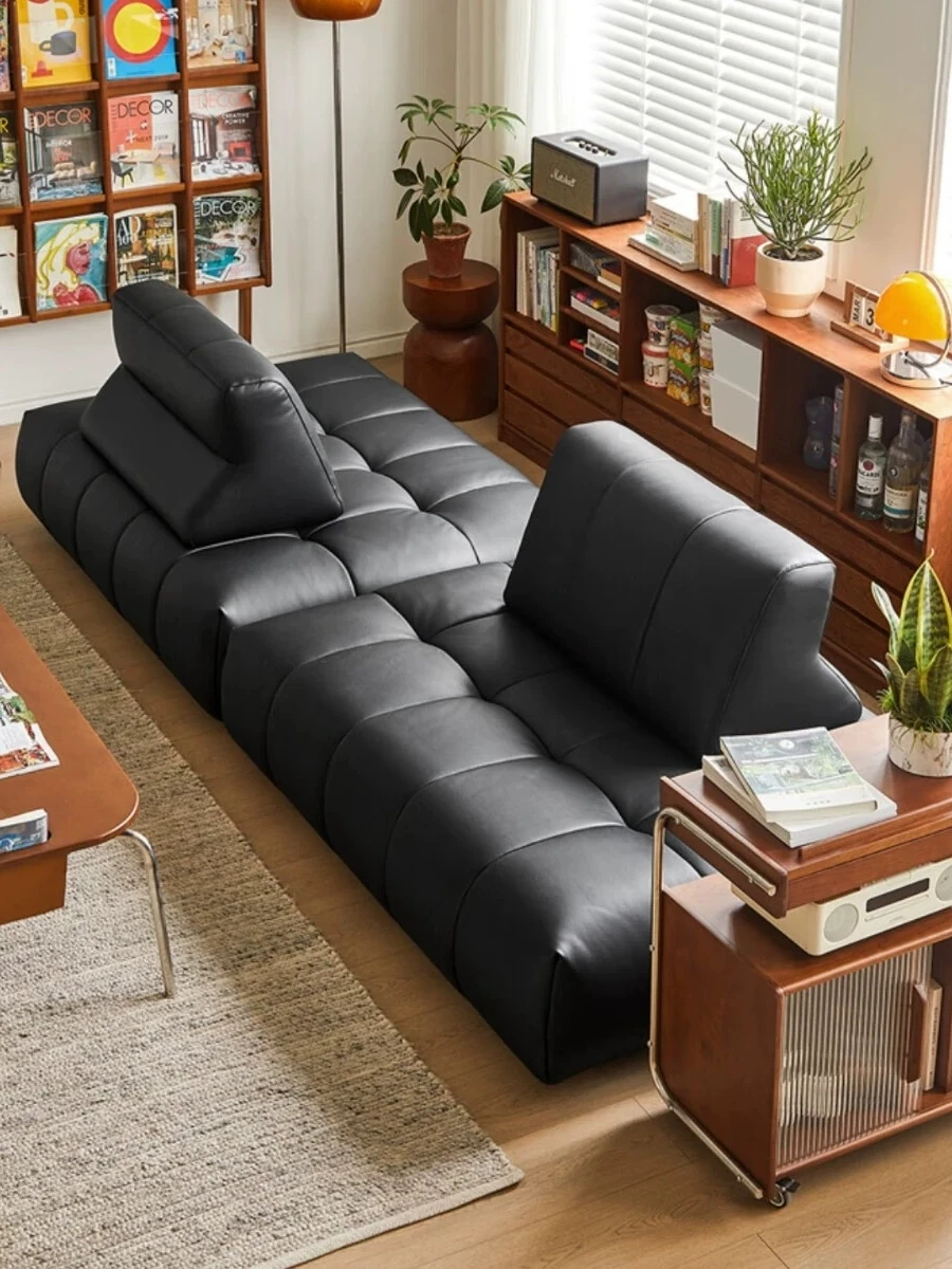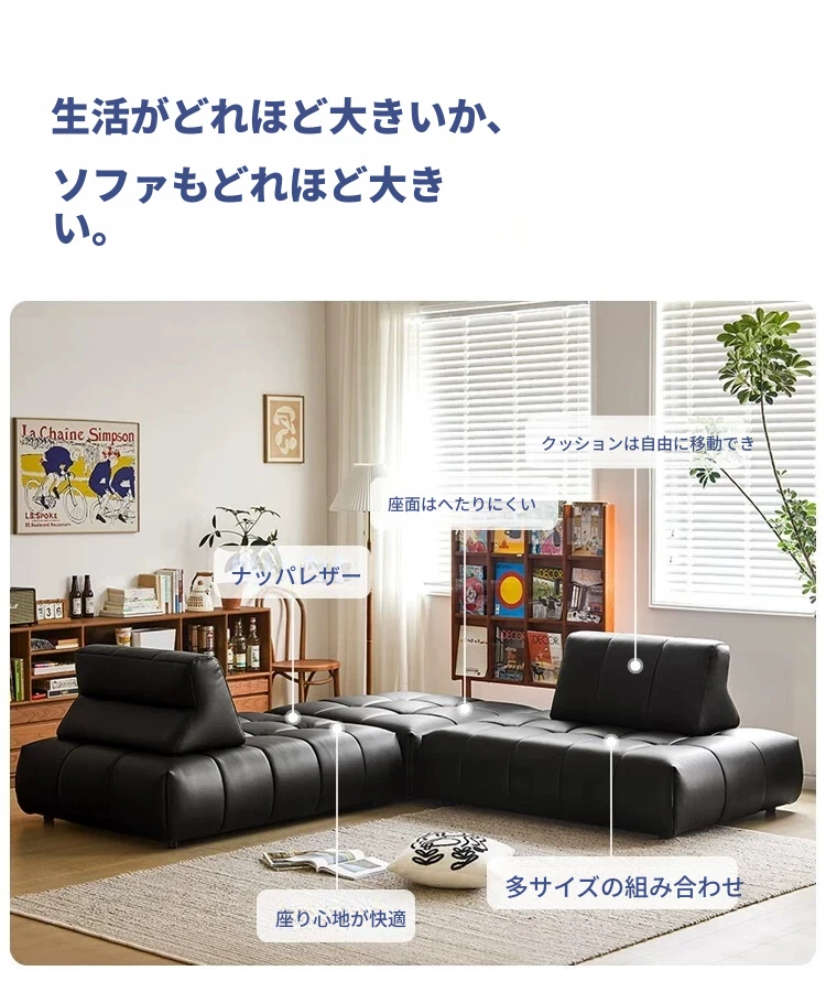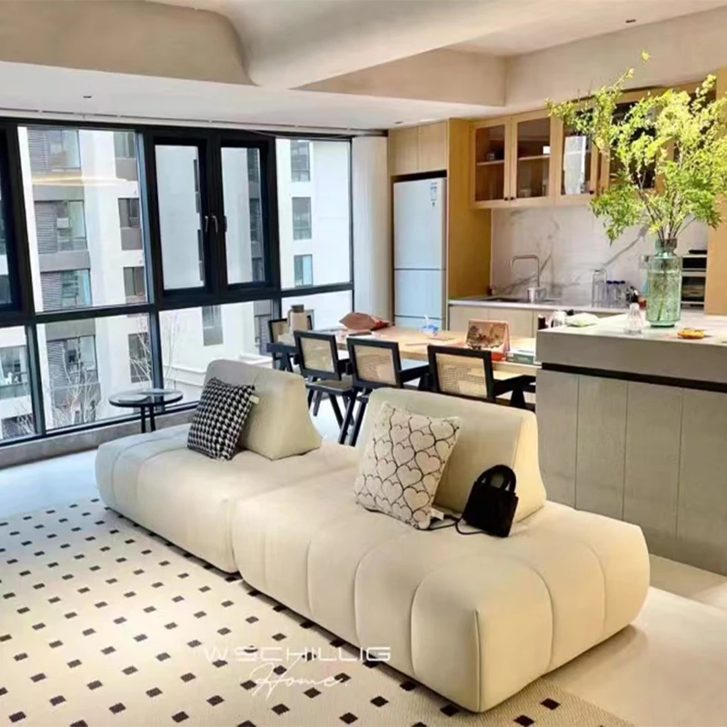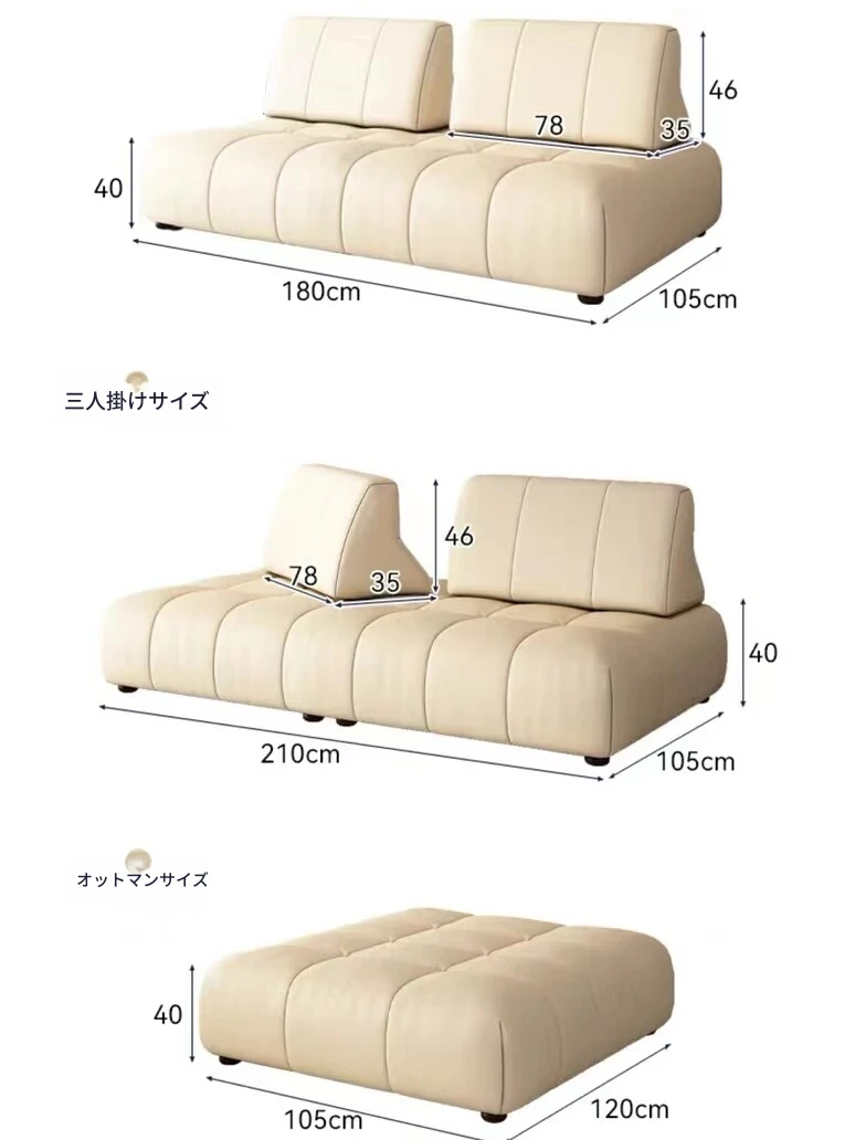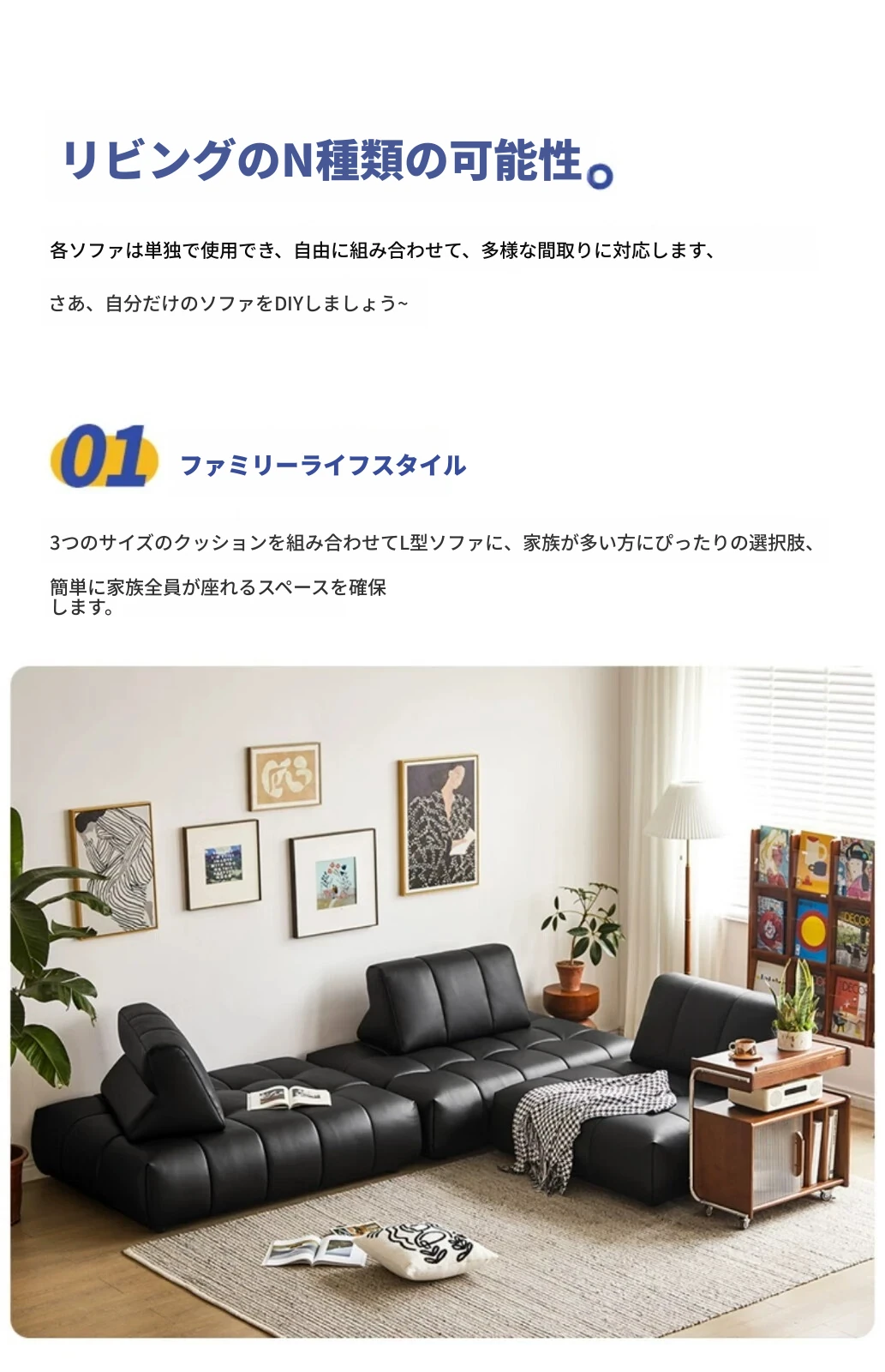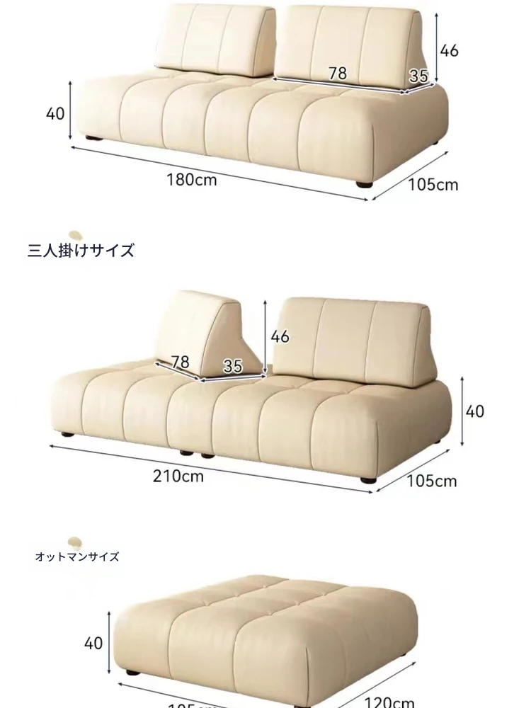 ドイツ製ウィシャー豆腐ブロックモジュラーコンビネーションソファ - クリーム風味の本革使用、小型住宅にぴったりなアーティスティックな空間を演出するスクエアソファ!