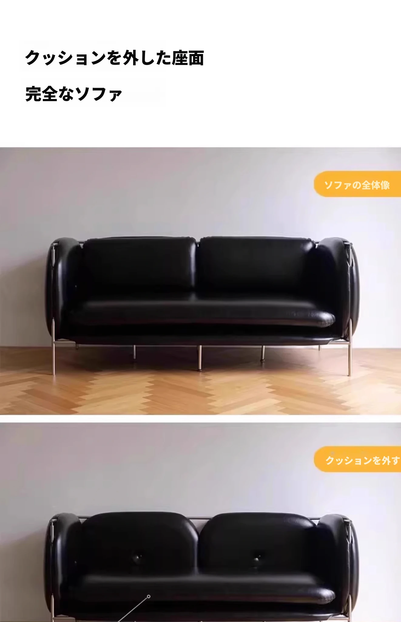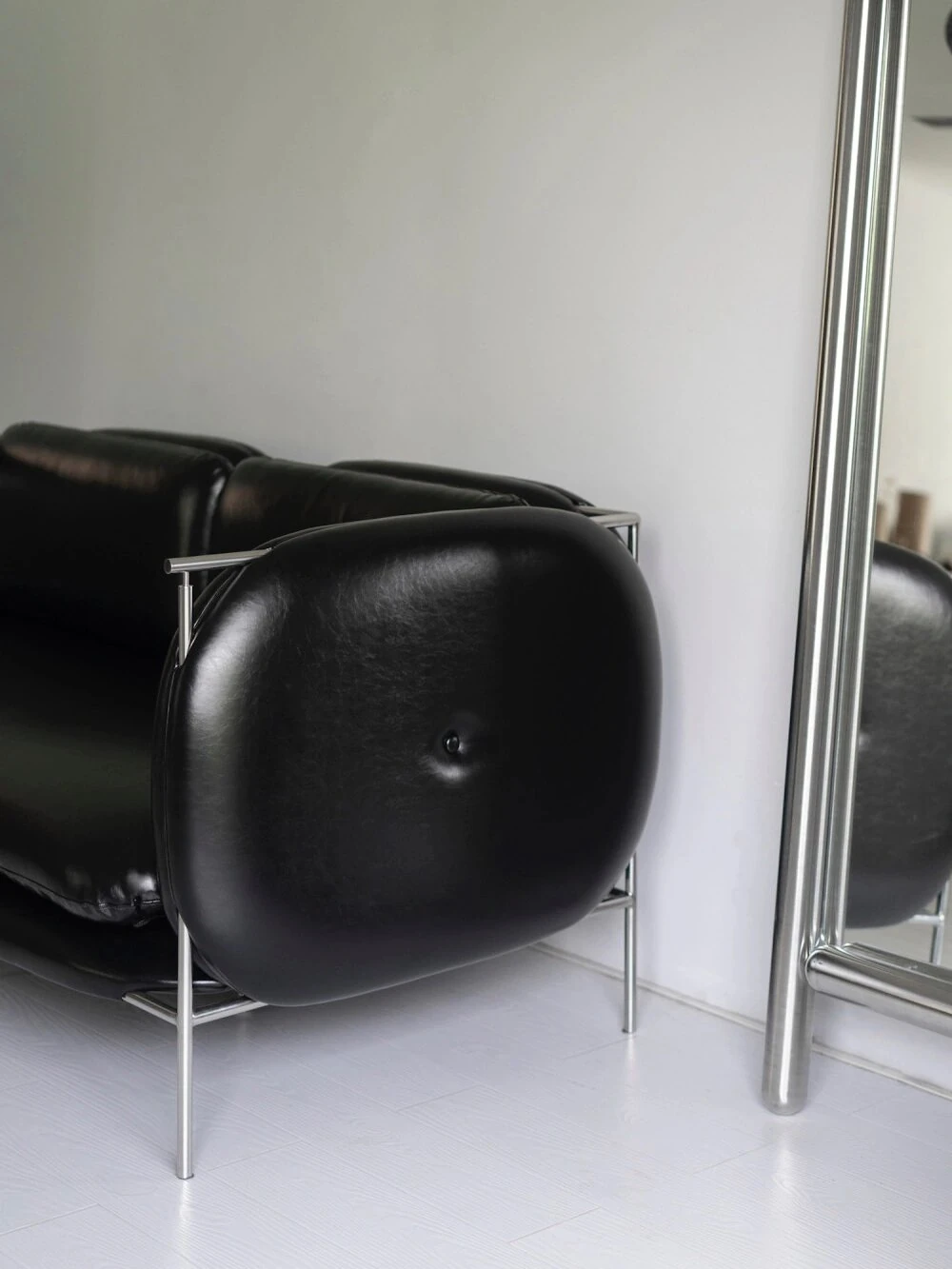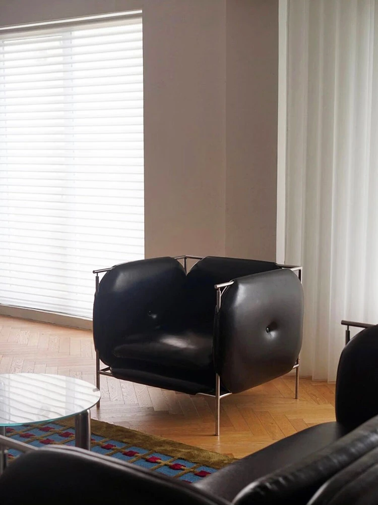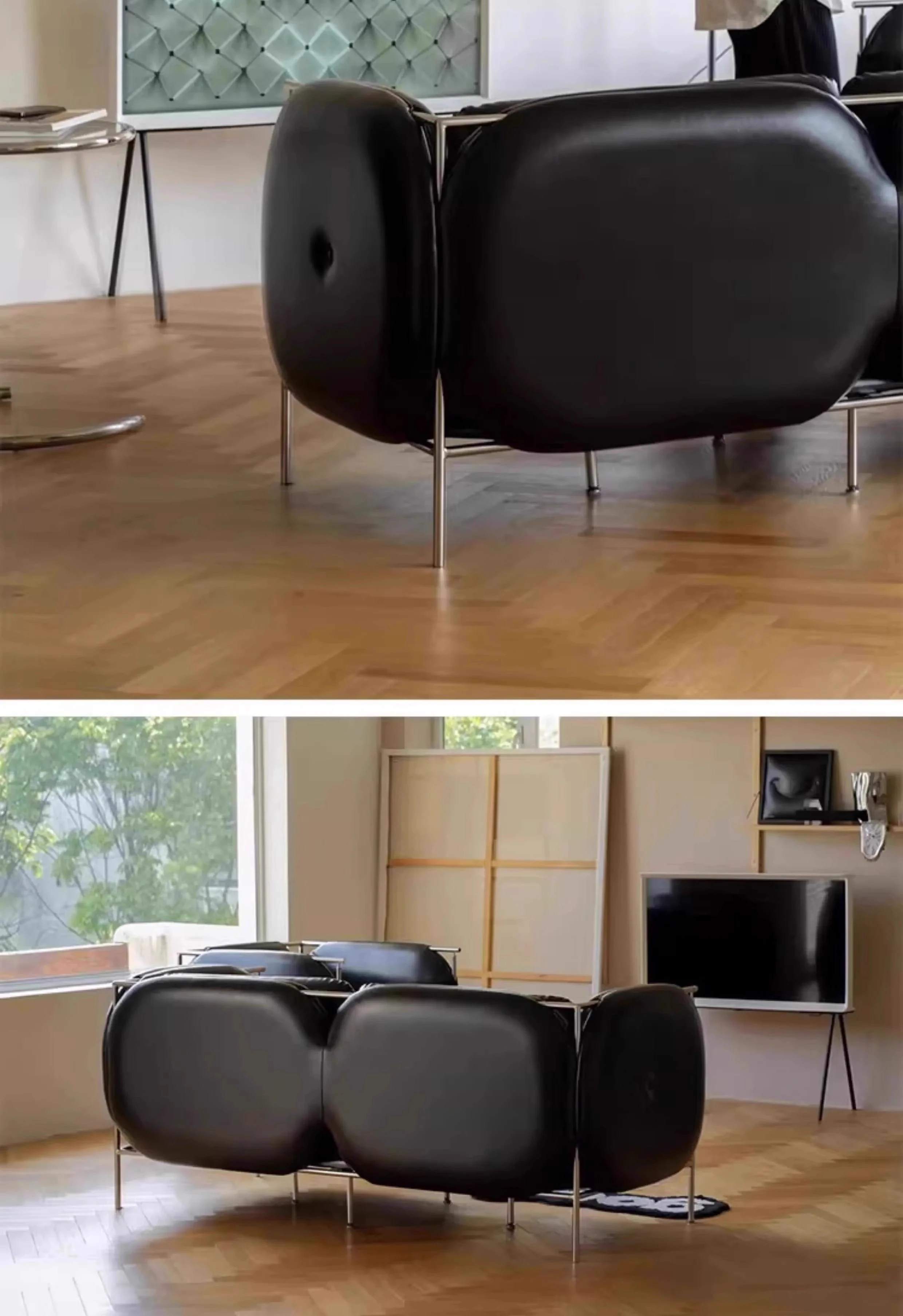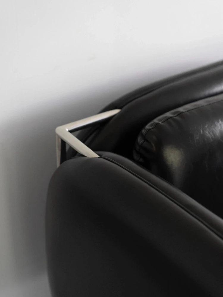ヴィンテージ風バウハウスソファ ブラックステンレス製 ラグジュアリーなコルビジェスタイル 小型店舗に最適 デザイナーソファ