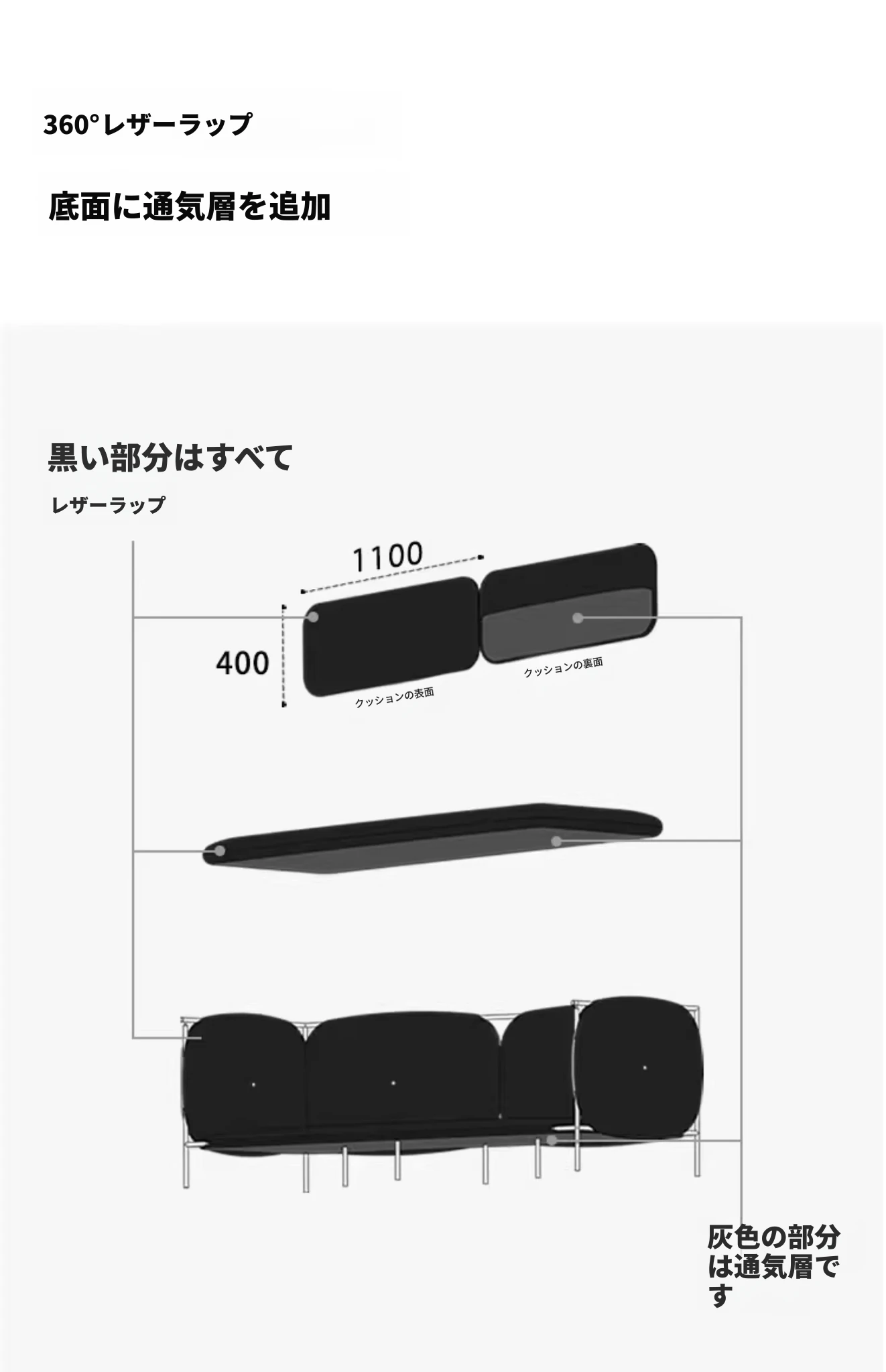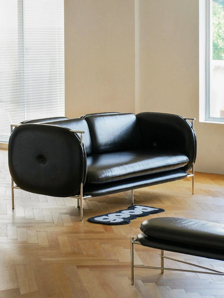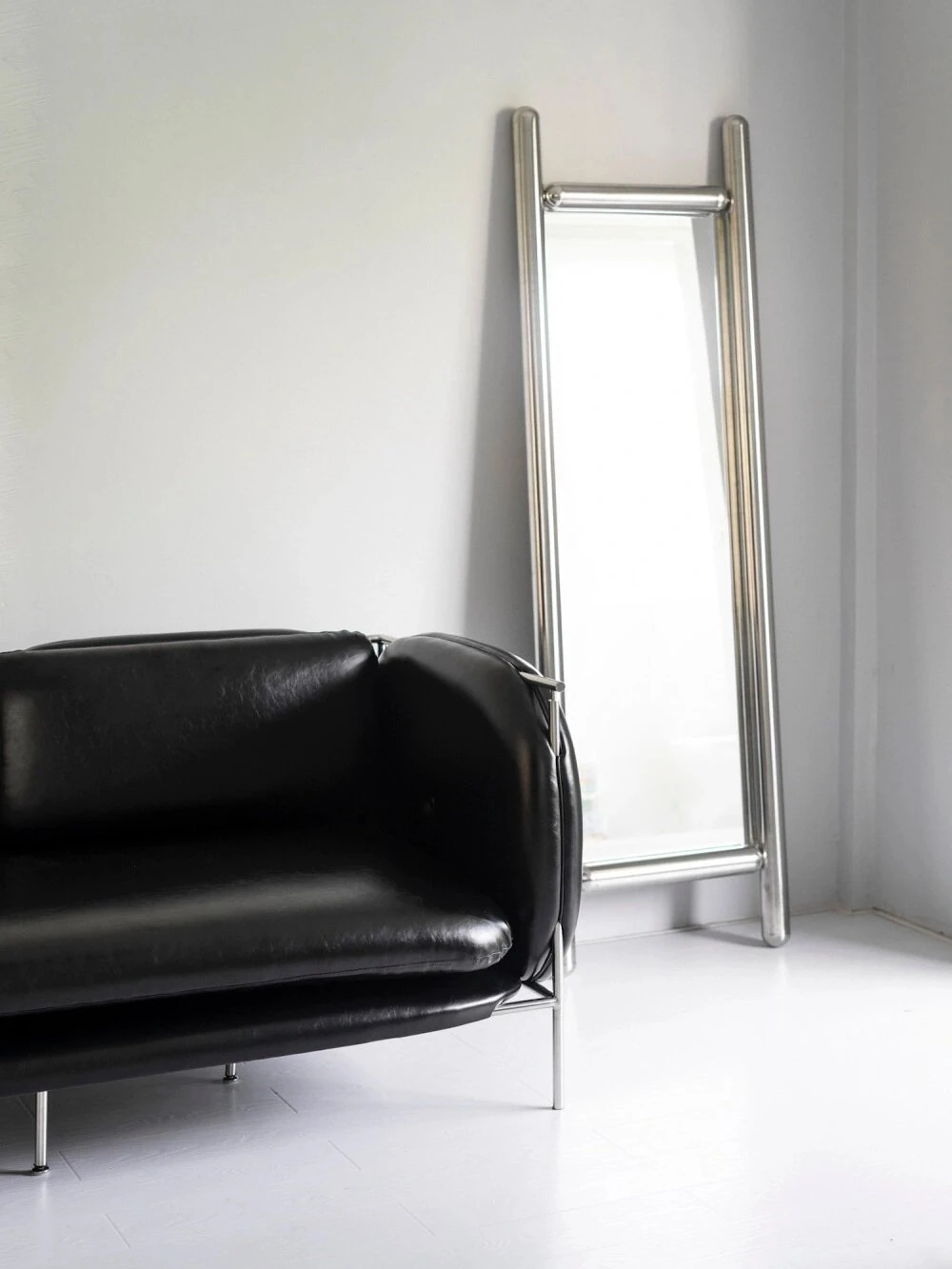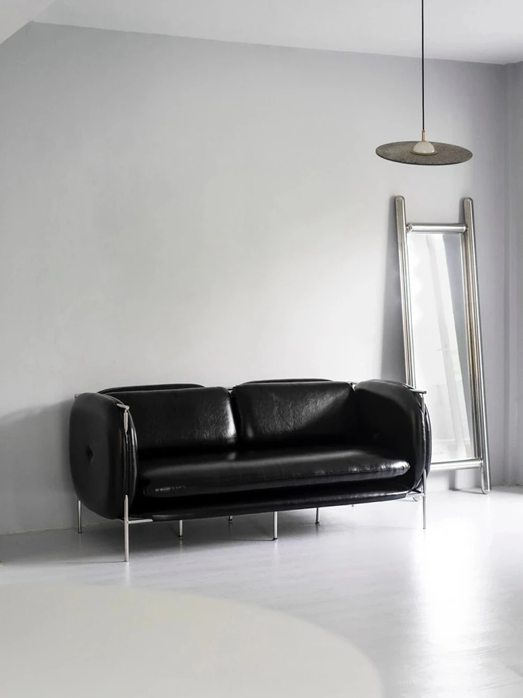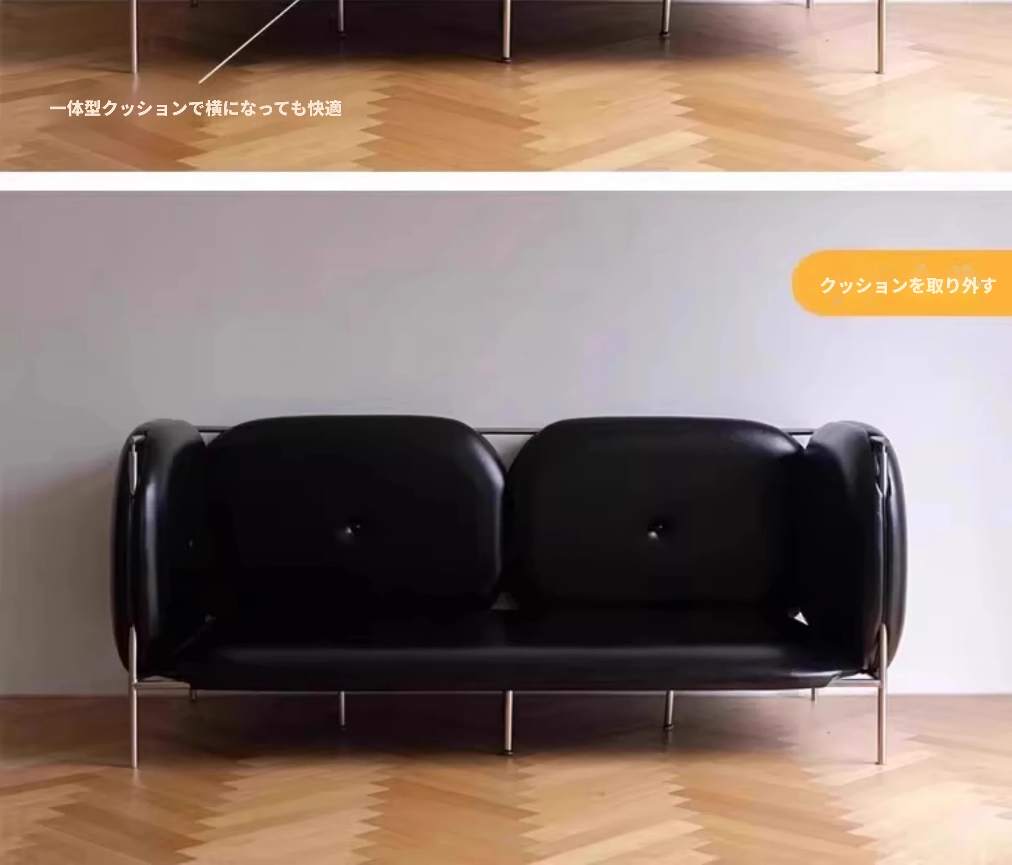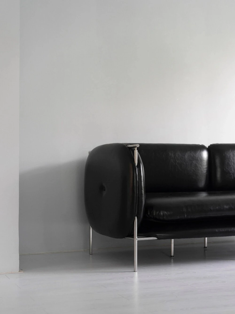 ヴィンテージ風バウハウスソファ ブラックステンレス製 ラグジュアリーなコルビジェスタイル 小型店舗に最適 デザイナーソファ