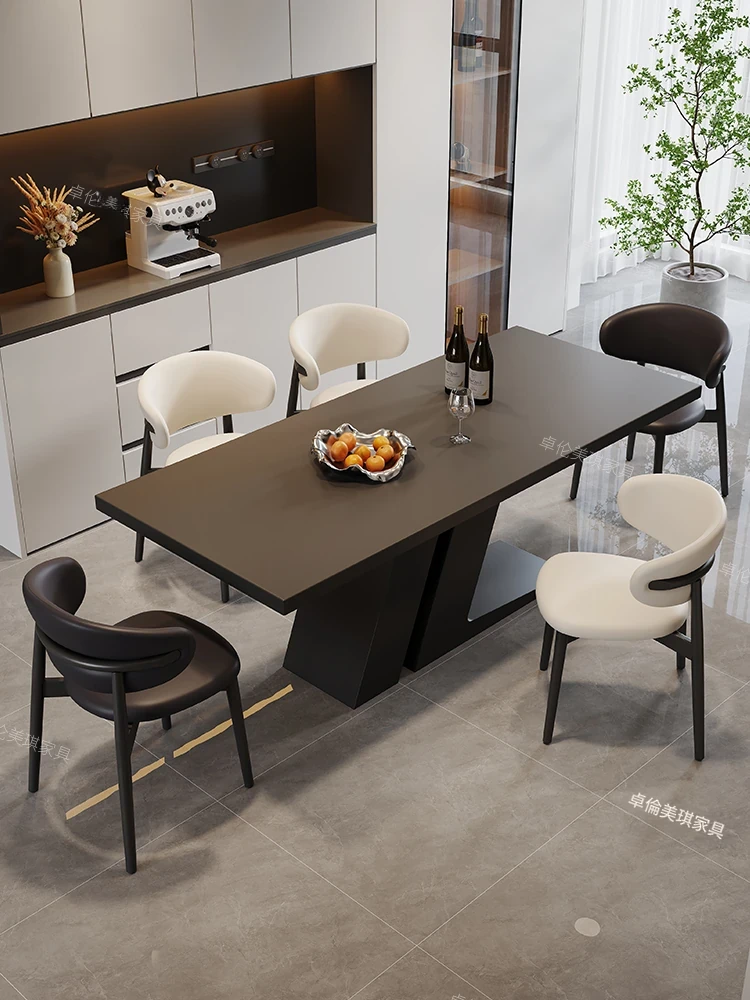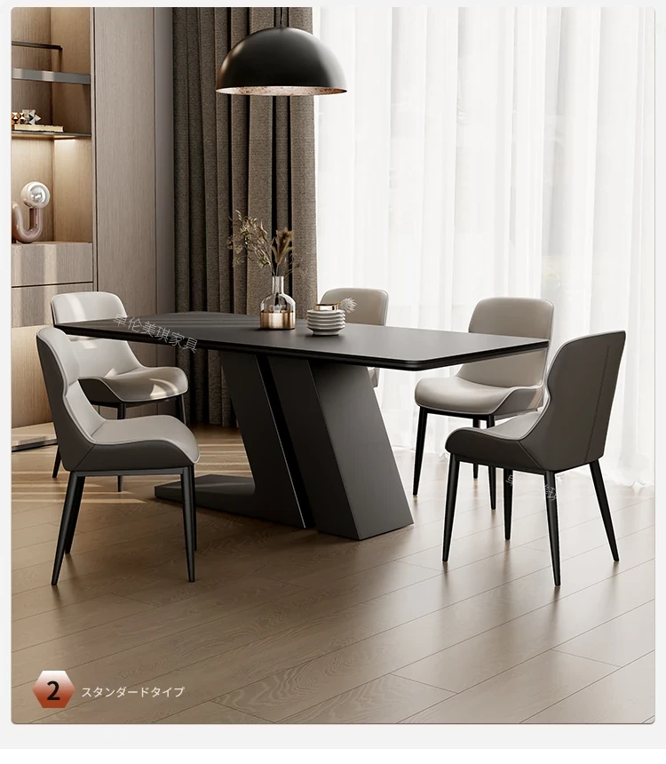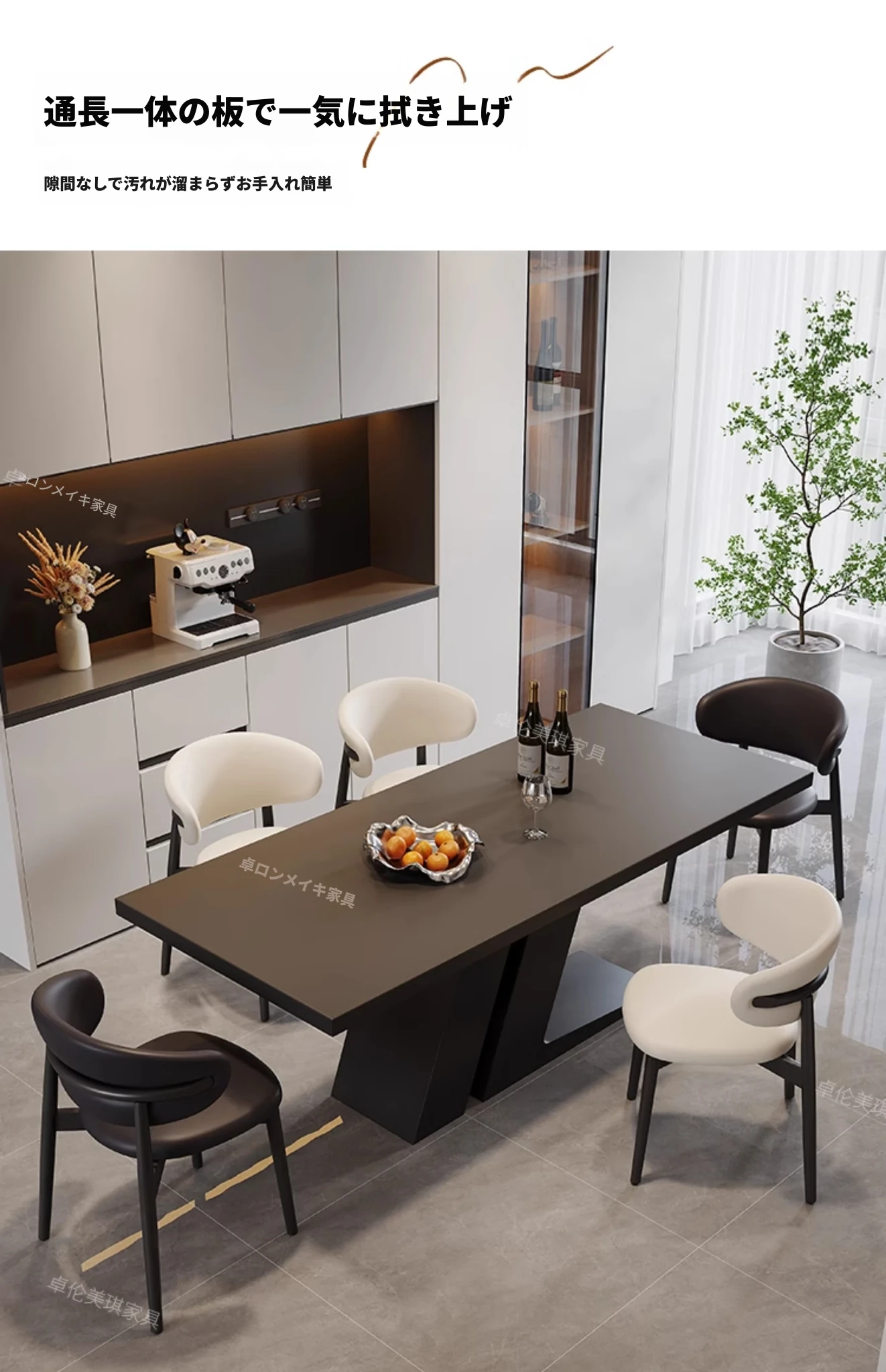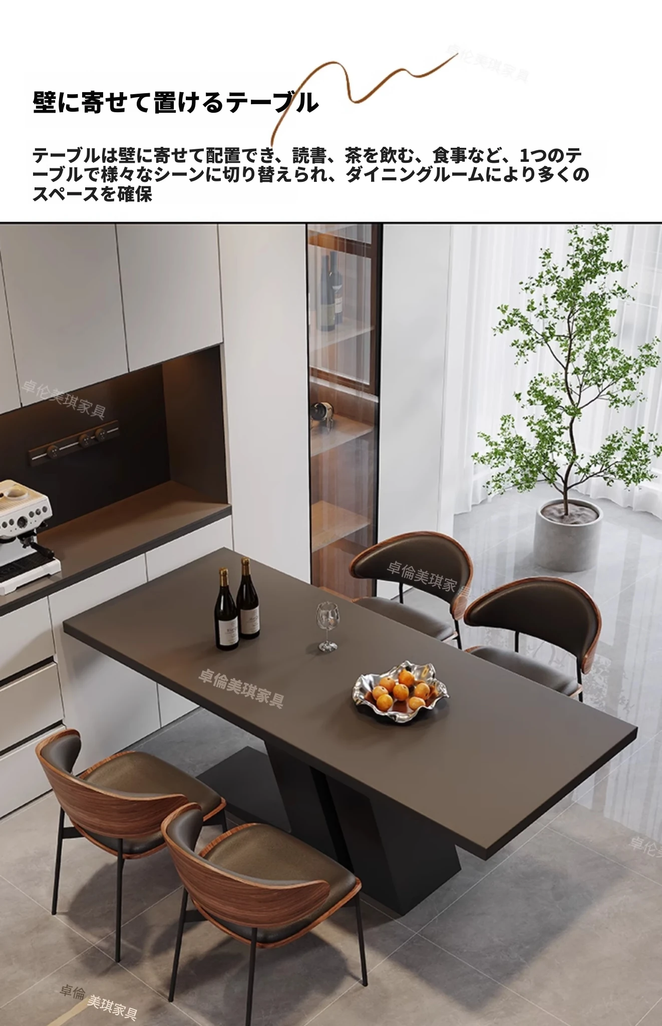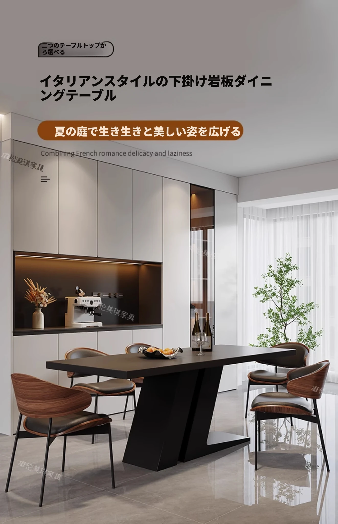 モダンミニマリストデザインの純黒スレートダイニングテーブルセット - ヴィンテージ侘寂風の魅力を感じる、シンプルで洗練された家庭用テーブル。おしゃれな空間を演出します!