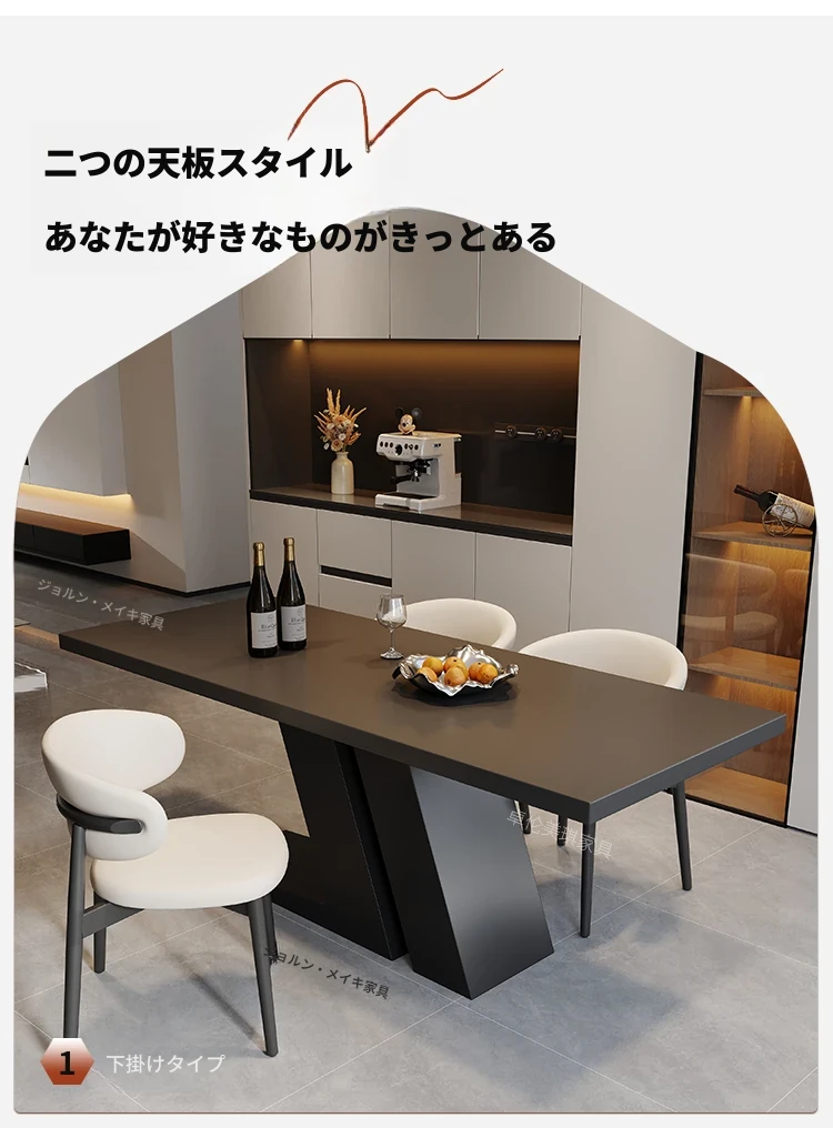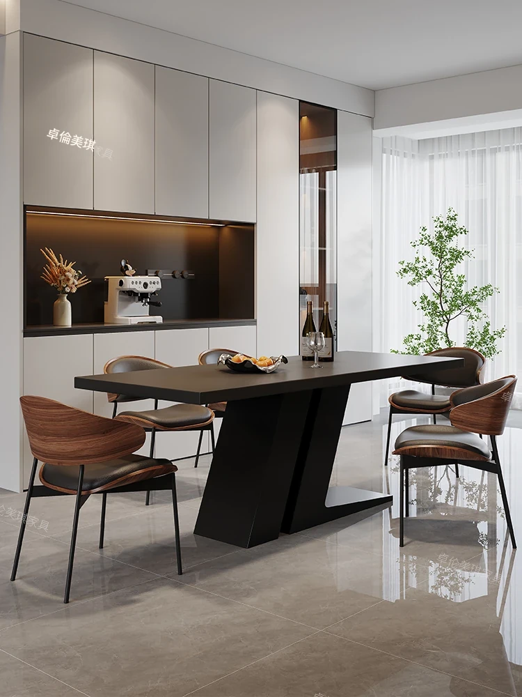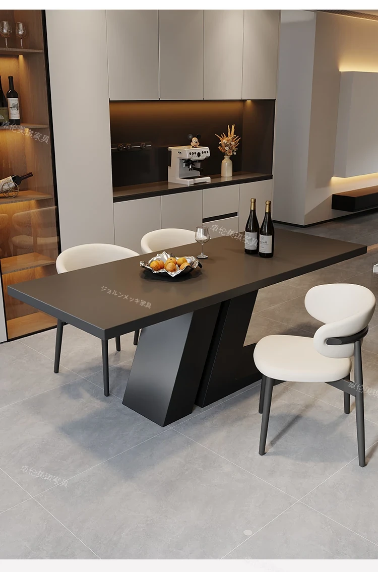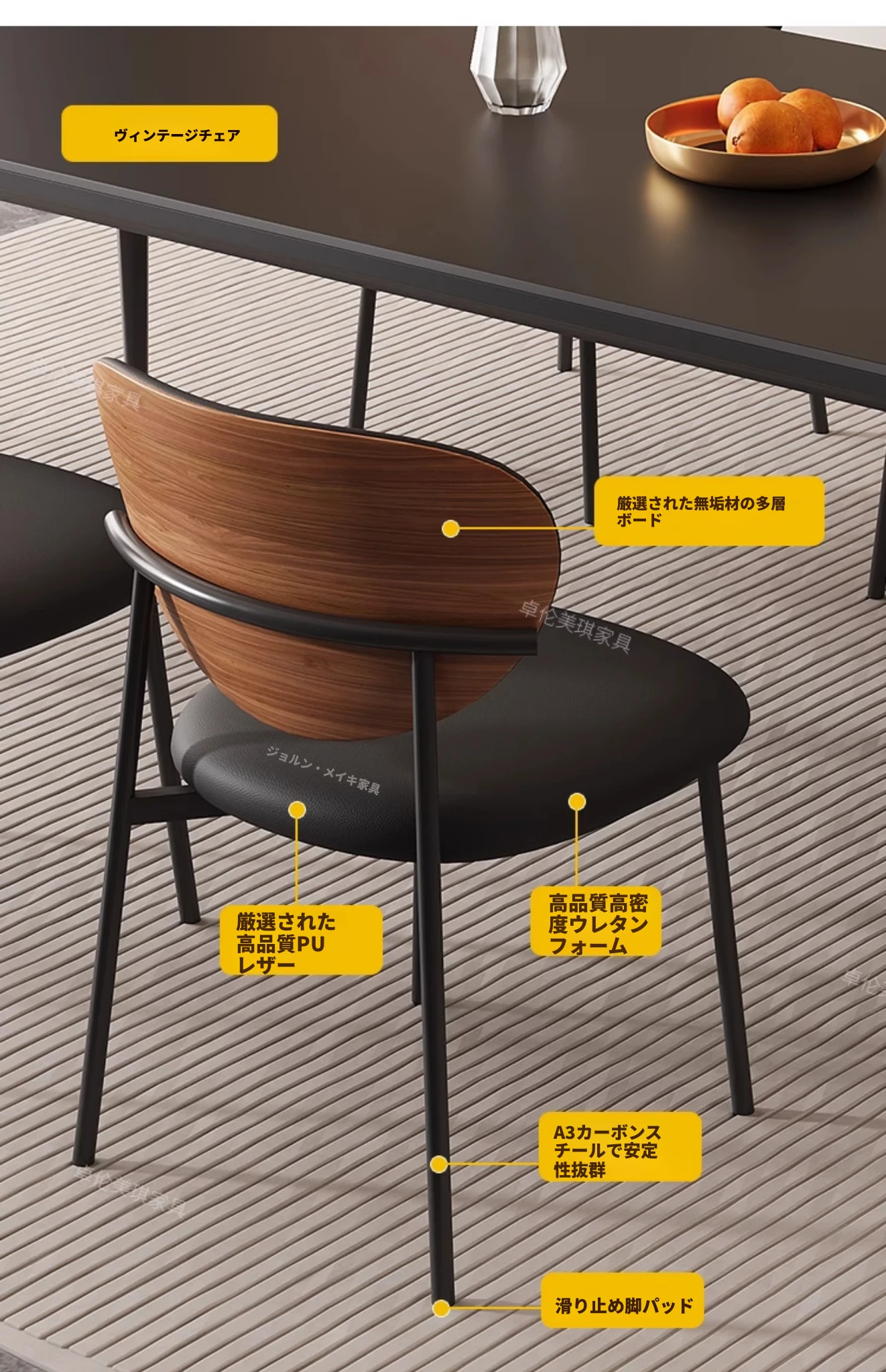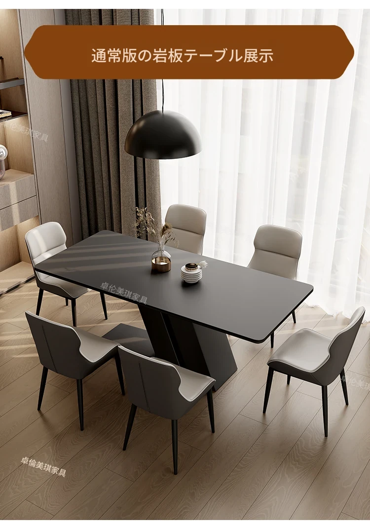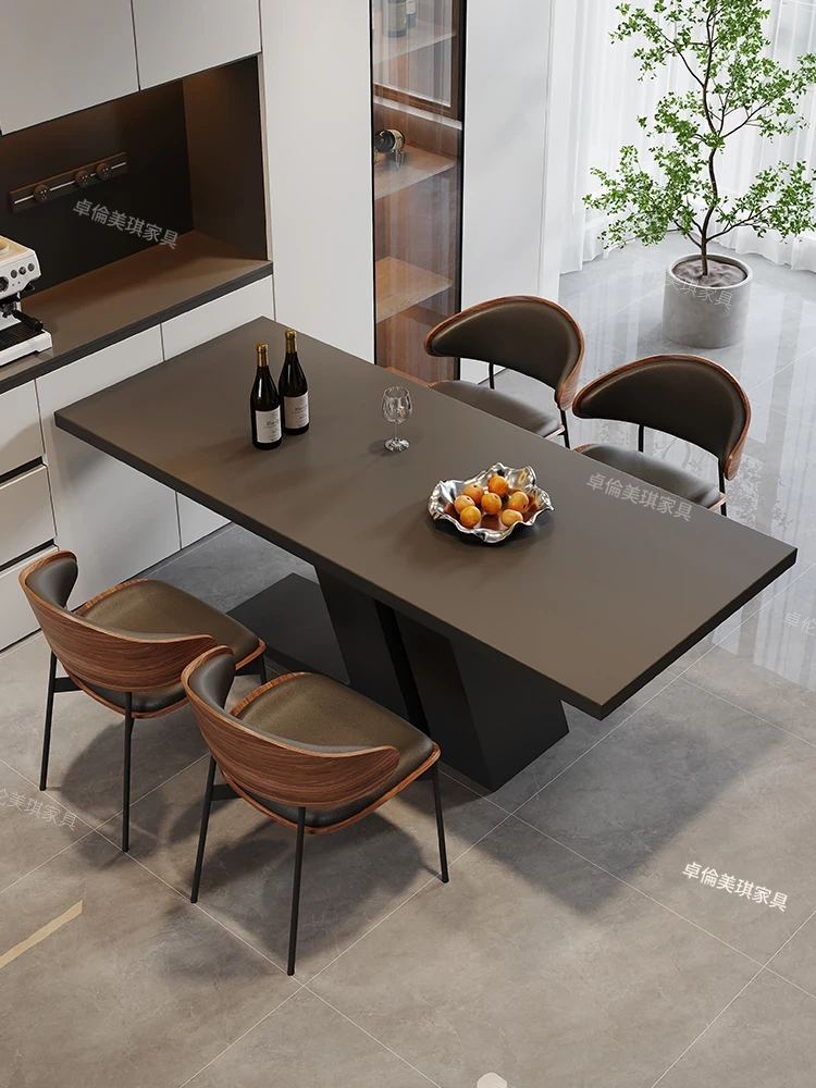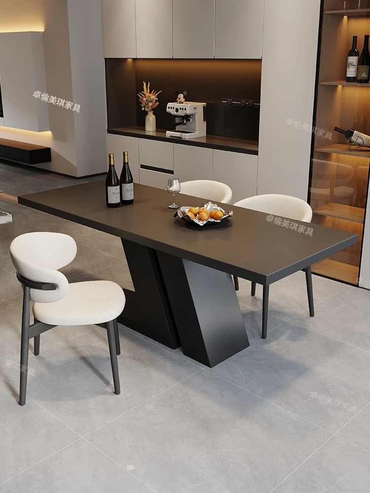 モダンミニマリストデザインの純黒スレートダイニングテーブルセット - ヴィンテージ侘寂風の魅力を感じる、シンプルで洗練された家庭用テーブル。おしゃれな空間を演出します!