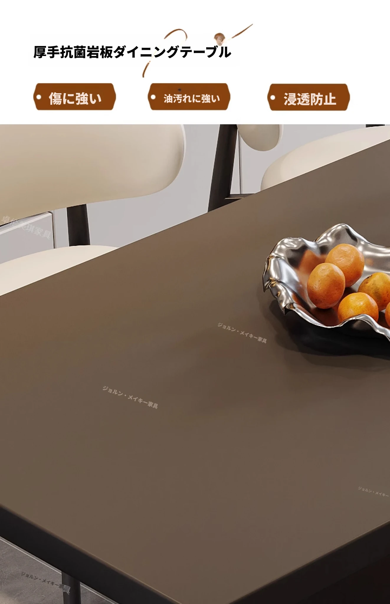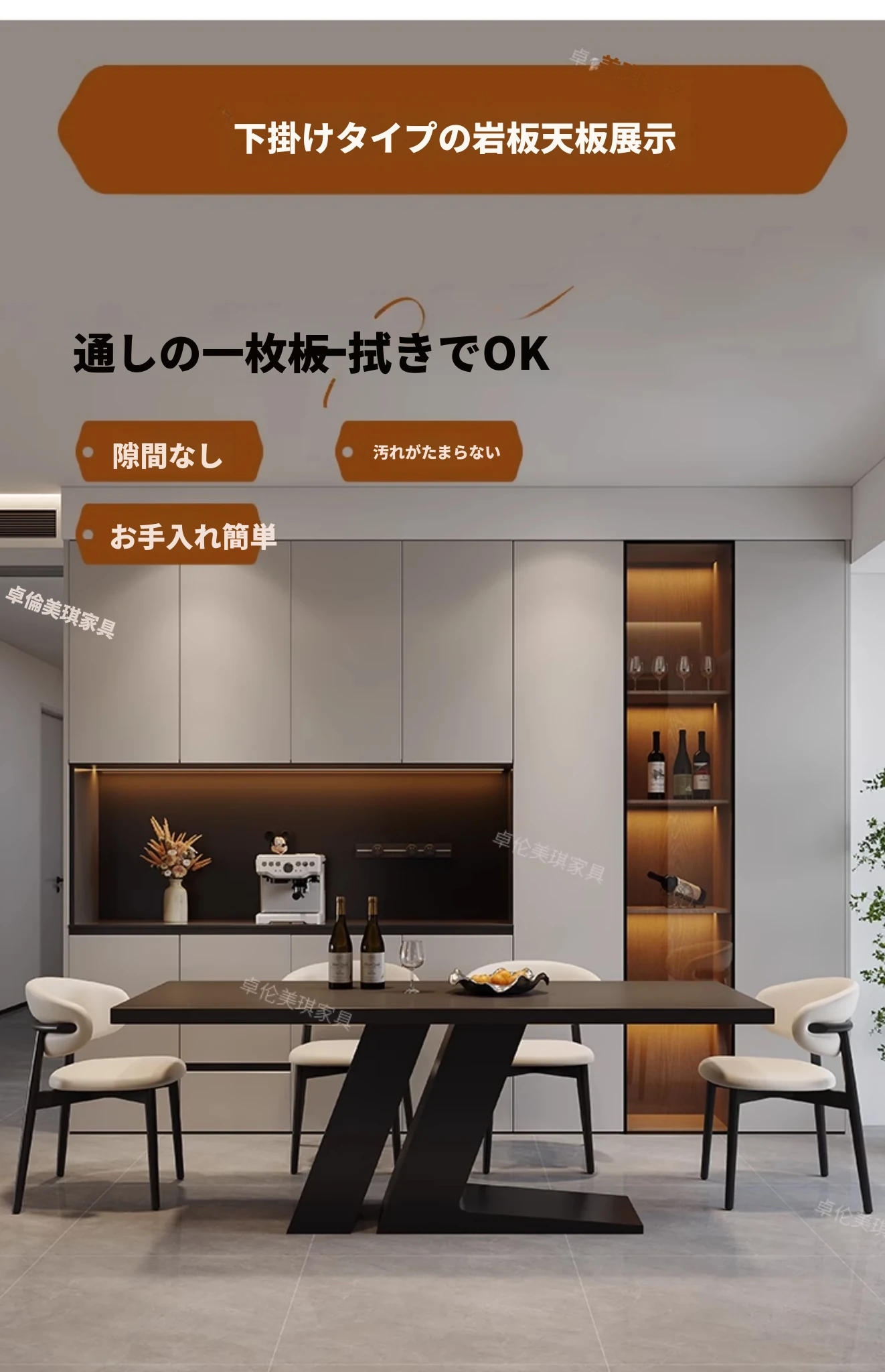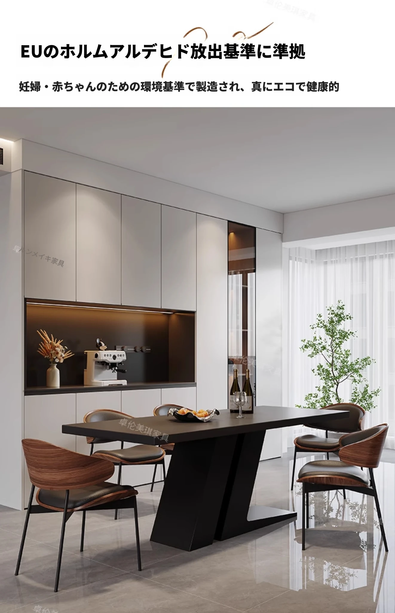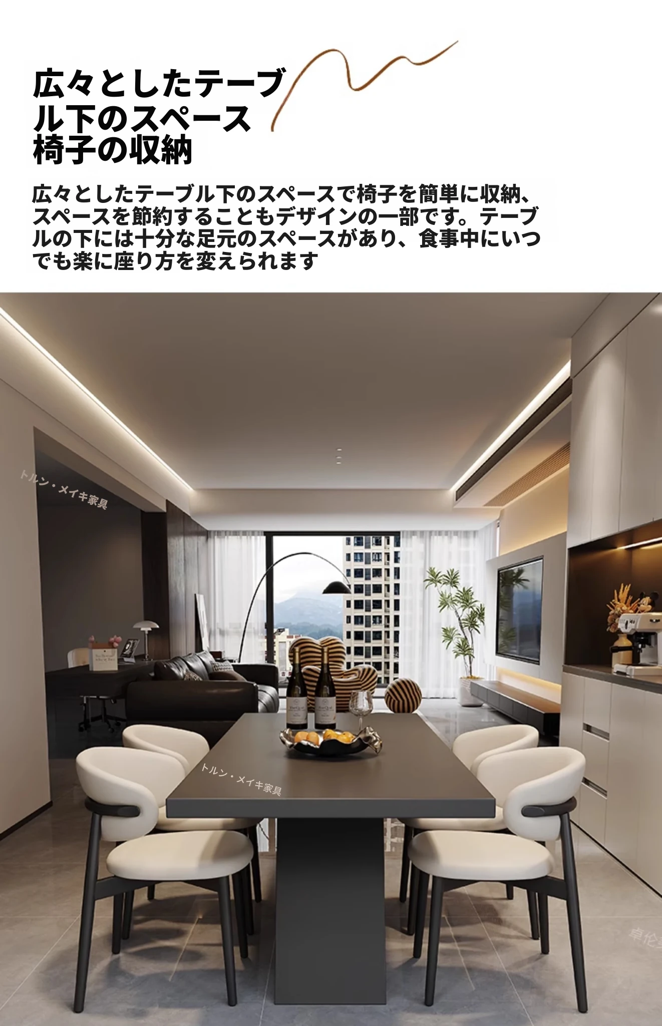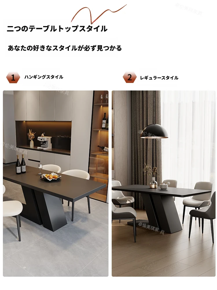 モダンミニマリストデザインの純黒スレートダイニングテーブルセット - ヴィンテージ侘寂風の魅力を感じる、シンプルで洗練された家庭用テーブル。おしゃれな空間を演出します!