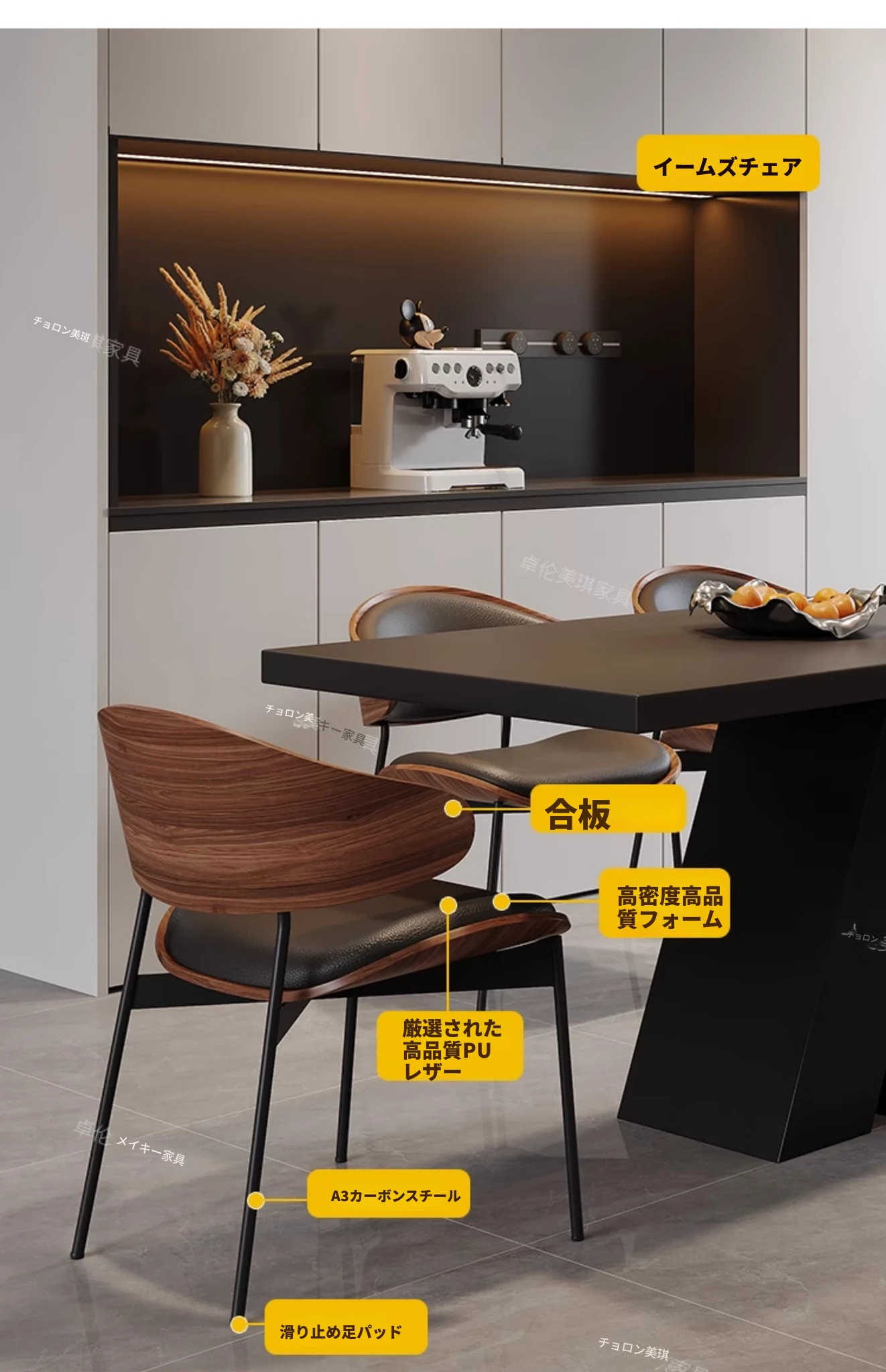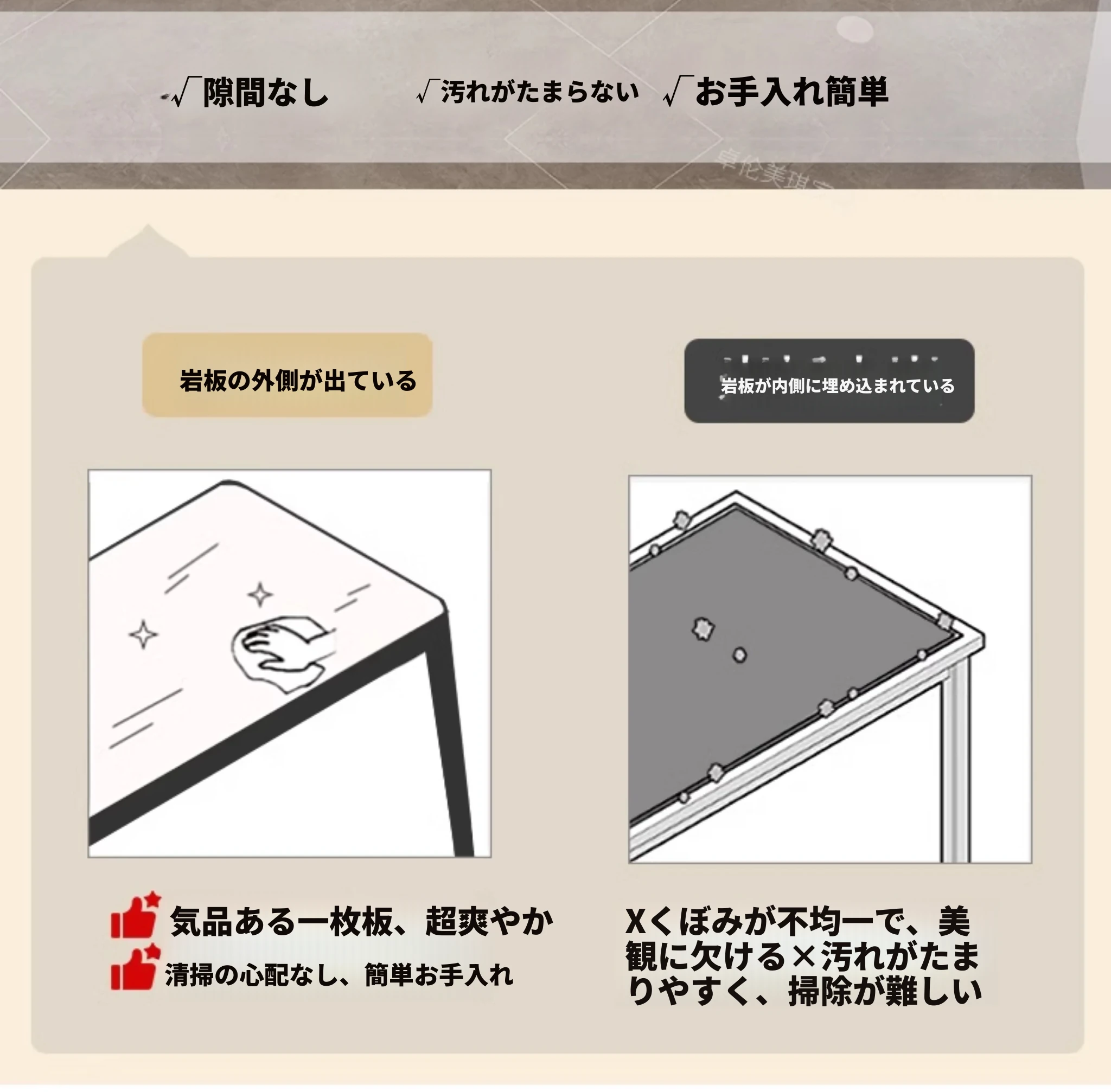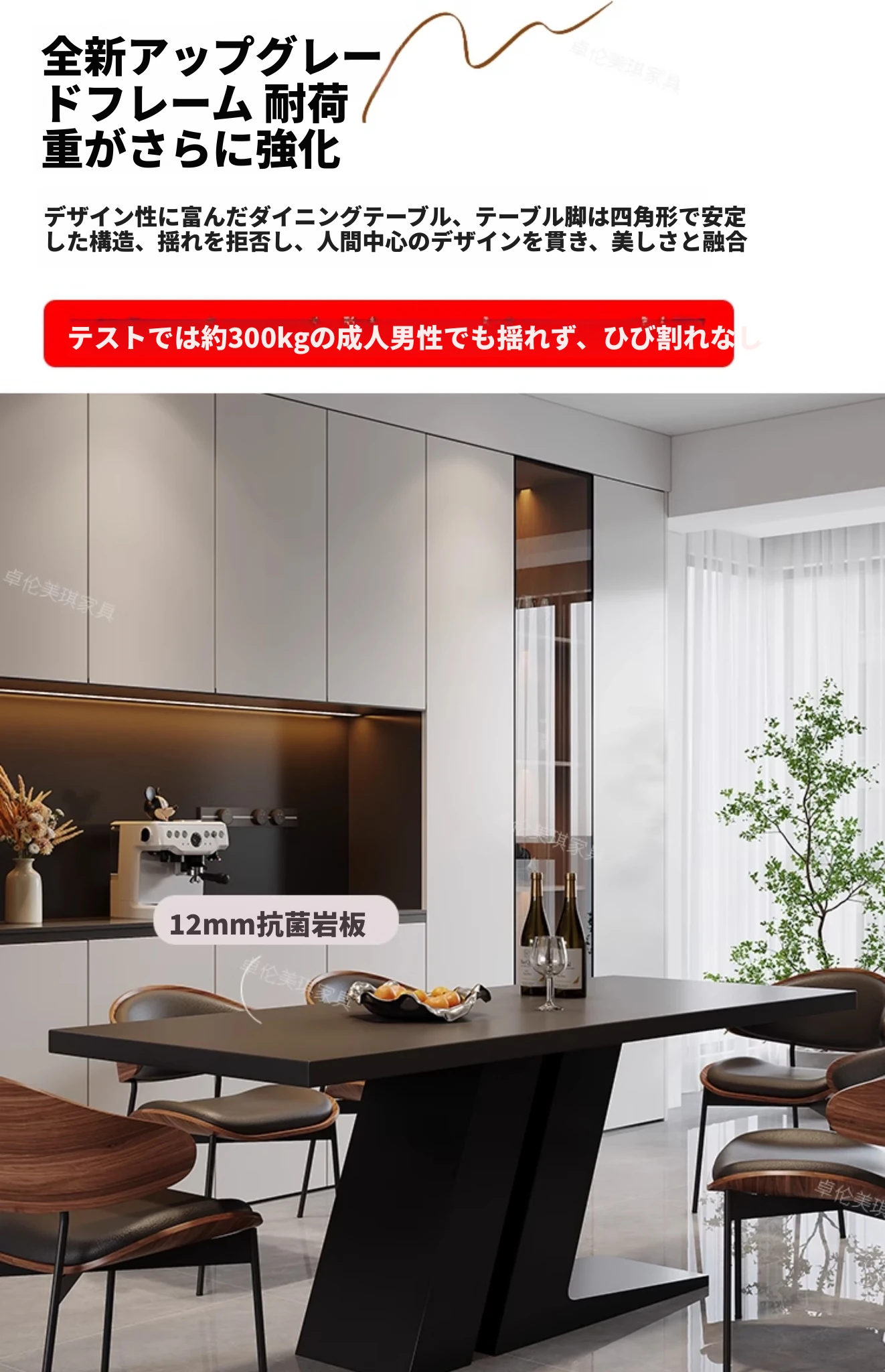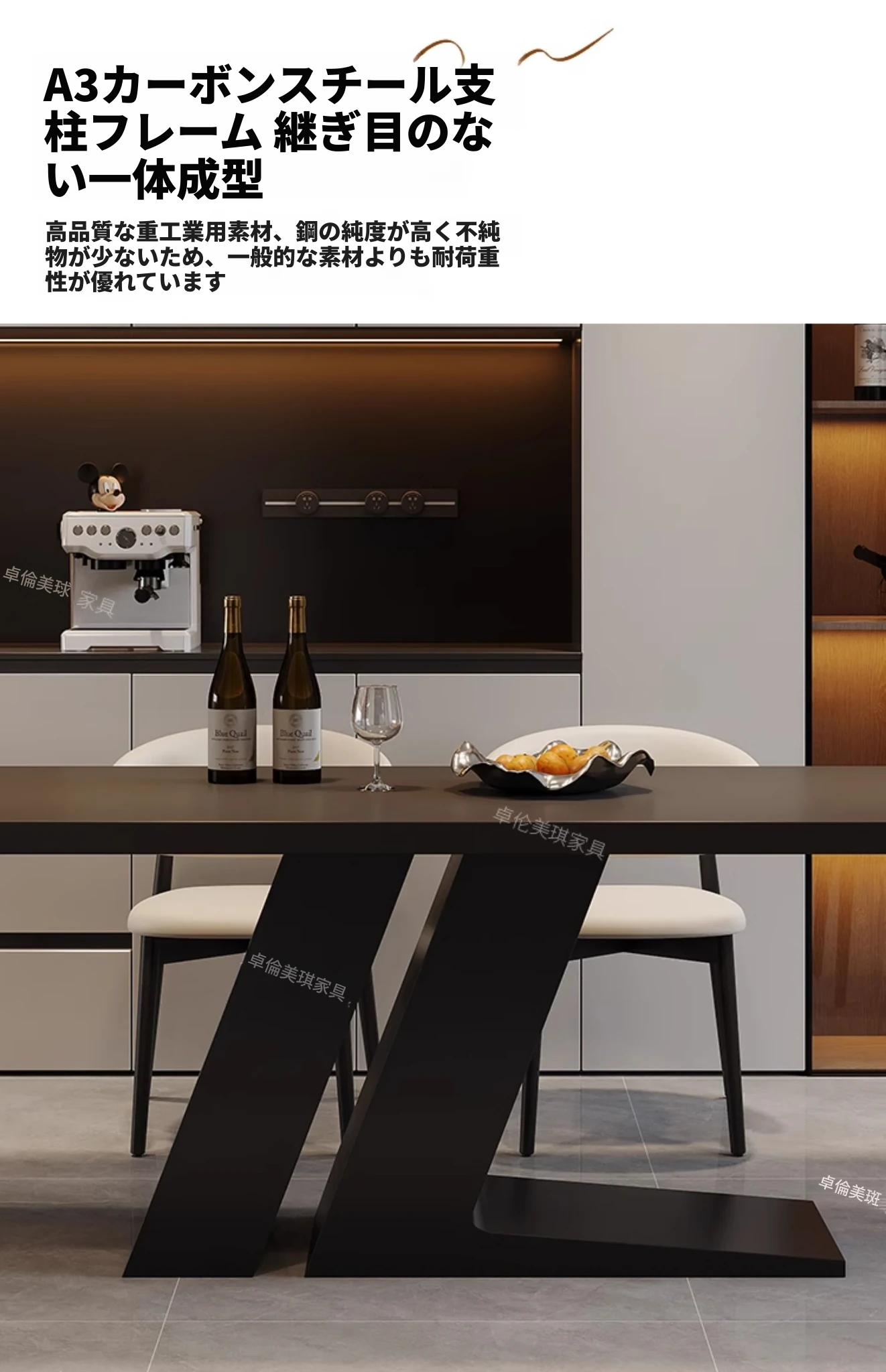 モダンミニマリストデザインの純黒スレートダイニングテーブルセット - ヴィンテージ侘寂風の魅力を感じる、シンプルで洗練された家庭用テーブル。おしゃれな空間を演出します!