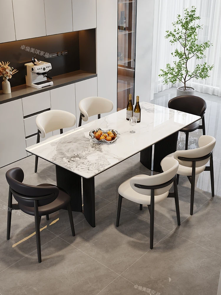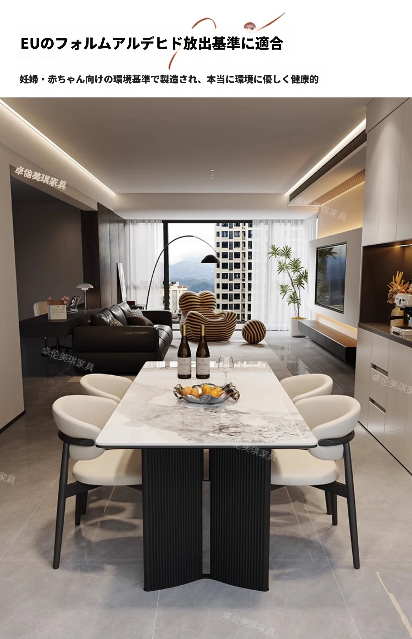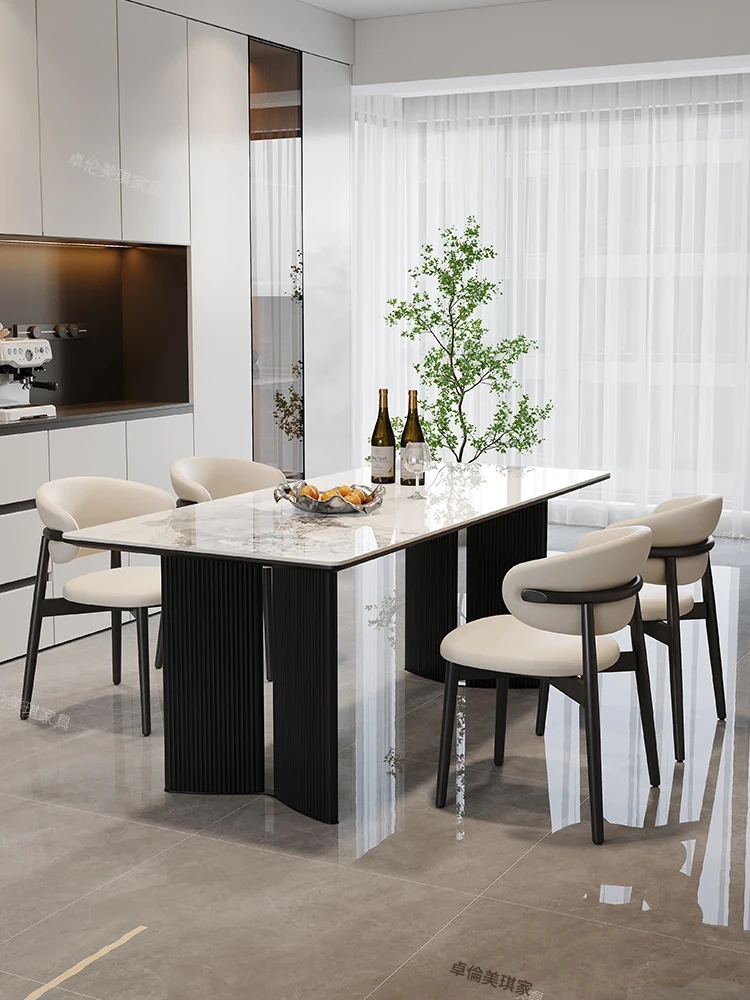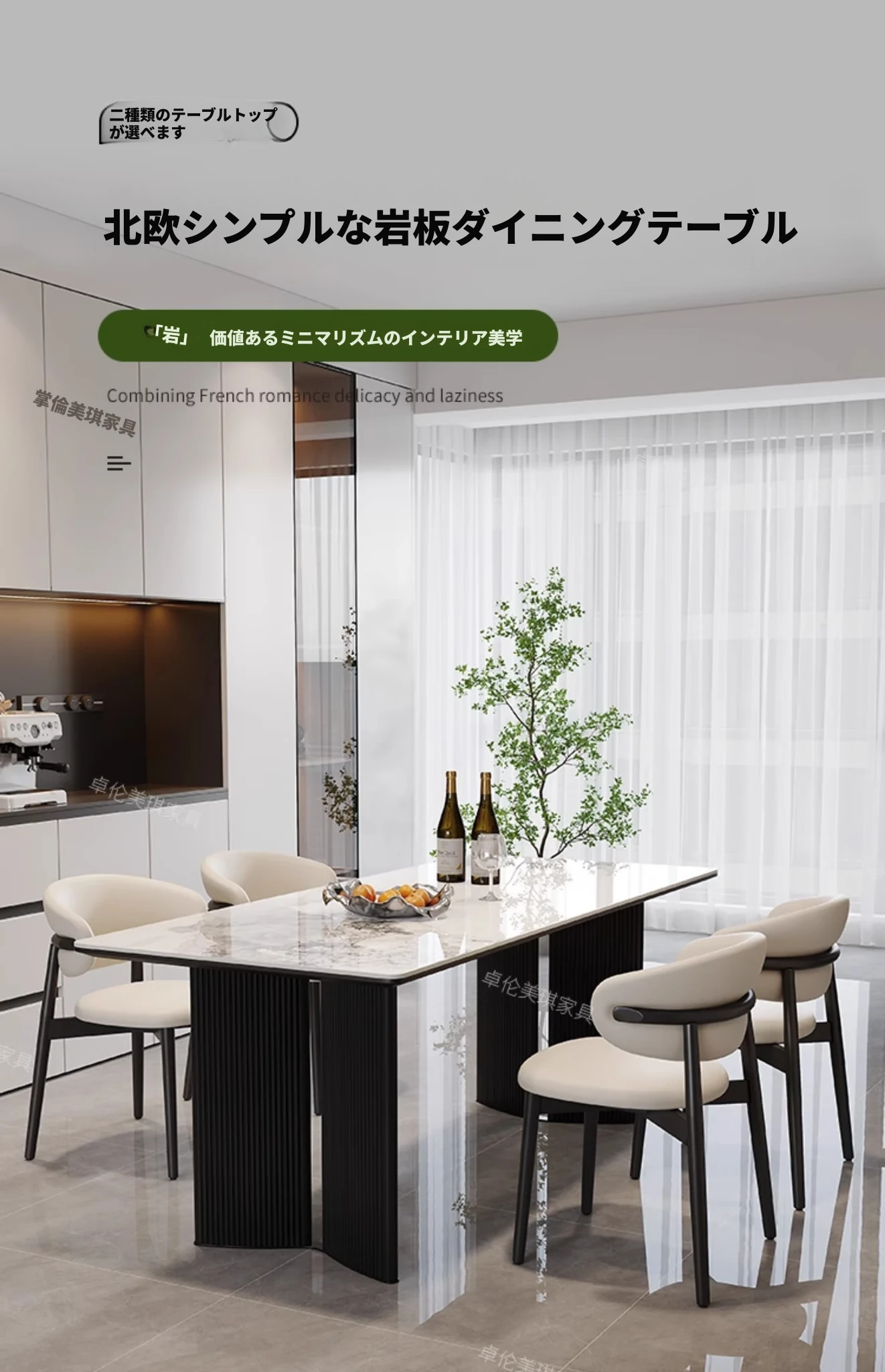 2024年最新デザイン!モダンでシンプルな軽奢岩板ダイニングテーブル&チェアセット。小型住宅に最適な長方形テーブルで、スタイリッシュな空間を演出します!