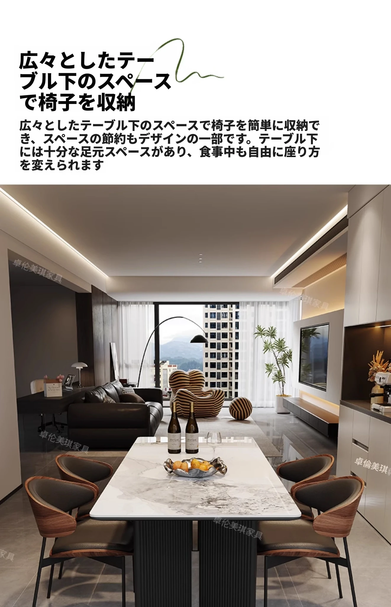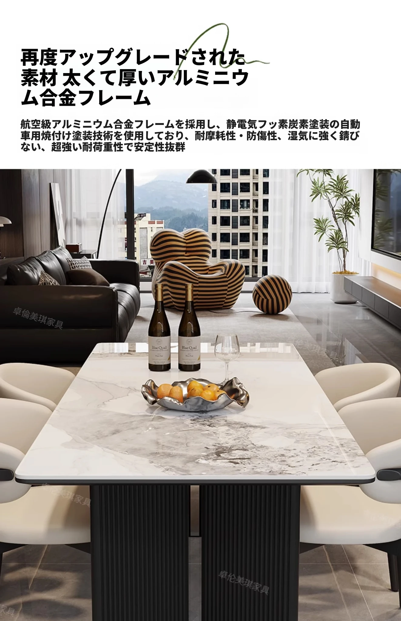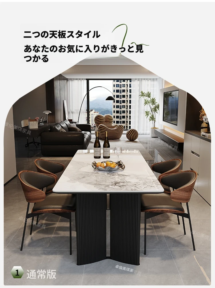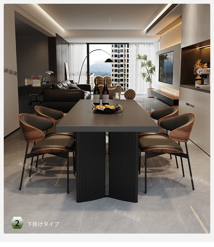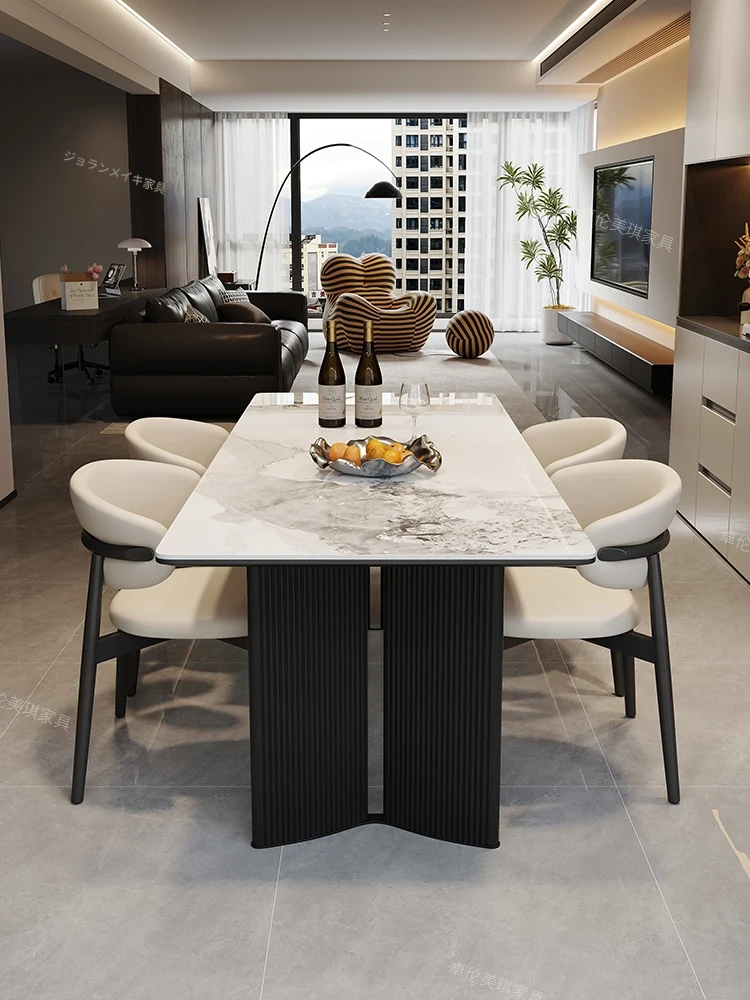 2024年最新デザイン!モダンでシンプルな軽奢岩板ダイニングテーブル&チェアセット。小型住宅に最適な長方形テーブルで、スタイリッシュな空間を演出します!