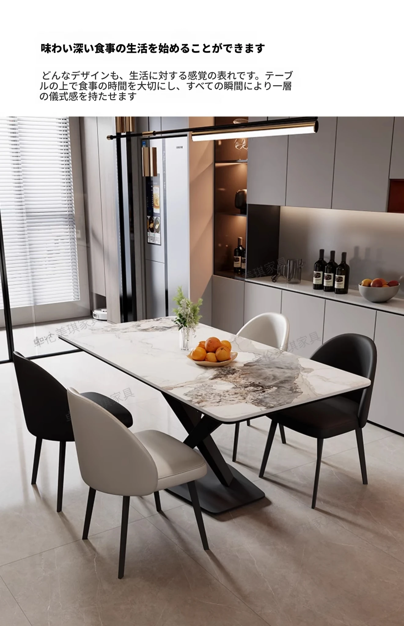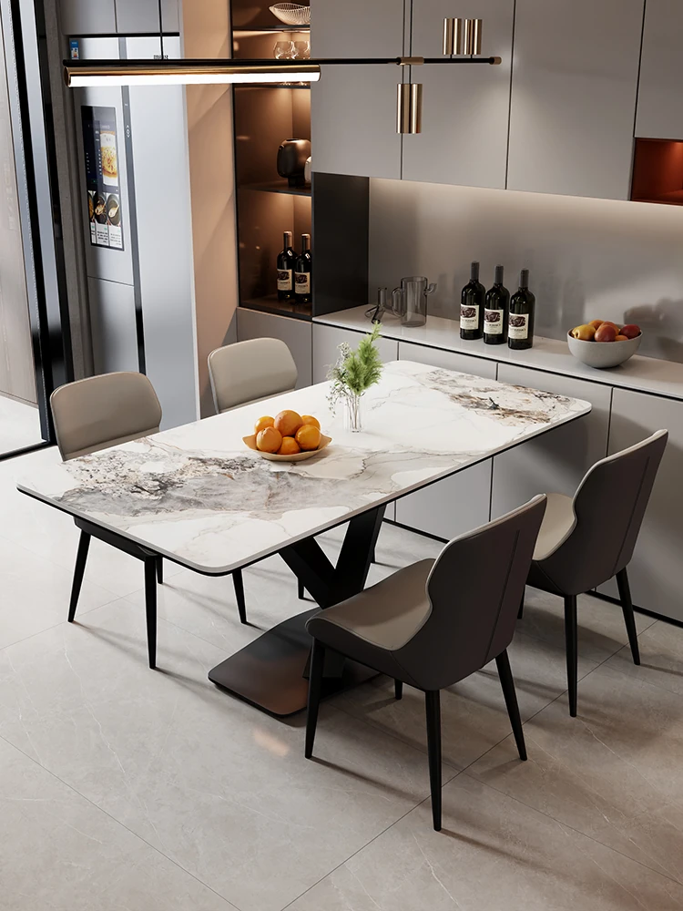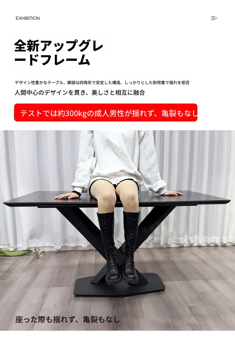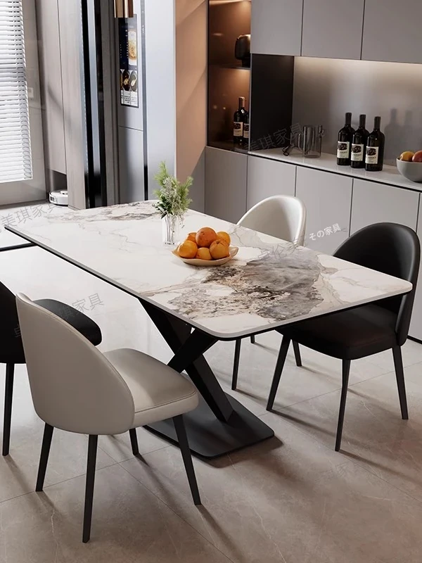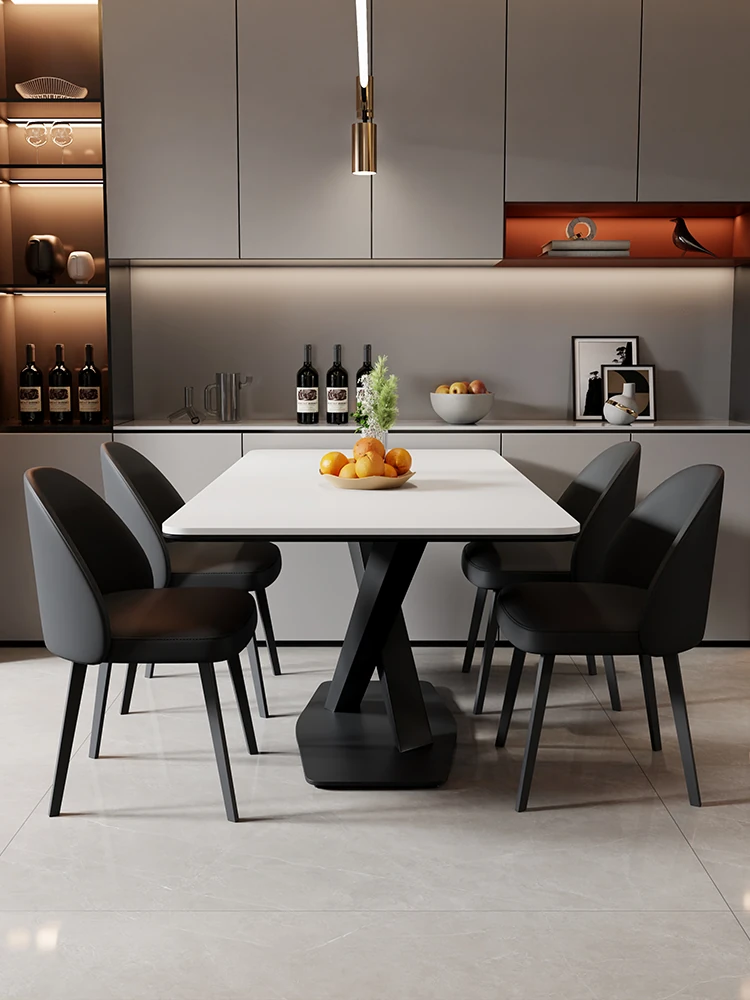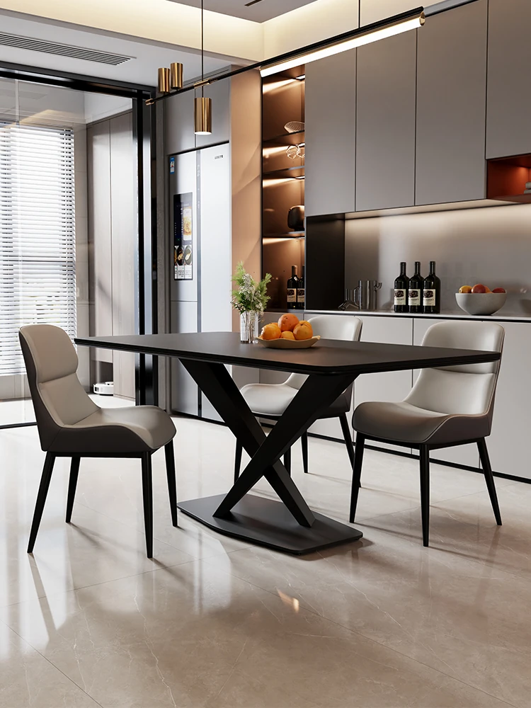 光沢のあるストーンテーブル現代的なラグジュアリーシンプルデザイン家庭用マットな黒色クロス脚長方形ダイニングテーブル - スタイリッシュな食事空間を演出!