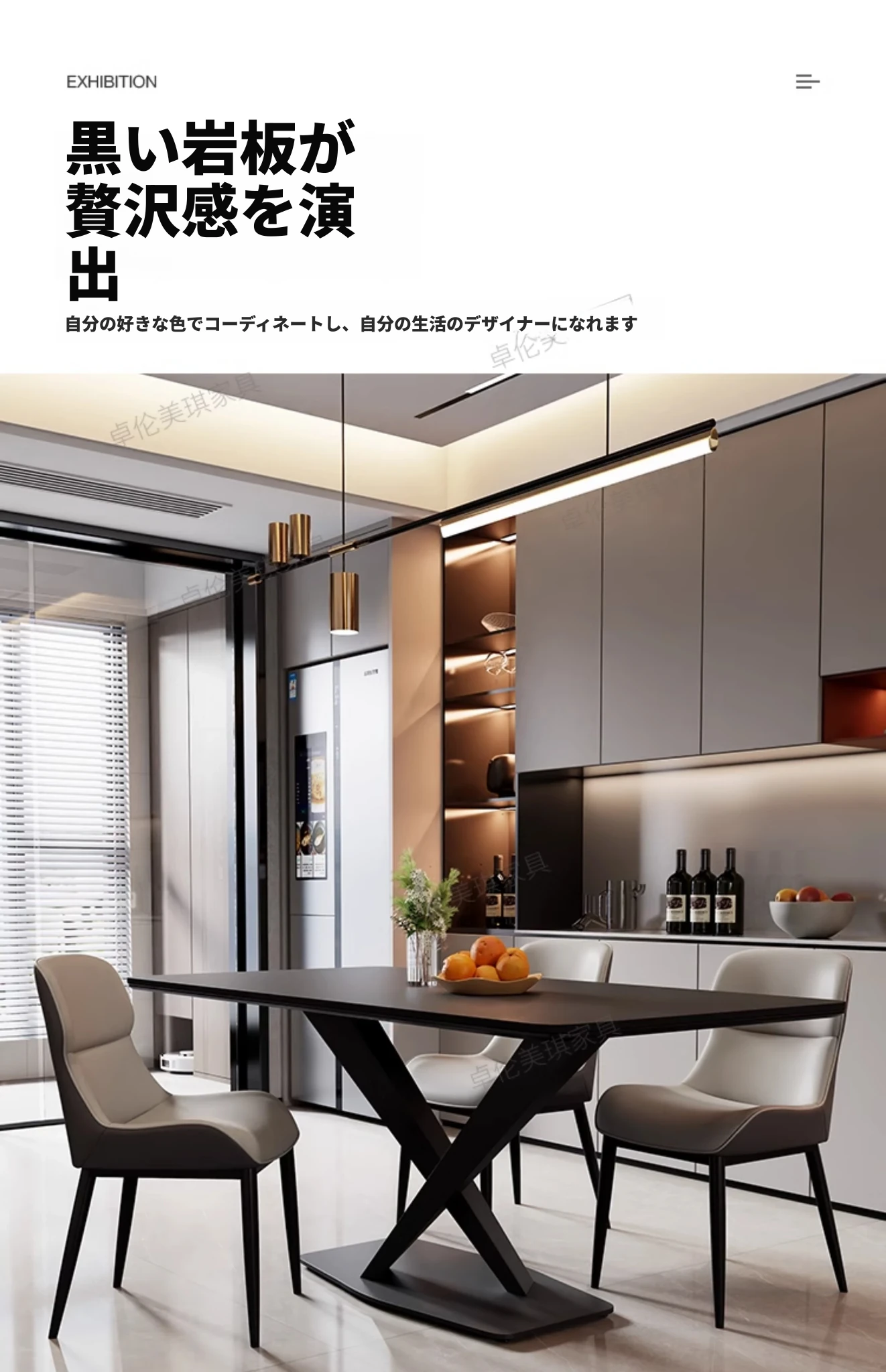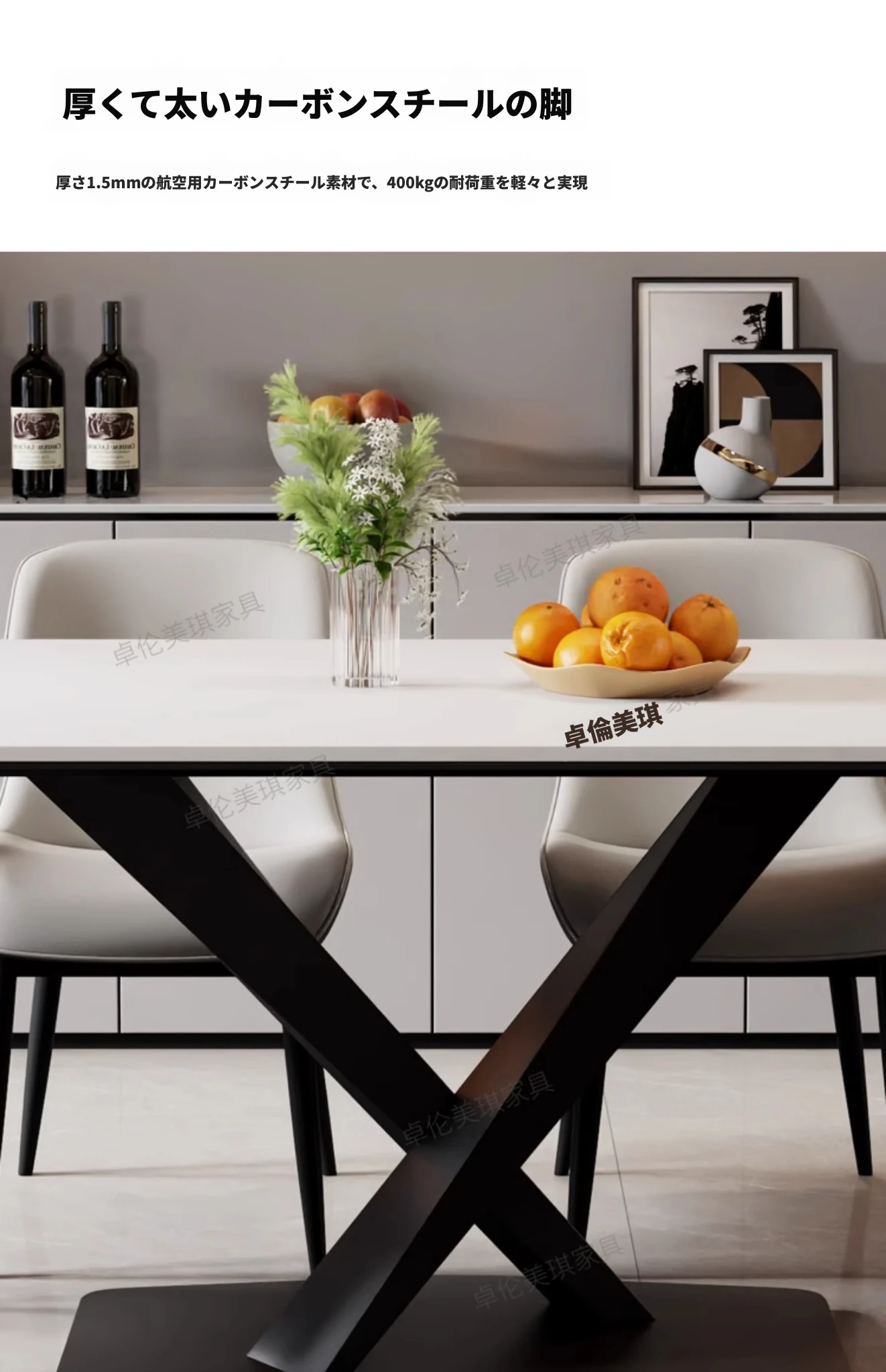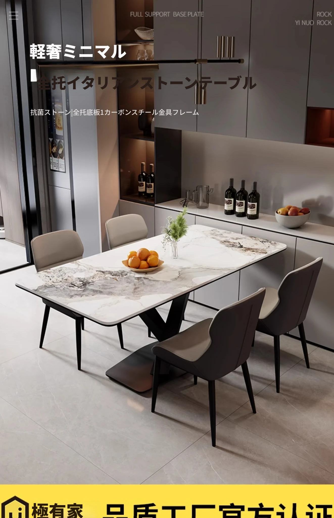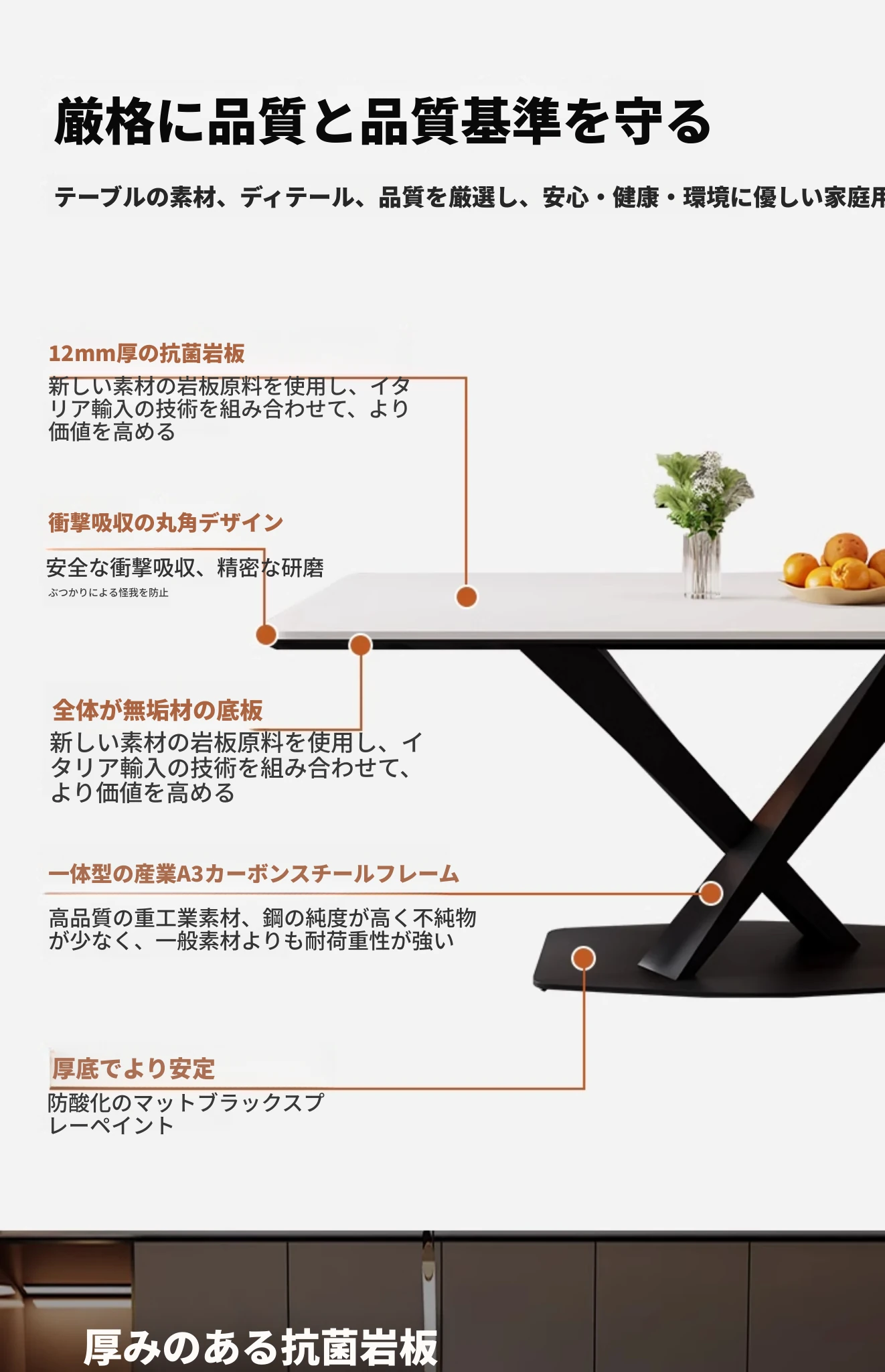 光沢のあるストーンテーブル現代的なラグジュアリーシンプルデザイン家庭用マットな黒色クロス脚長方形ダイニングテーブル - スタイリッシュな食事空間を演出!