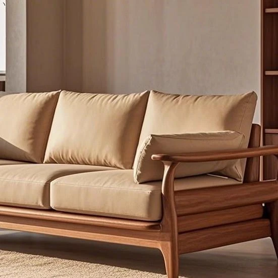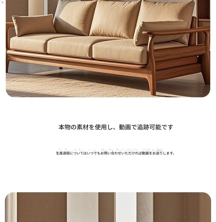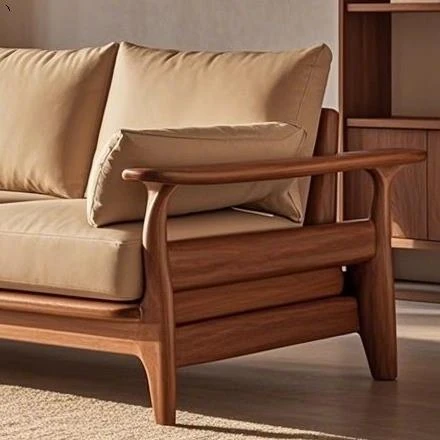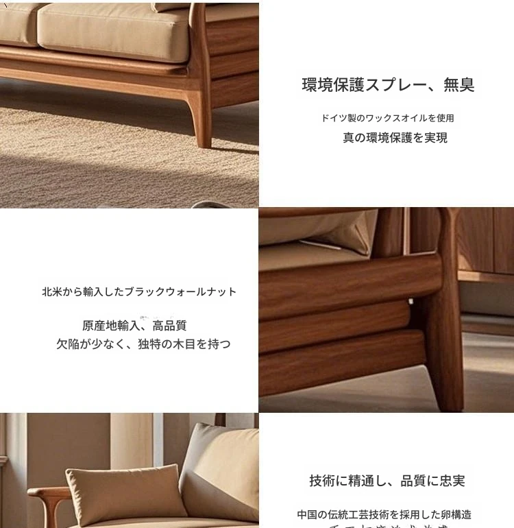 新中式デザイン 北米産ブラックウォールナット無垢材ソファセット モダンでシンプルなラグジュアリーリビング用直線型リラックスソファ