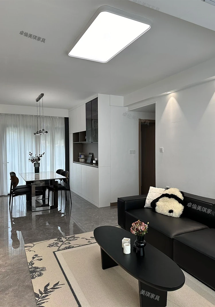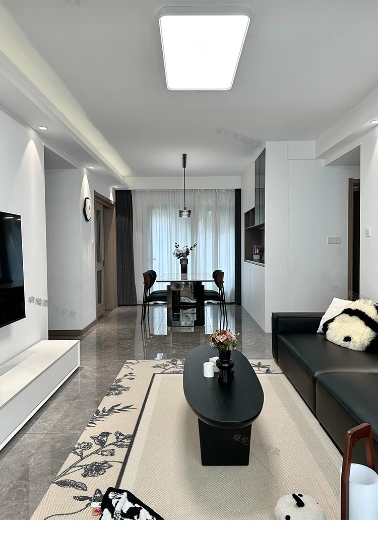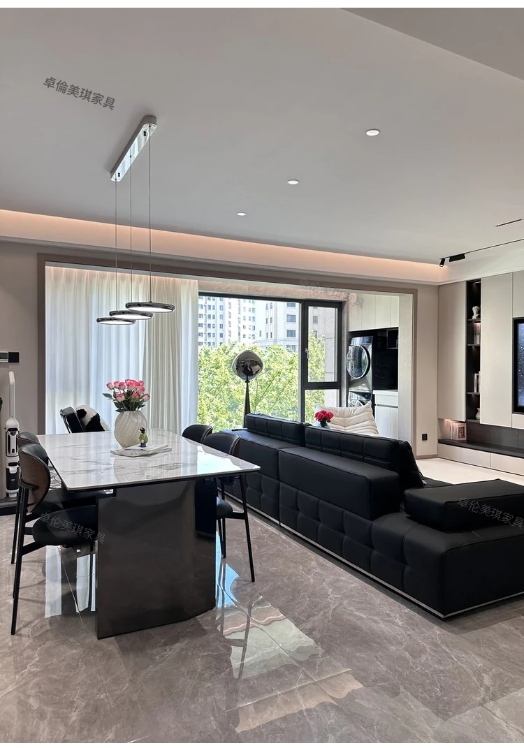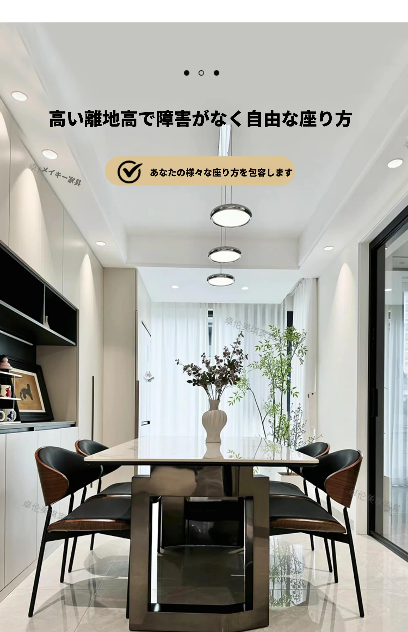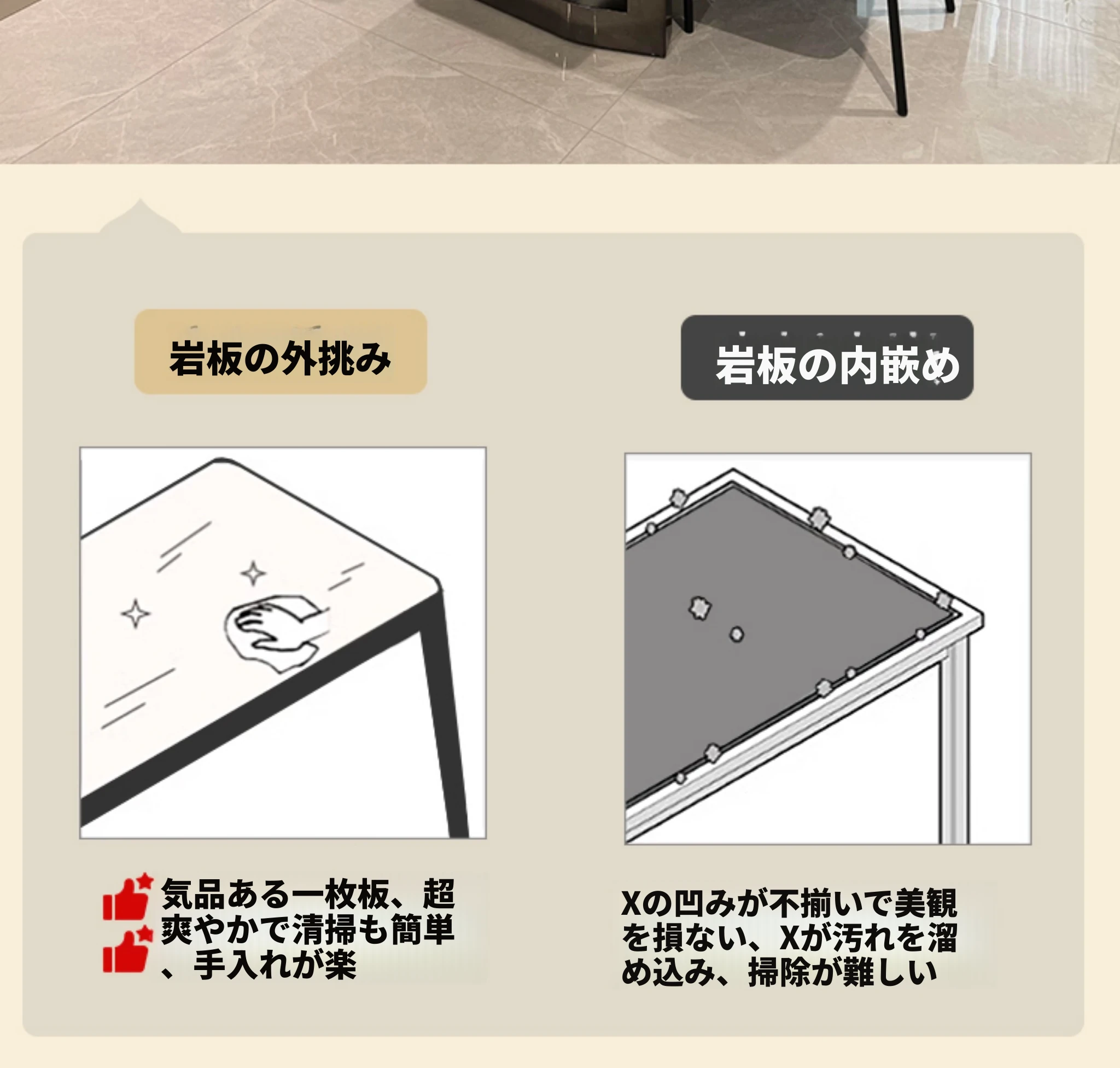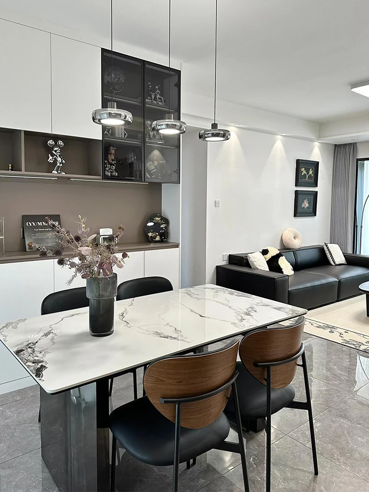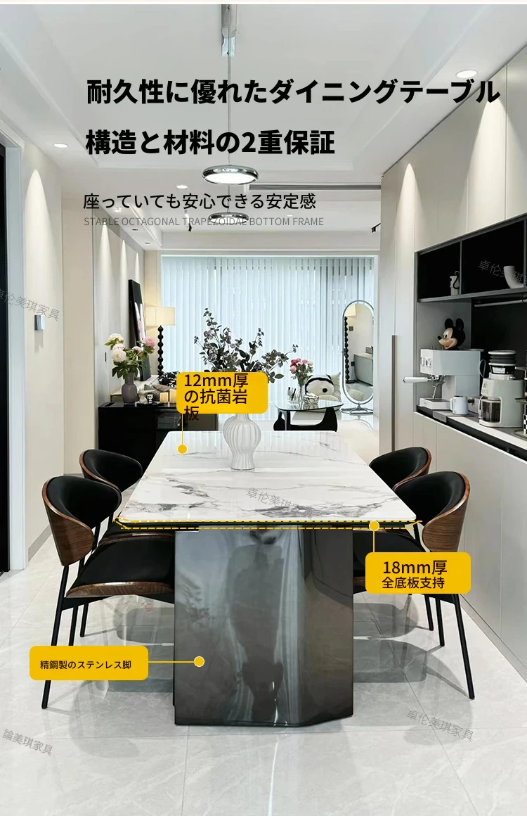 モダンでシンプルな軽奢岩板ダイニングテーブルセット - ステンレス製で、小型住宅にも最適な長方形テーブルとチェアのコンビネーション。洗練されたデザインで、心地よい食事のひとときを提供します。
