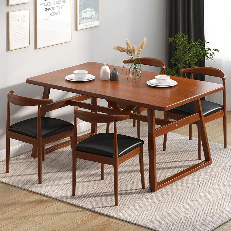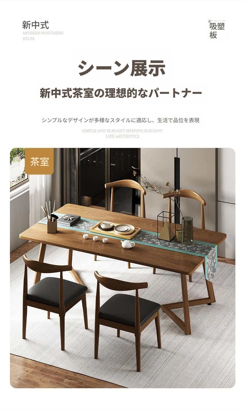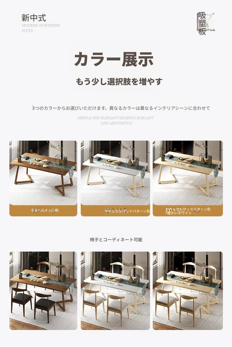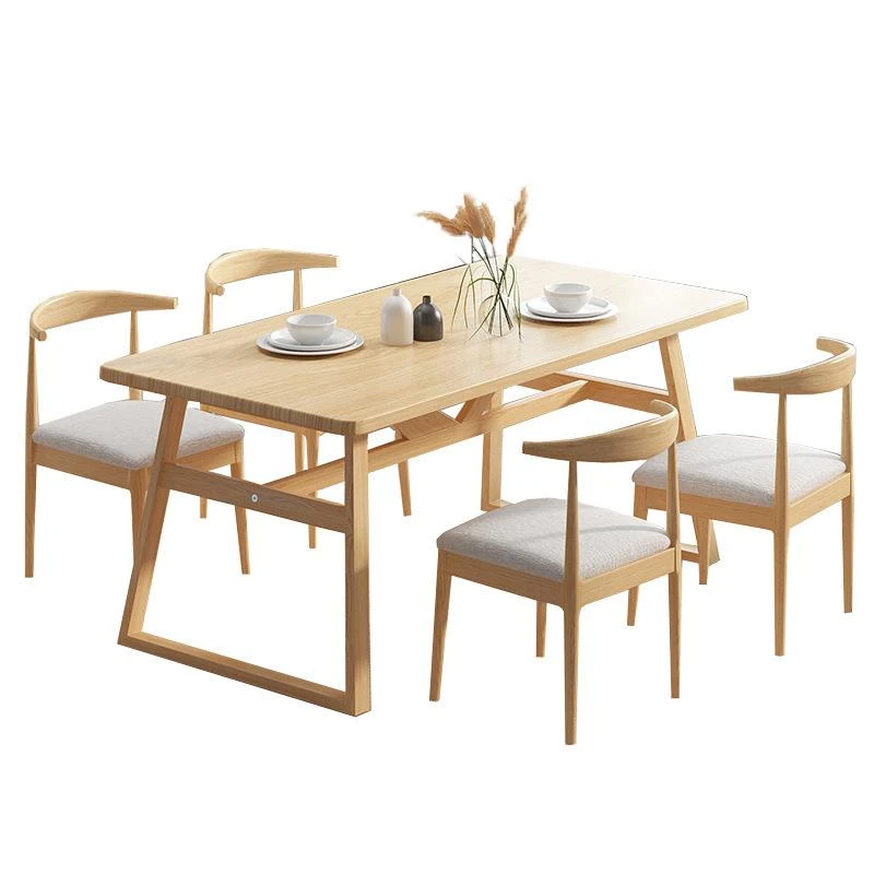 北欧スタイルのシンプルでモダンな長方形ダイニングテーブルセット - おしゃれな無垢材の脚付き、狭いスペースにもぴったりなコンパクトデザイン!家庭での食事を特別なひとときに。