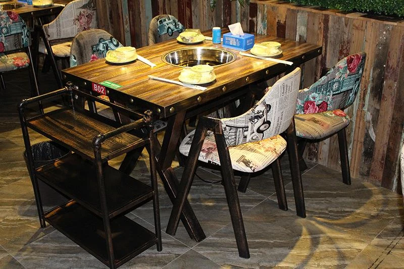 テーマ火鍋テーブル 電磁炉で焼肉&串串香 一体型レストラン用テーブルセット 長方形デザインでおしゃれな食事空間を提供!お客様の特別なひとときを演出します。