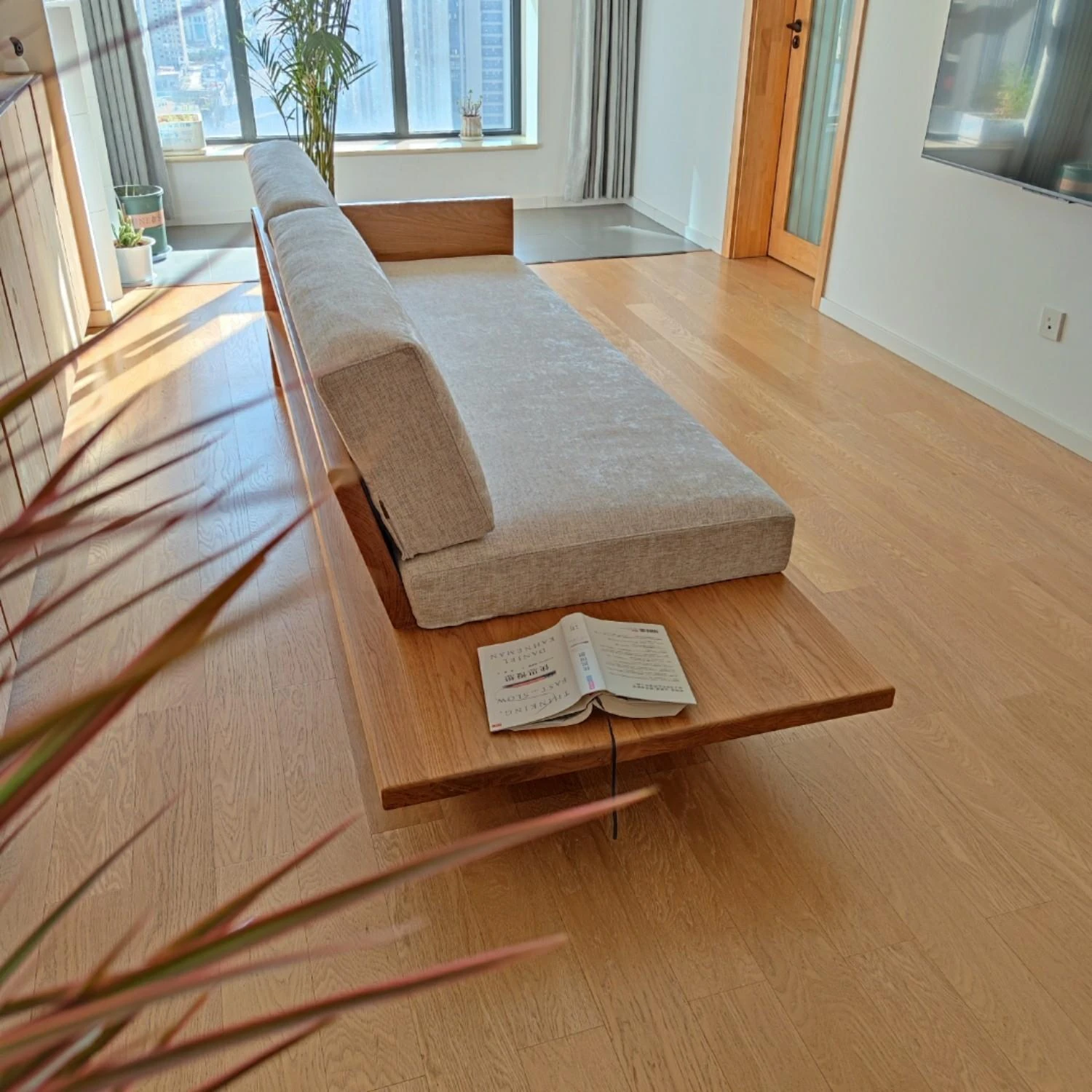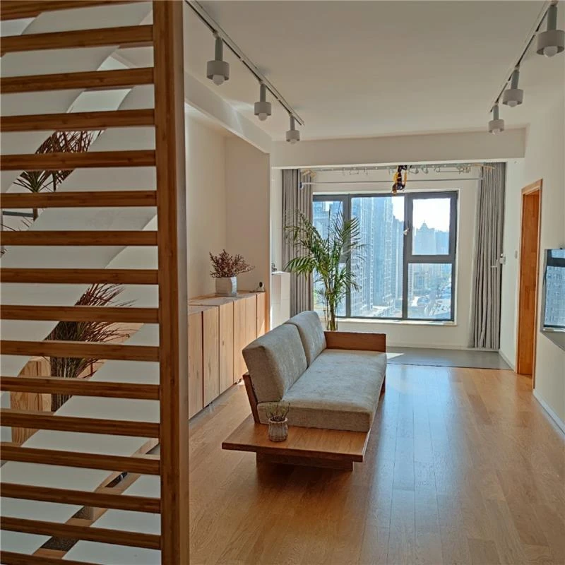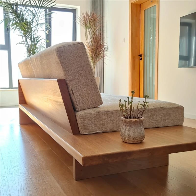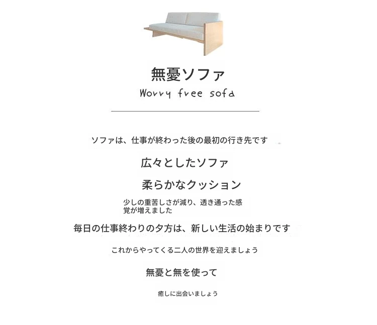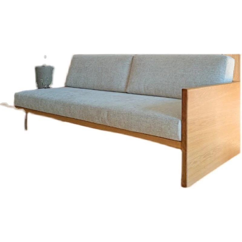 北欧スタイルの小型日式無垢材ソファー - 侘び寂びの風情漂うリビングに最適!洗える布製、民宿にもぴったりなモダン3人掛けコンビネーション。快適さと美しさを兼ね備えた一品!