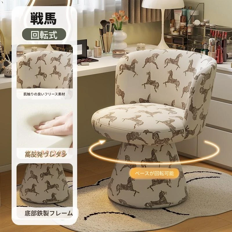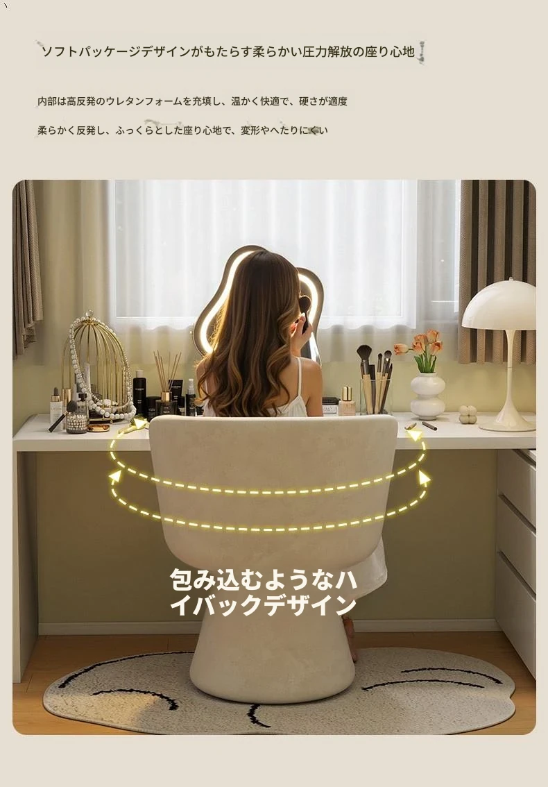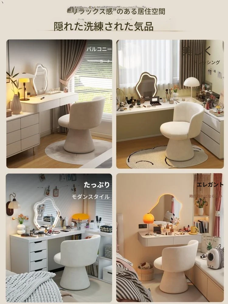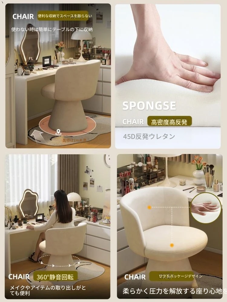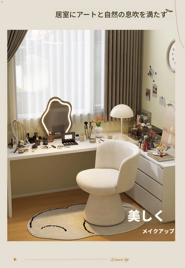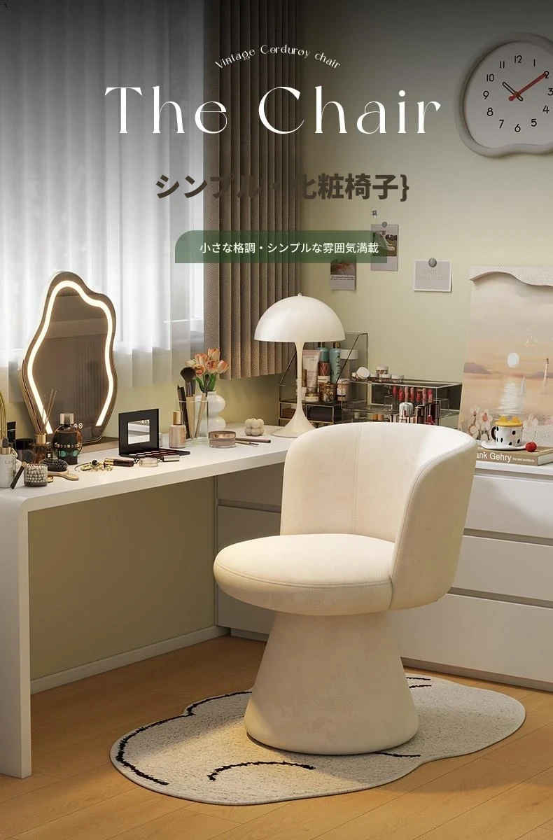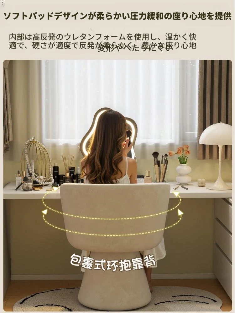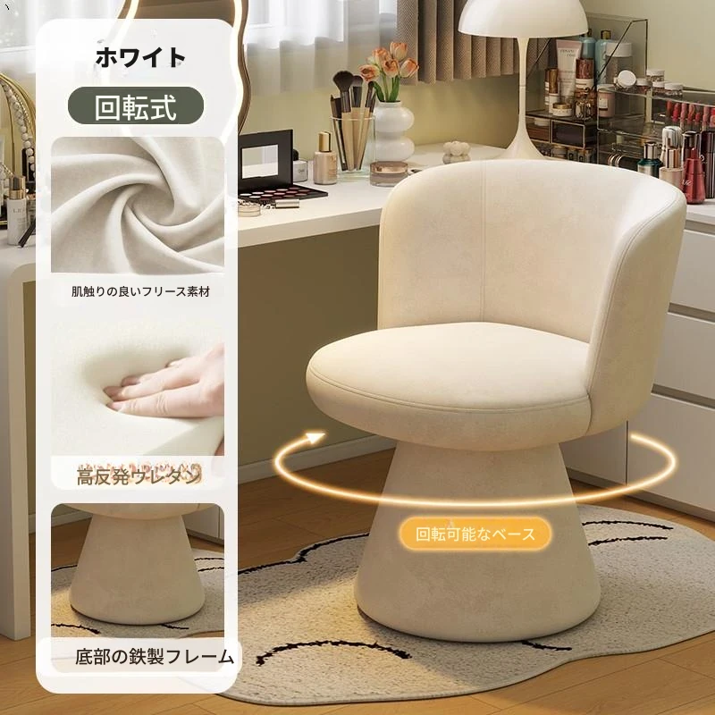 北欧スタイルの回転式メイクアップスツール|リラックスできるデザイン|おしゃれなベッドルームにぴったりのクリーム色ドレッサーチェア!
