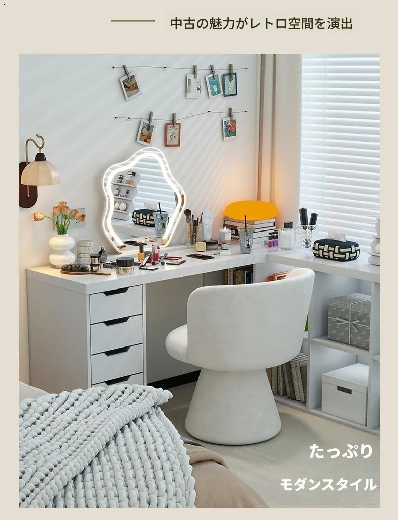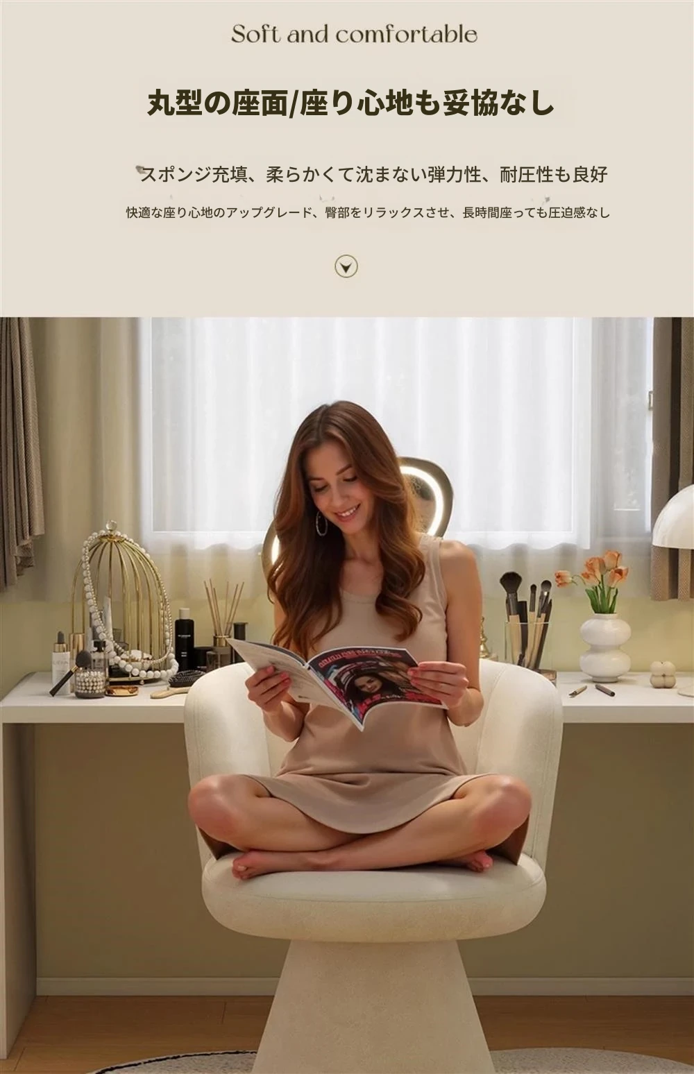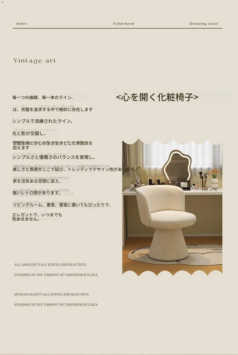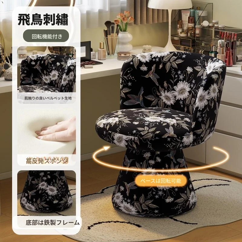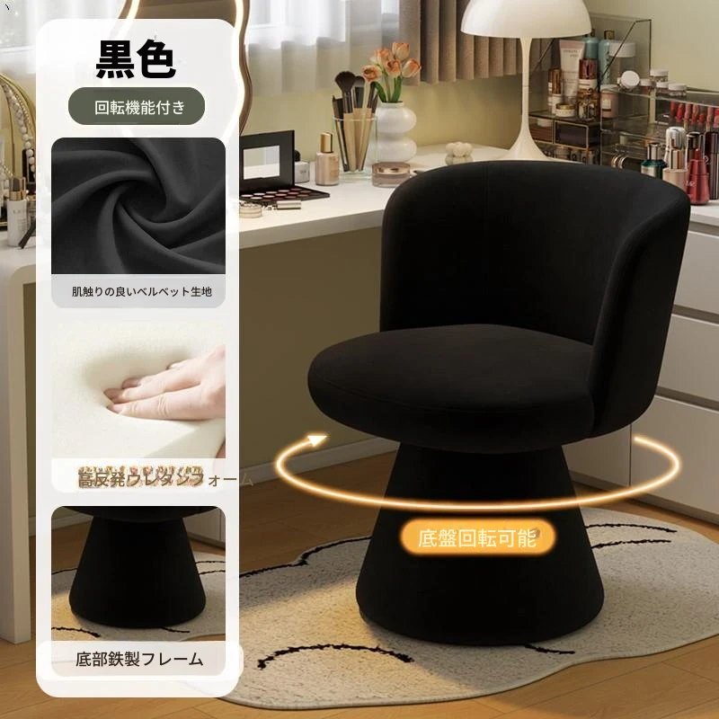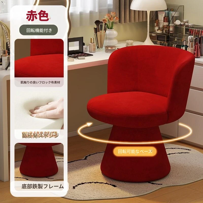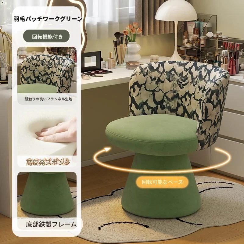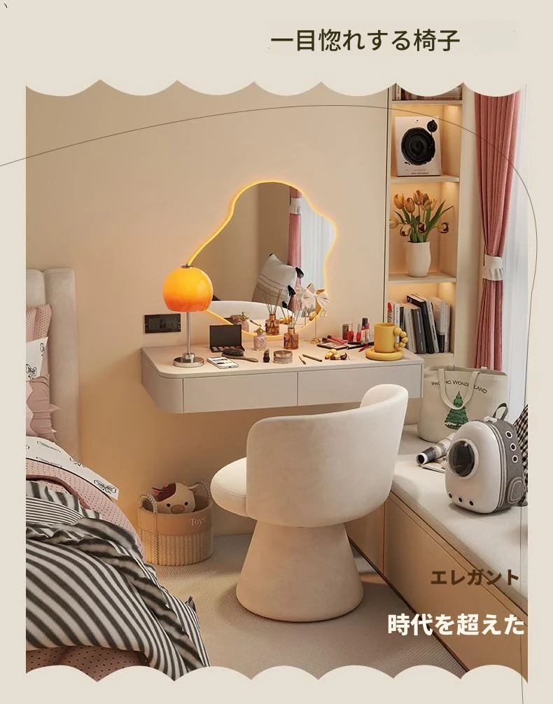 北欧スタイルの回転式メイクアップスツール|リラックスできるデザイン|おしゃれなベッドルームにぴったりのクリーム色ドレッサーチェア!