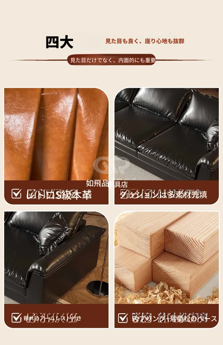 三人位2.1メートル-1メートル幅【ロシア輸入落葉松-レトロオイルワックス猫爪皮】