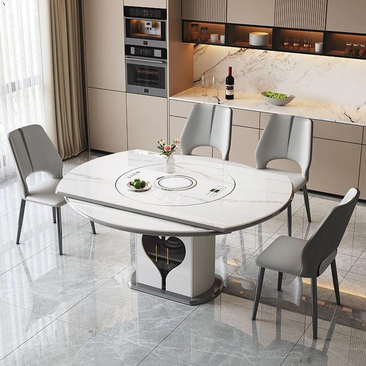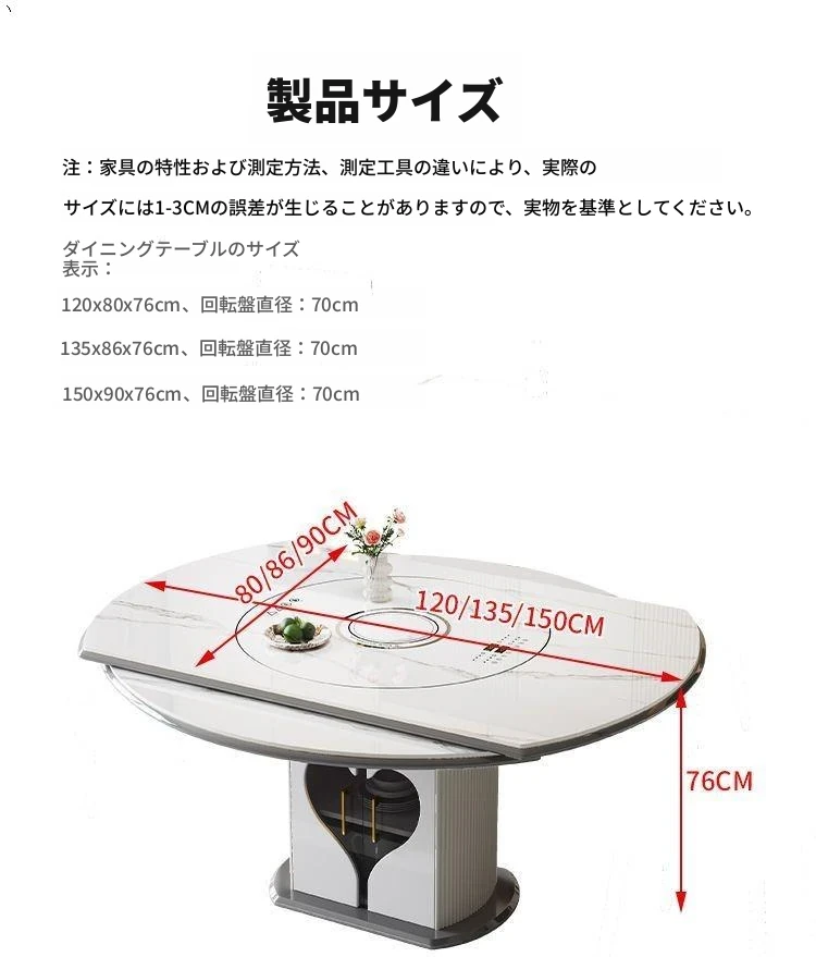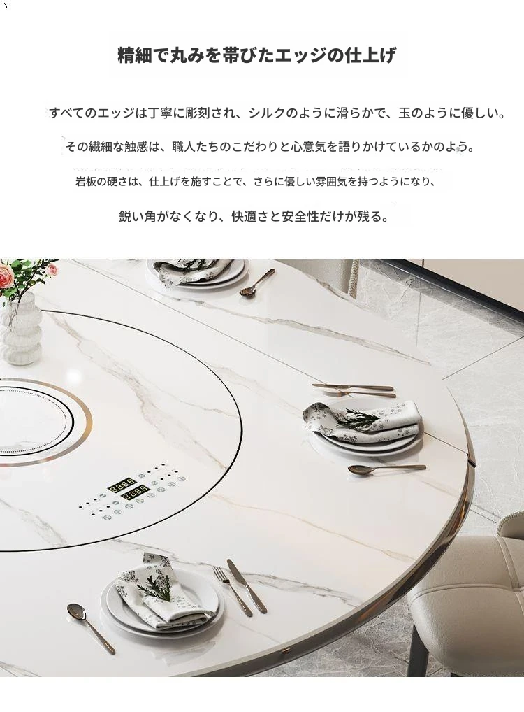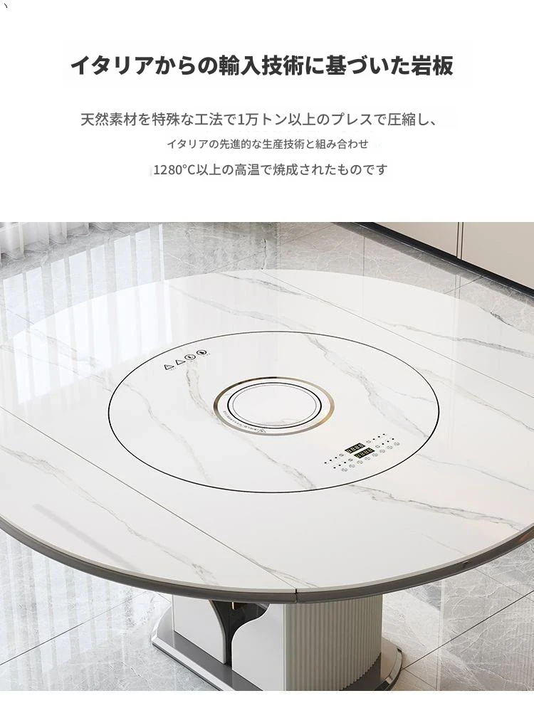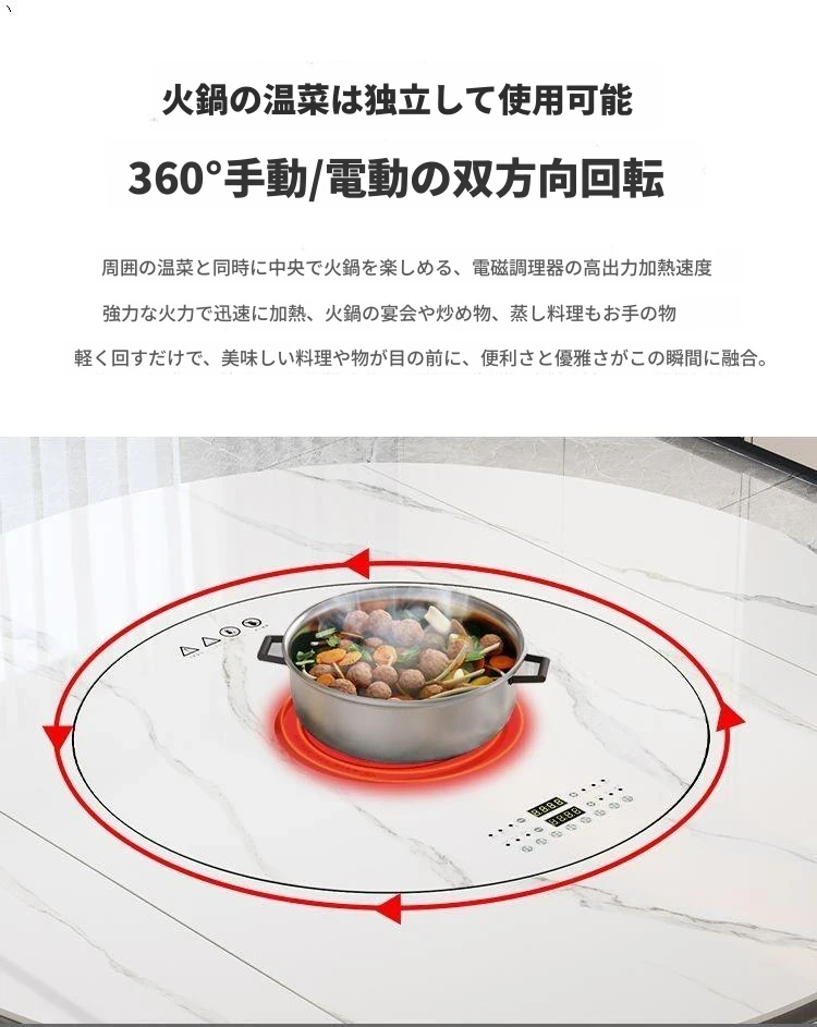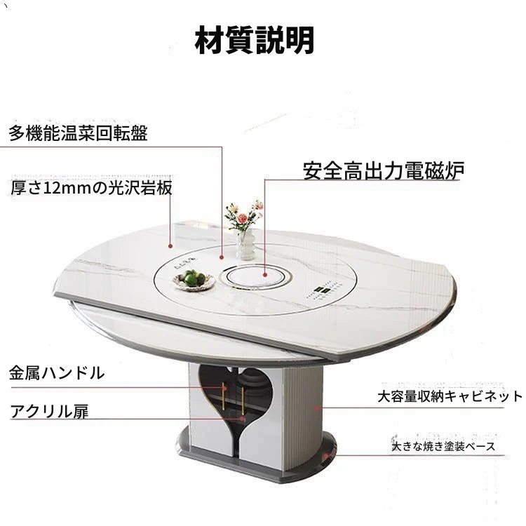 1.35メートル収納キャビネットダイニングテーブル【スマート音声温菜ボードプレゼント】回転式電磁調理器一体