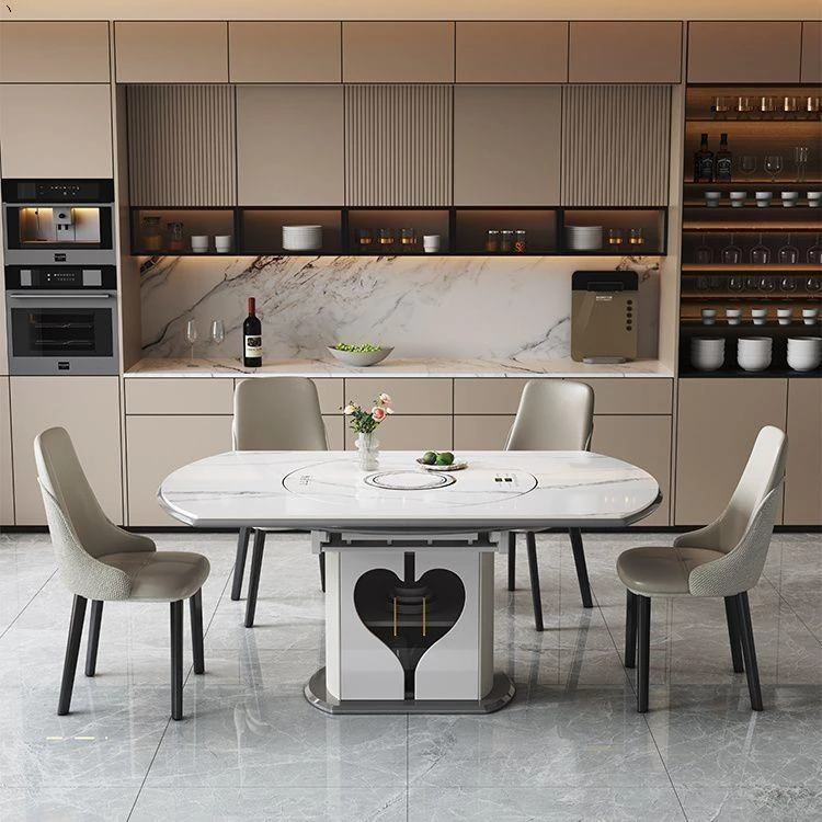 1.5メートル収納キャビネットダイニングテーブル【スマート音声温菜ボードプレゼント】回転式電磁調理器一体