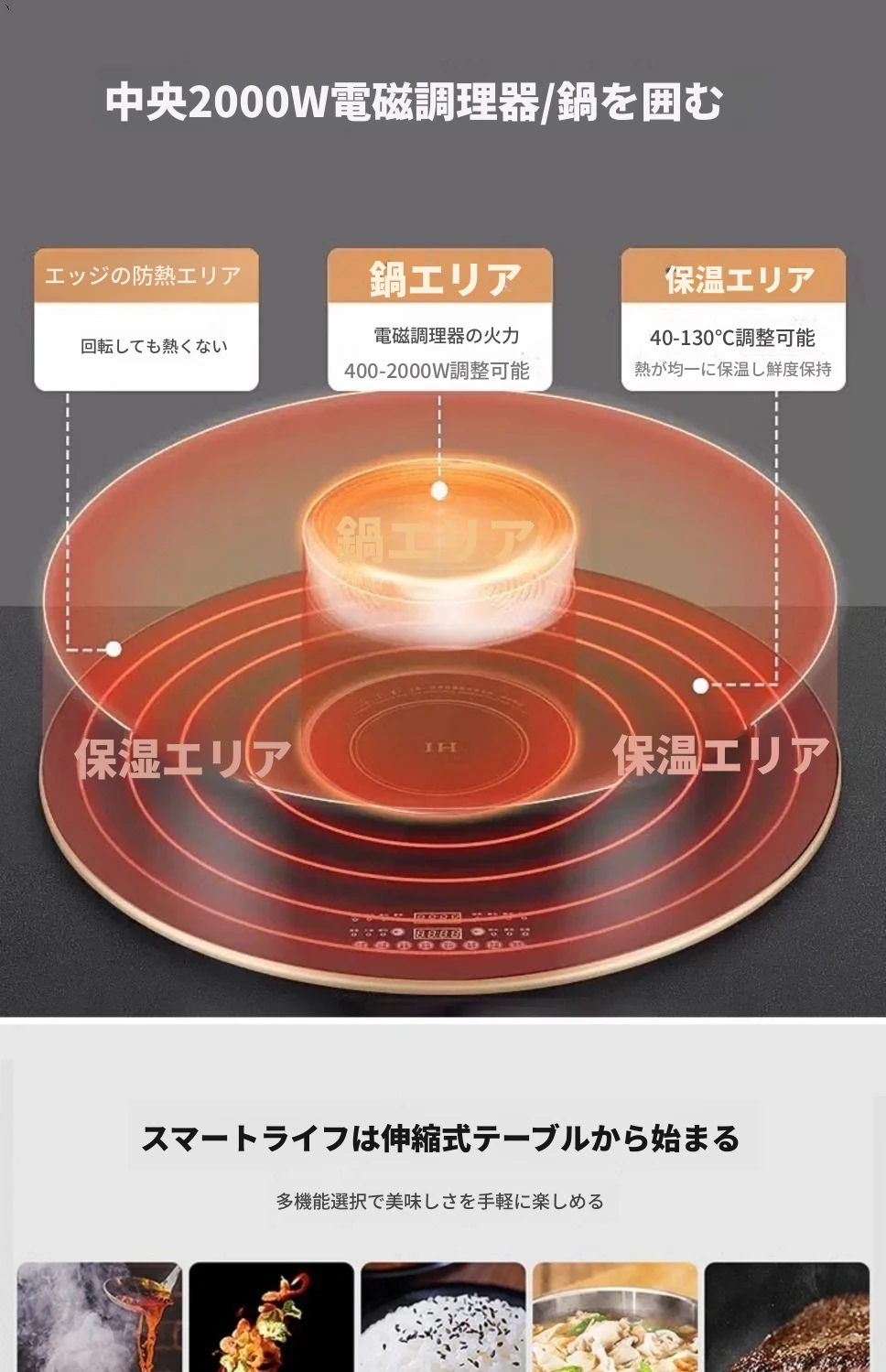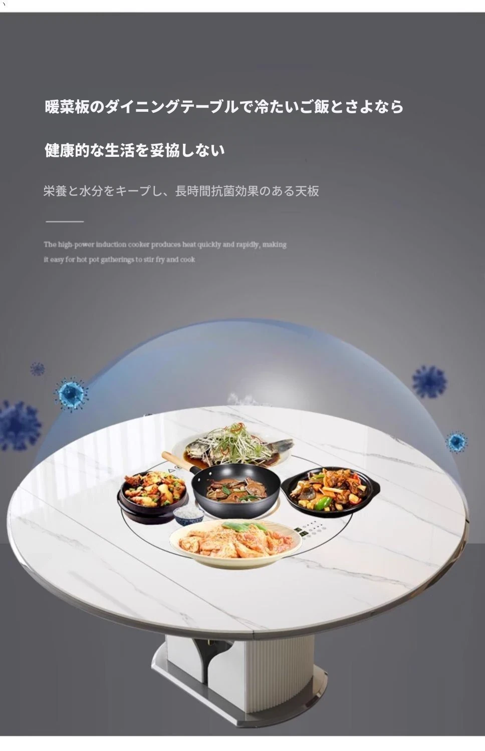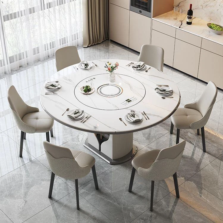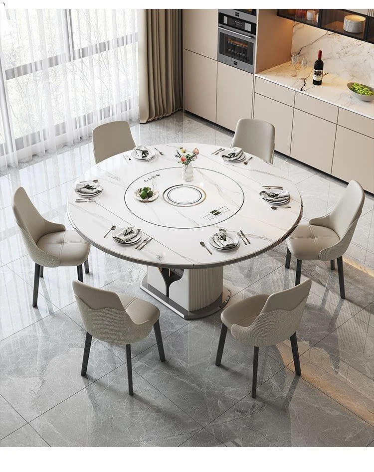 1.2メートル収納キャビネットダイニングテーブル【スマート音声温菜ボードプレゼント】回転式電磁調理器一体