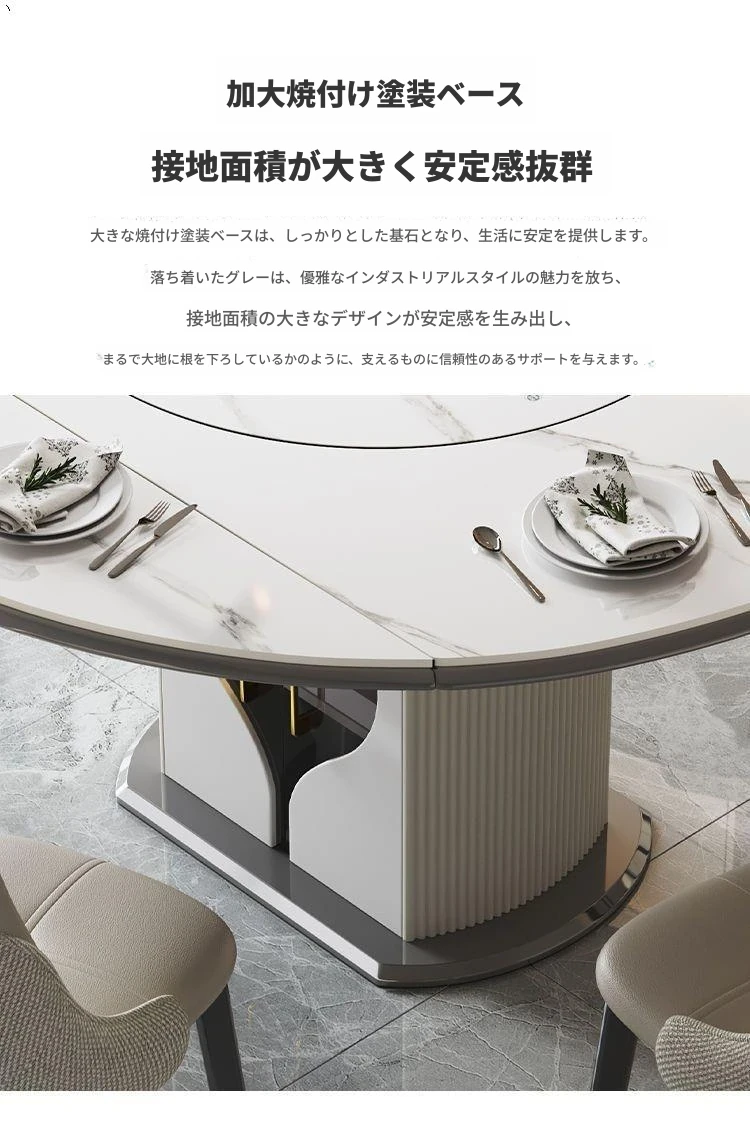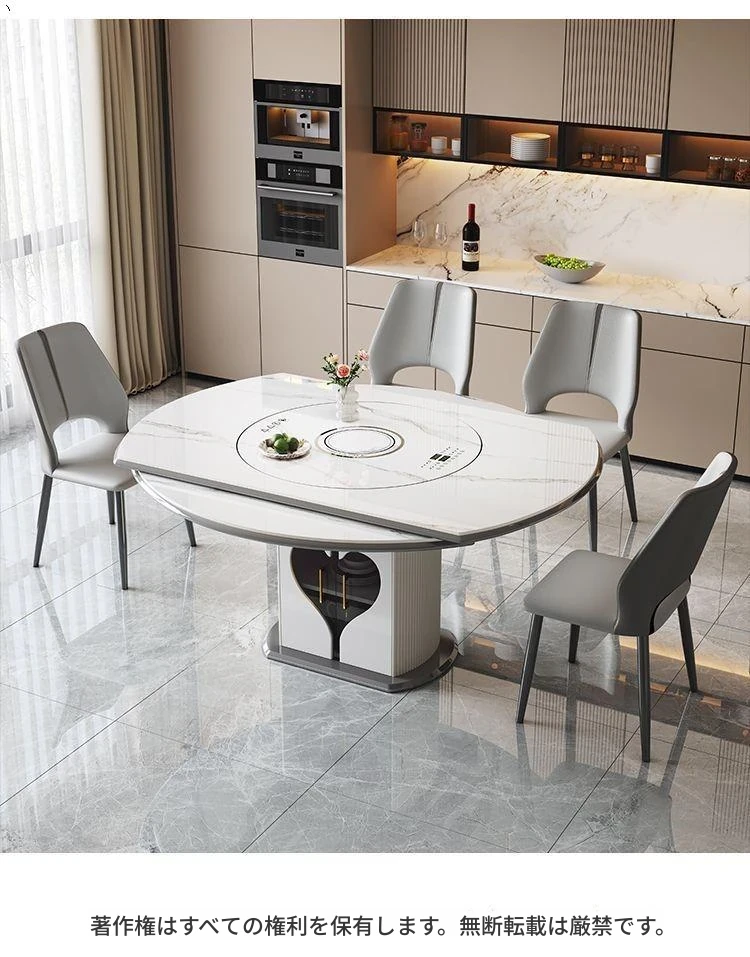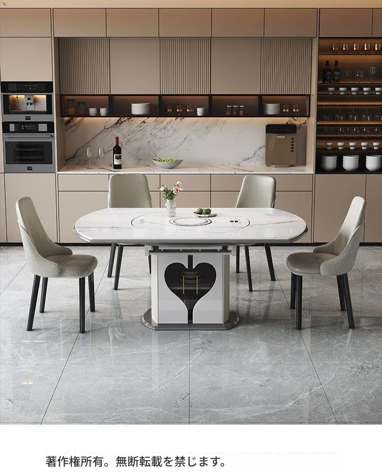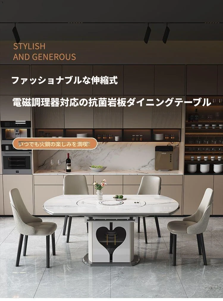 1.35メートル収納キャビネットダイニングテーブル+星空椅子*8【スマート音声温菜ボードプレゼント】回転式電磁調理器一体