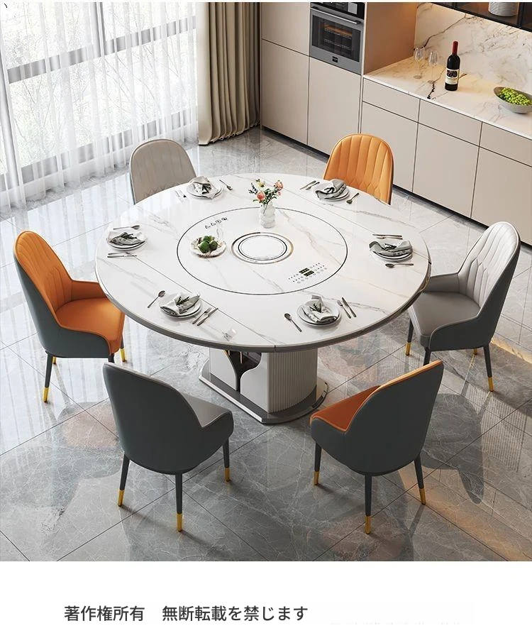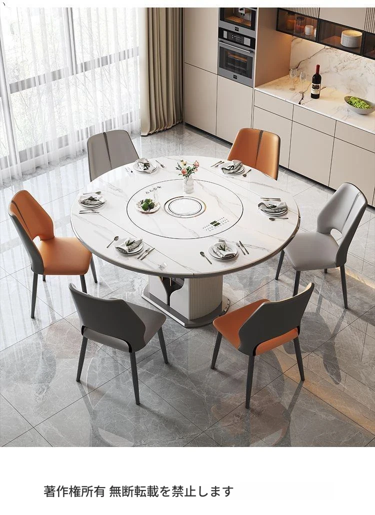 1.5メートル収納キャビネットダイニングテーブル+伯爵椅子*6【スマート音声温菜ボードプレゼント】回転式電磁調理器一体