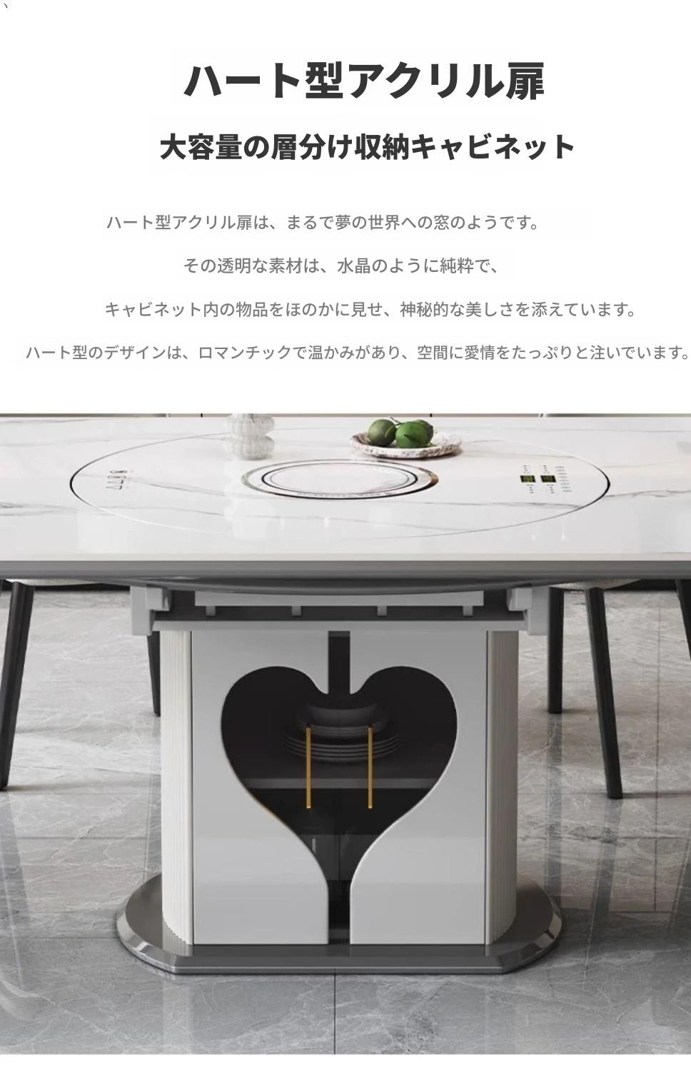 1.5メートル収納キャビネットダイニングテーブル+人形椅子*10【スマート音声温菜ボードプレゼント】回転式電磁調理器一体