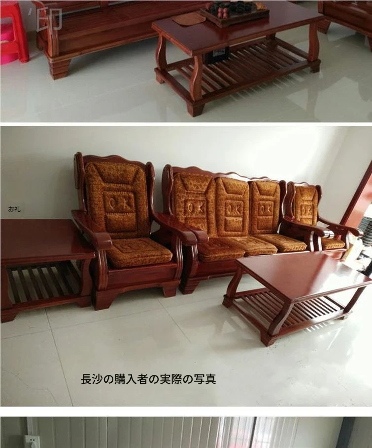 全実木製中式紅木ソファー・リビングルーム用3人掛けセット、オフィスにも最適!春秋用椅子付き、テーブルもセットで送料無料!高級感あふれるデザインで、お部屋を華やかに彩ります。