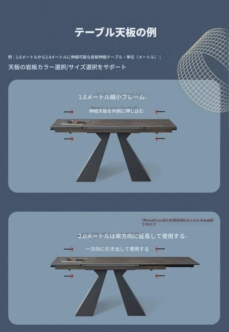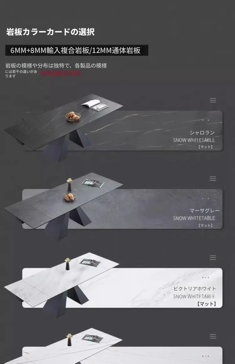 12MM岩板通体岩板/1.6伸縮2.0-2.4m単一テーブル