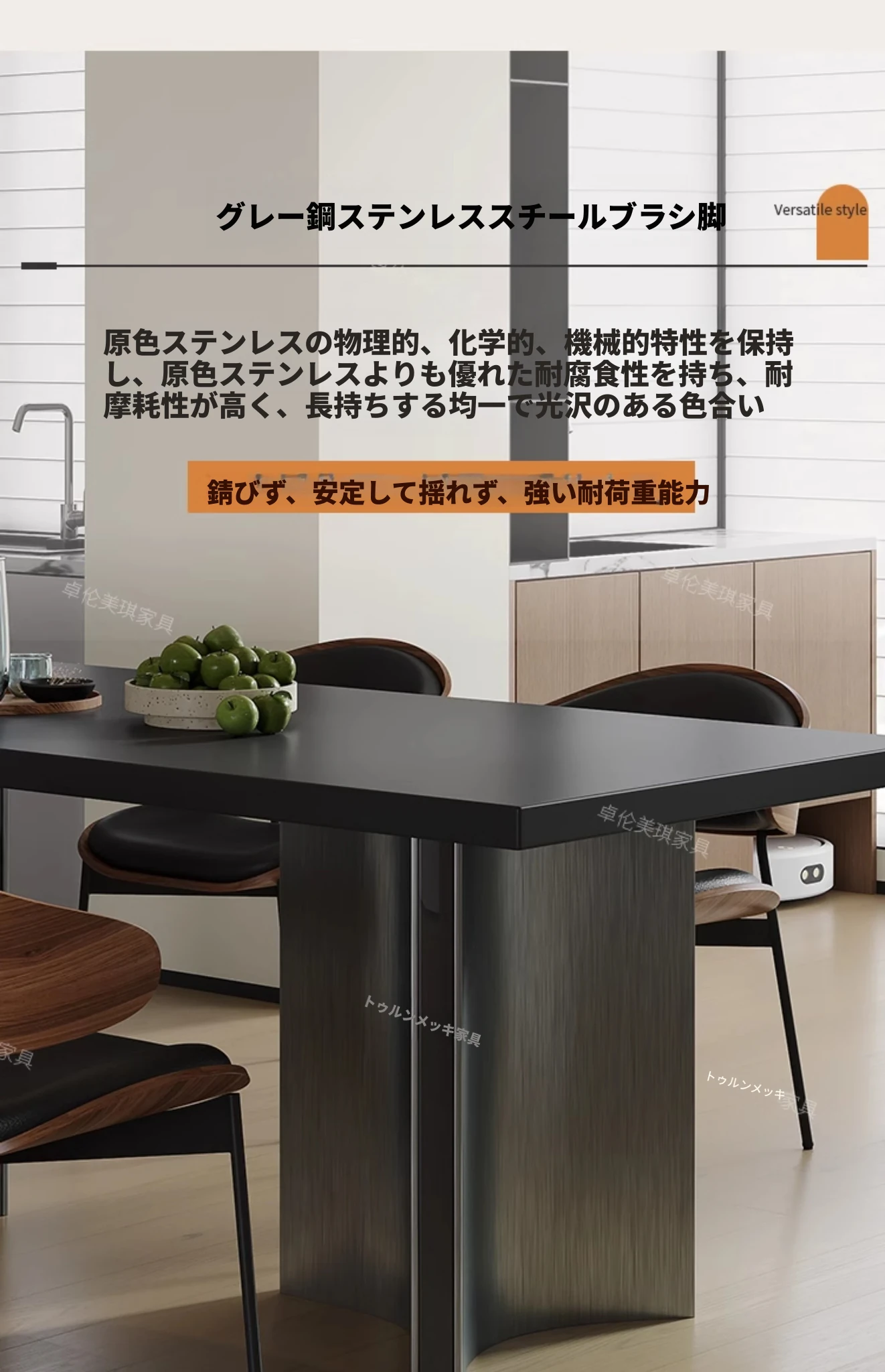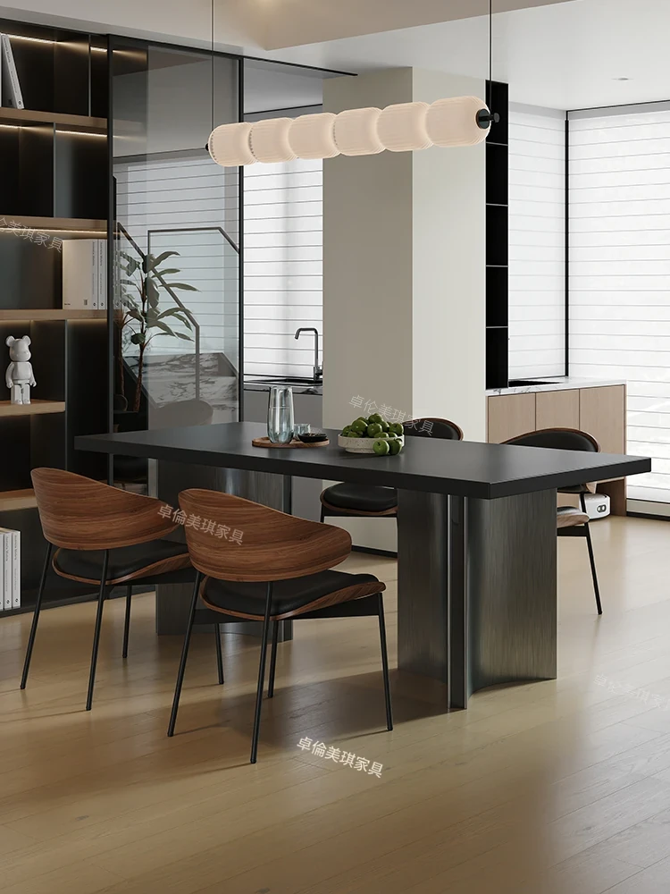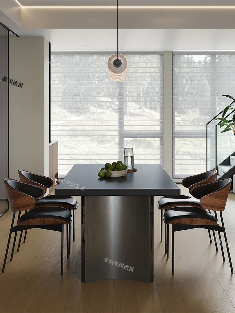 イタリアンミニマルデザインのロングテーブル - モダンでシンプル、小型住宅に最適!スタイリッシュなステンレス製、デザイナーのこだわりが詰まった食卓。高級感溢れるダイニング体験をあなたの家に!