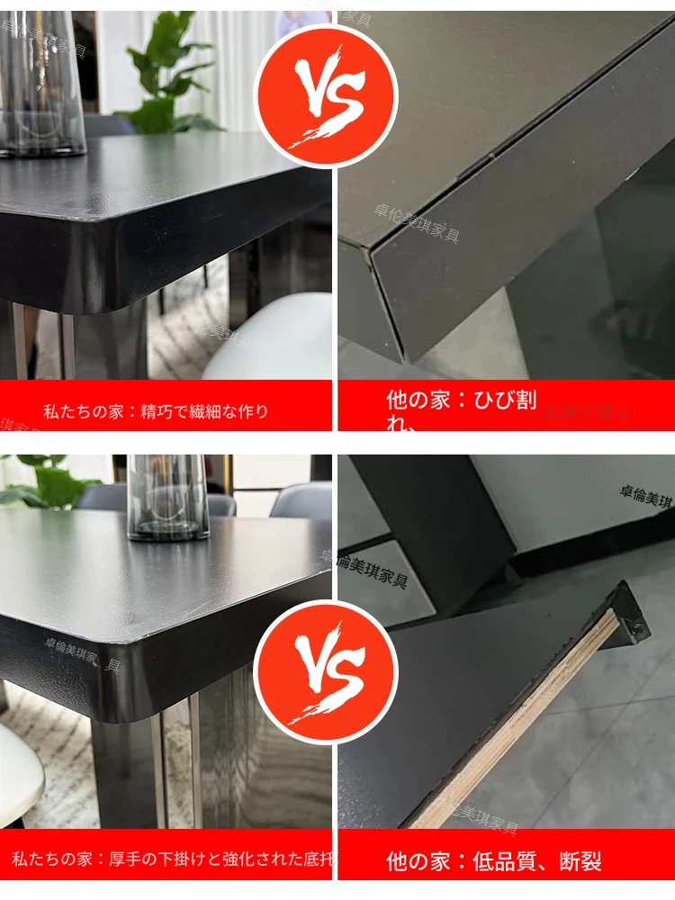 ダイニングテーブル【厚手の下掛け岩板】+6脚のドールチェア