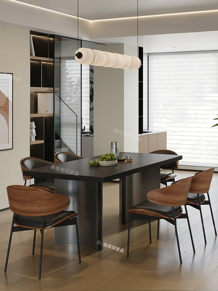 ダイニングテーブル【厚手の下掛け岩板】+6脚のレトロチェア