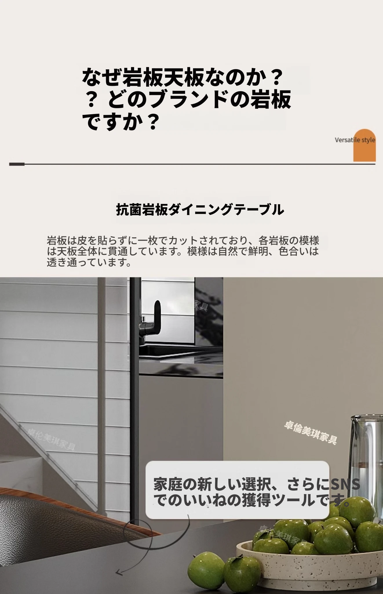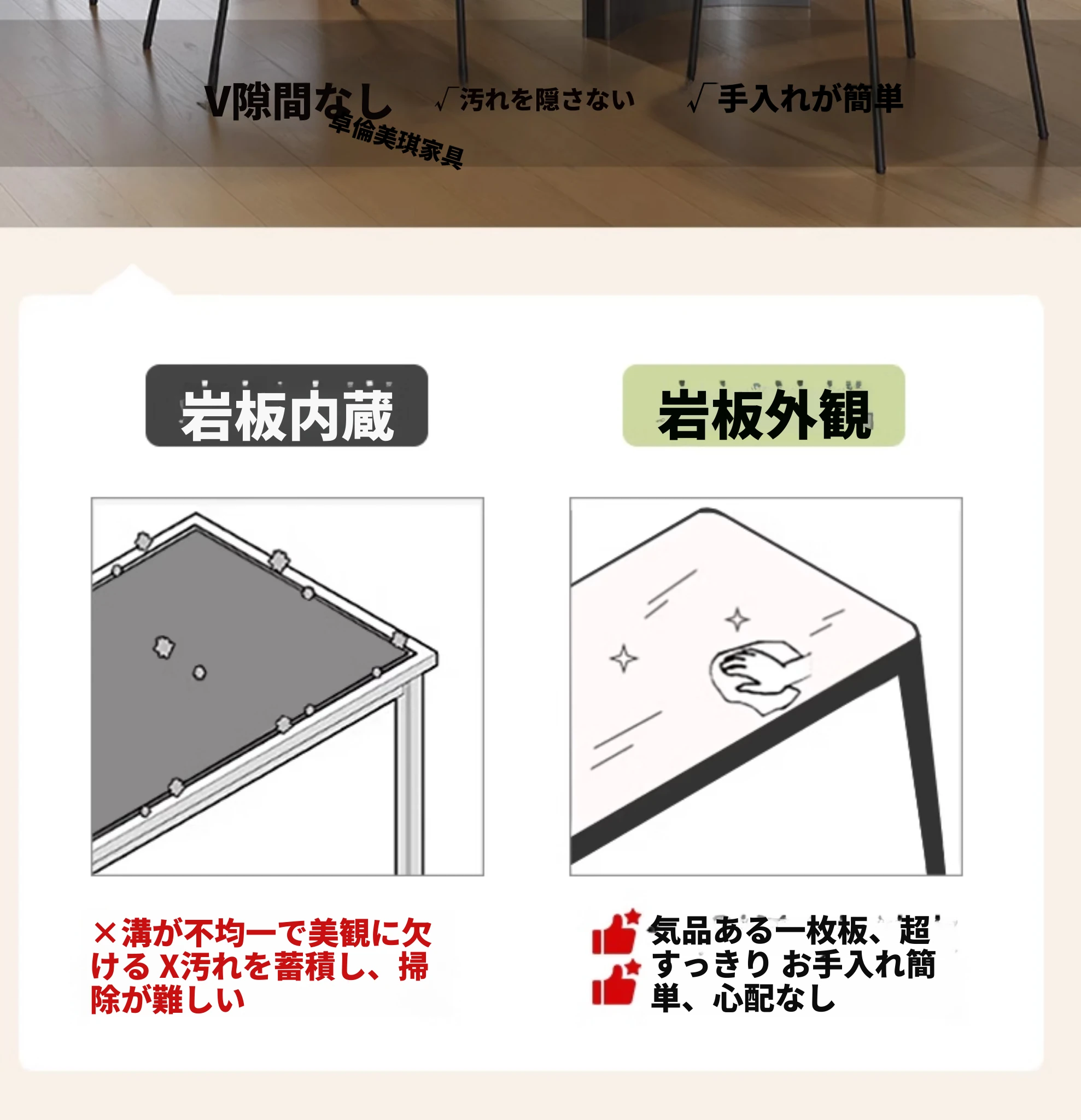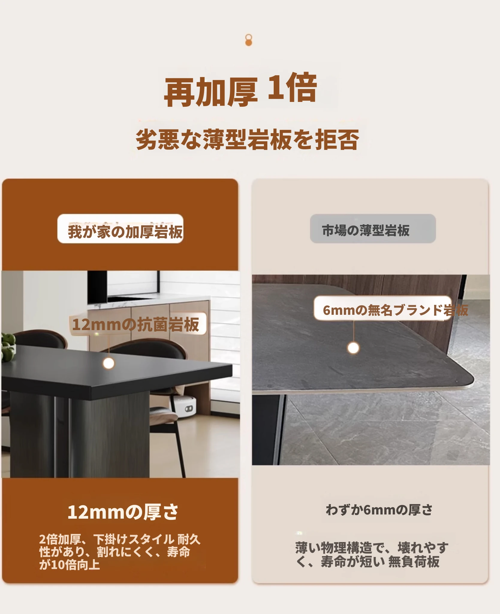 単品ダイニングテーブル【厚手の下掛け岩板】