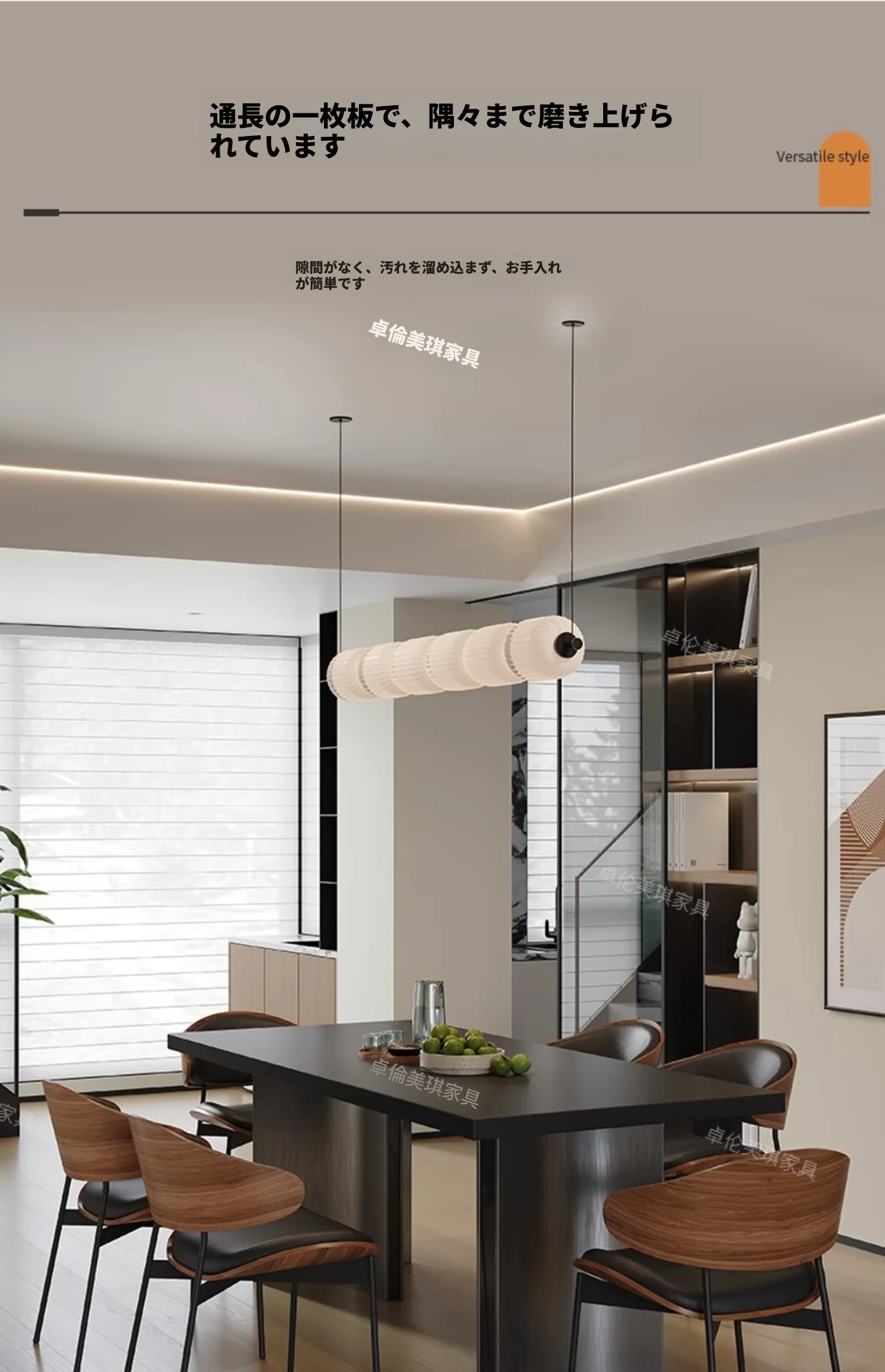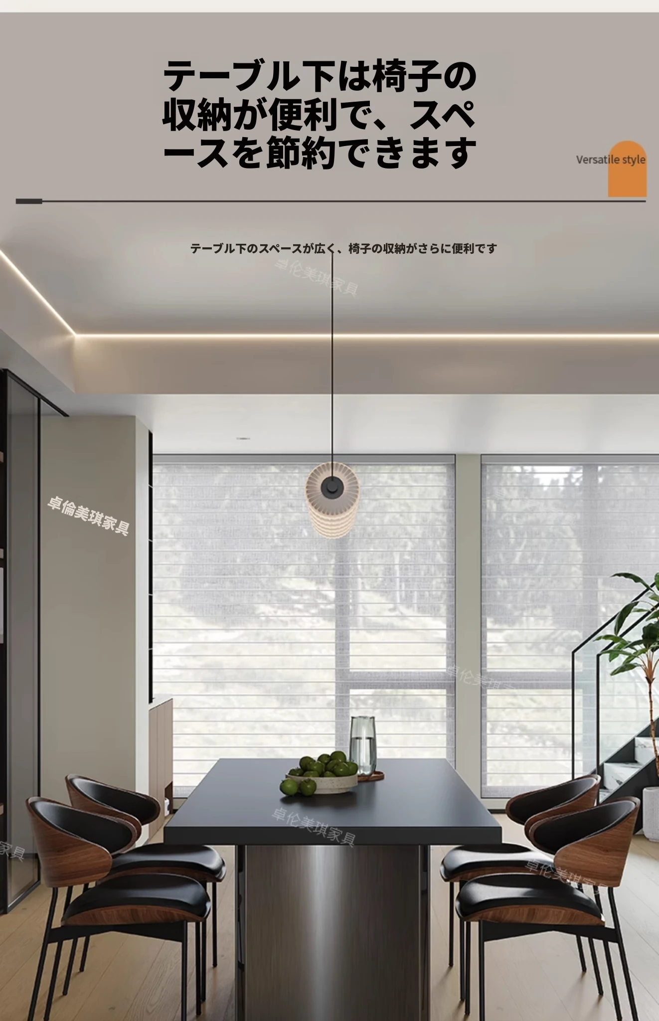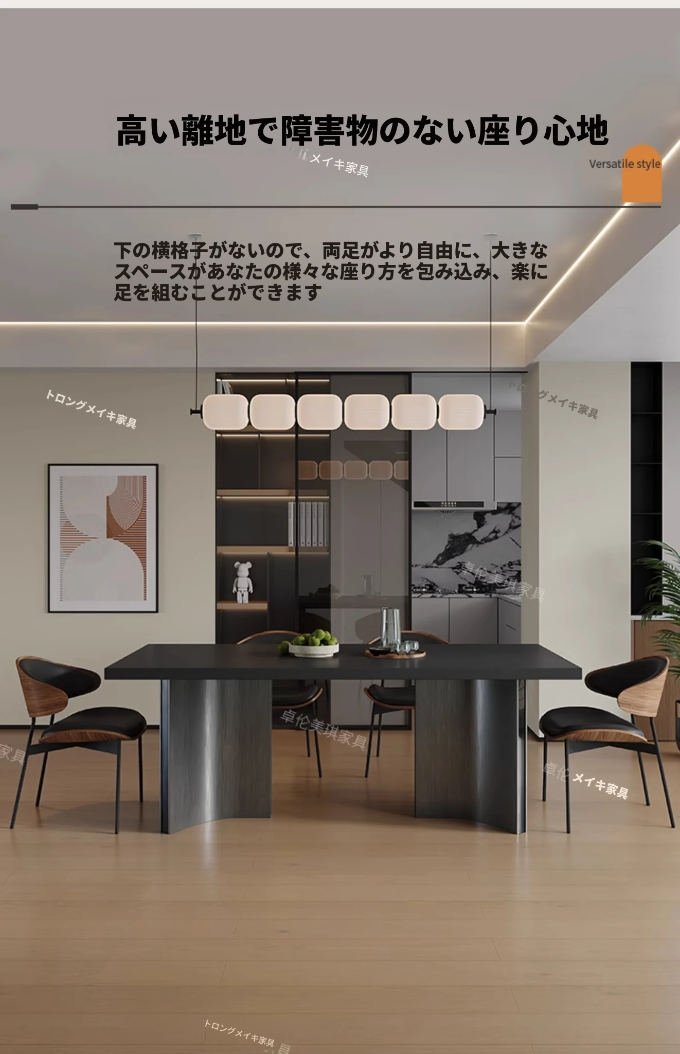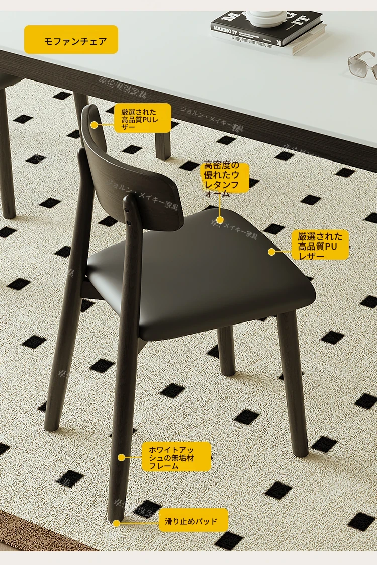 ダイニングテーブル【厚手の下掛け岩板】+6脚のバッファローチェア