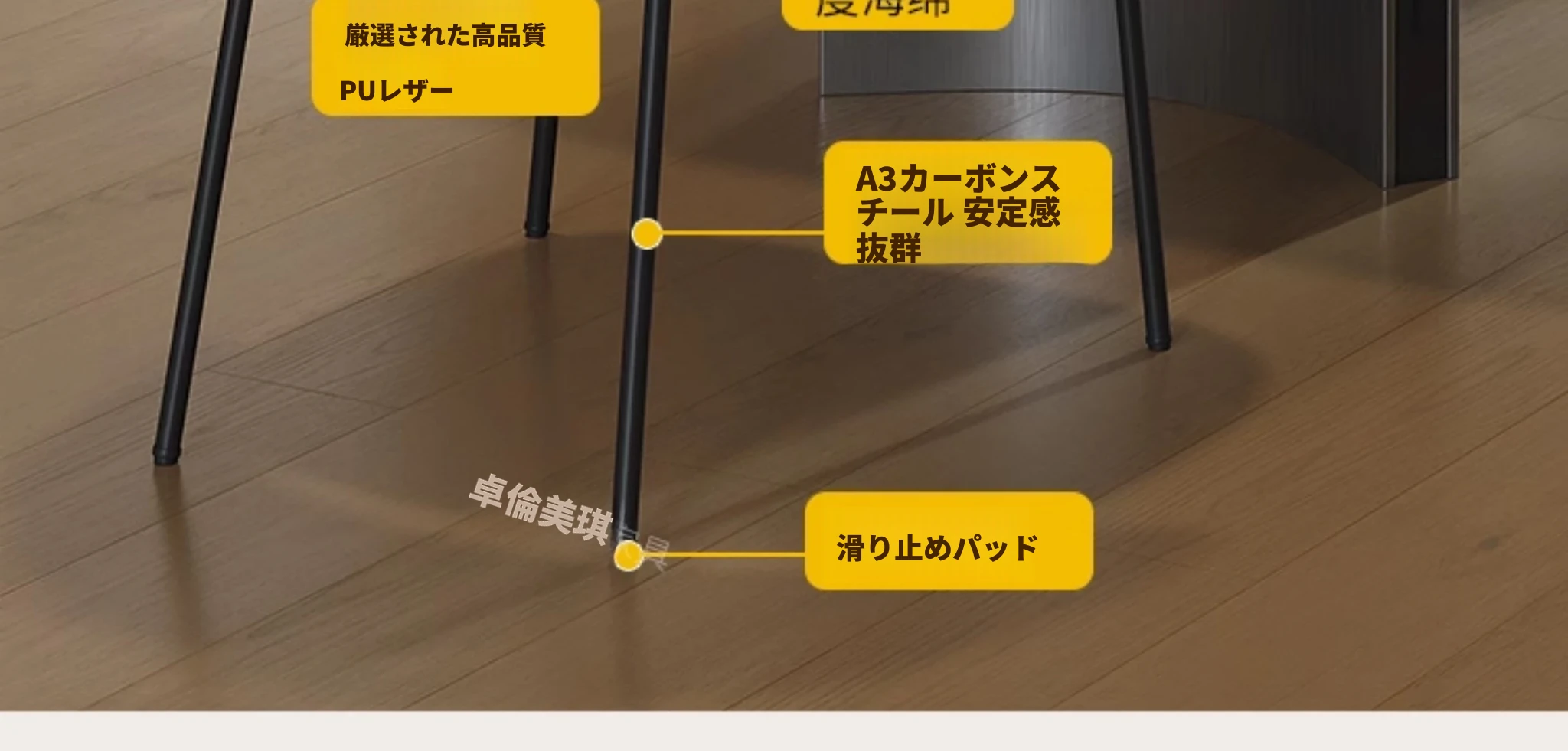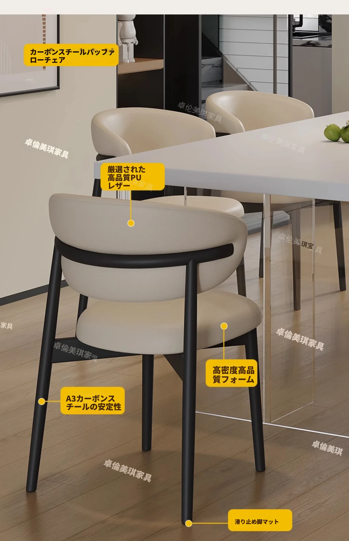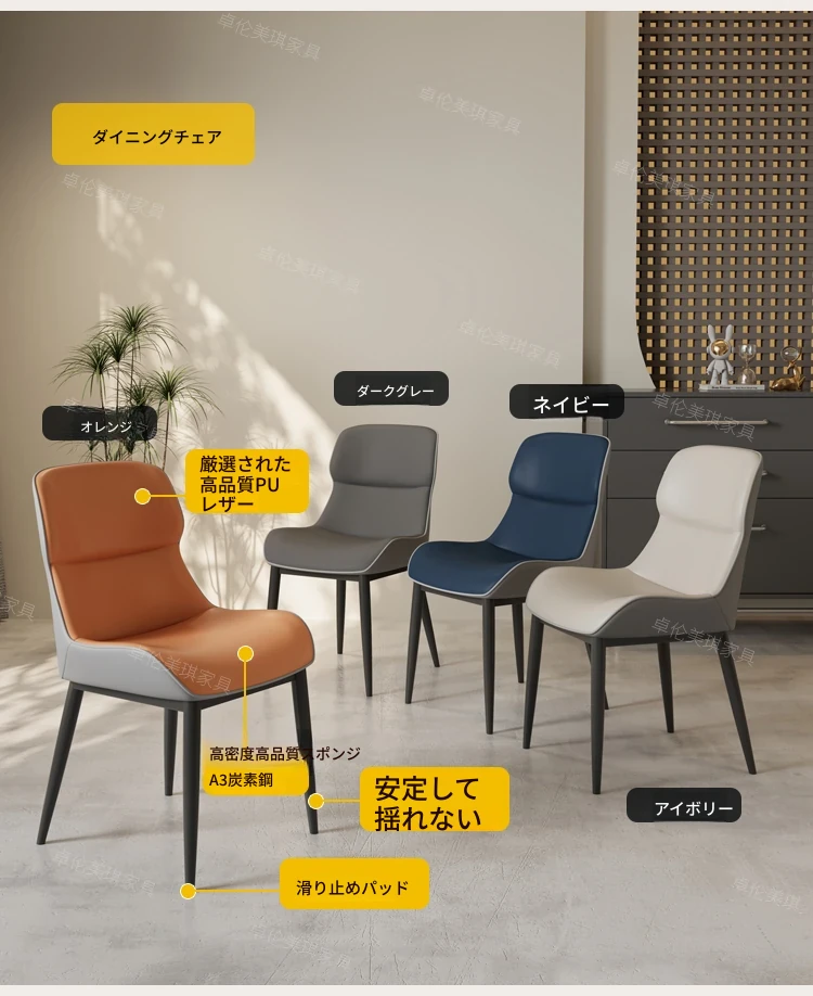 ダイニングテーブル【厚手の下掛け岩板】+4脚のバッファローチェア