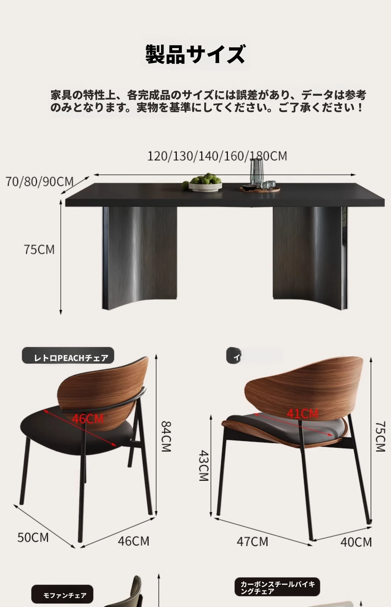 ダイニングテーブル【厚手の下掛け岩板】+4脚のドールチェア