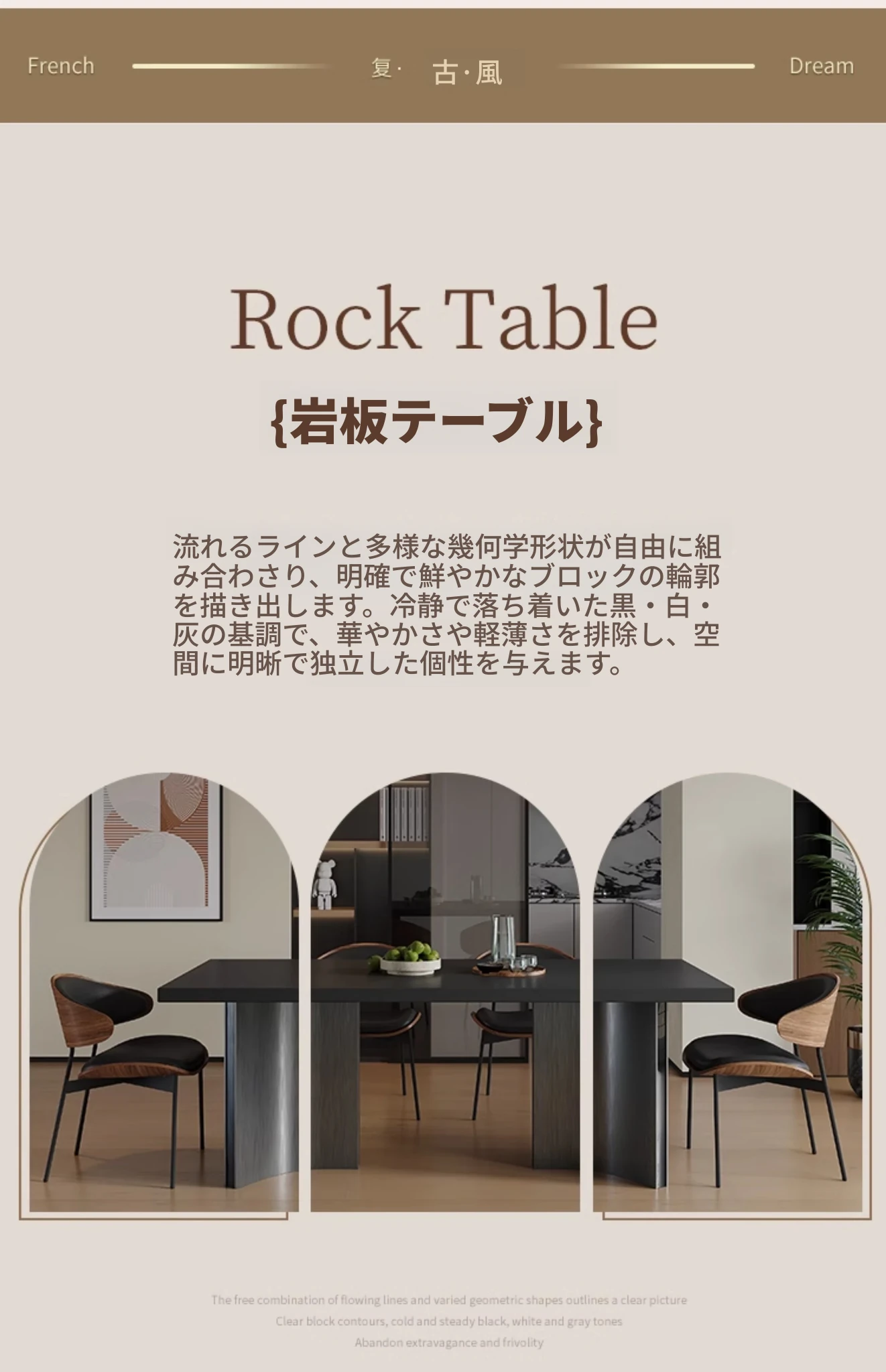 ダイニングテーブル【厚手の下掛け岩板】+4脚のレトロチェア