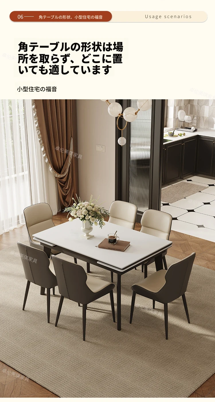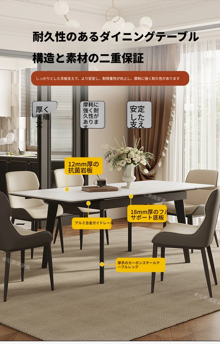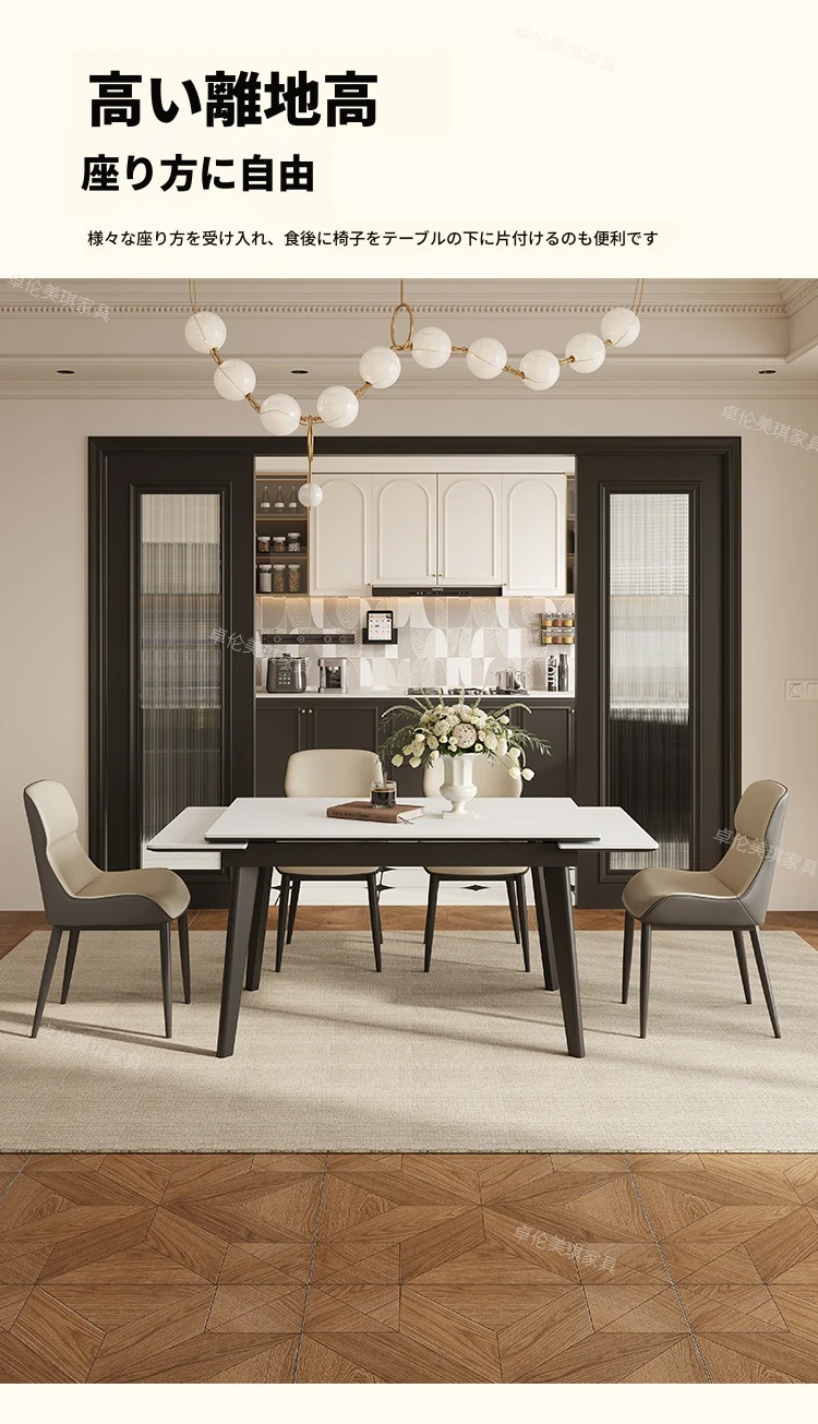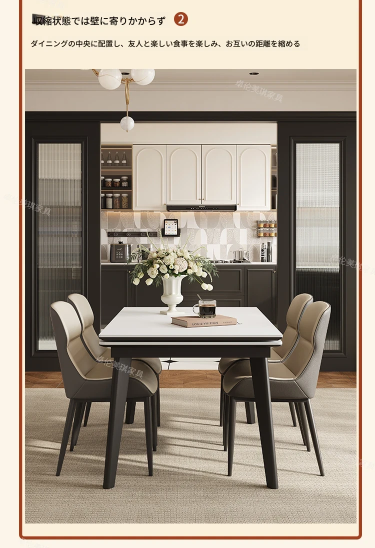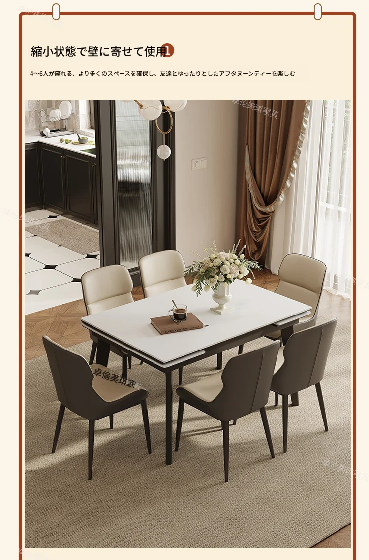 卓伦美琪の伸縮式ロック板ダイニングテーブル&チェアセット - モダンでシンプル、狭いスペースにも最適な折りたたみ長方形テーブル!おしゃれな家用家具で、快適な食事のひとときを。